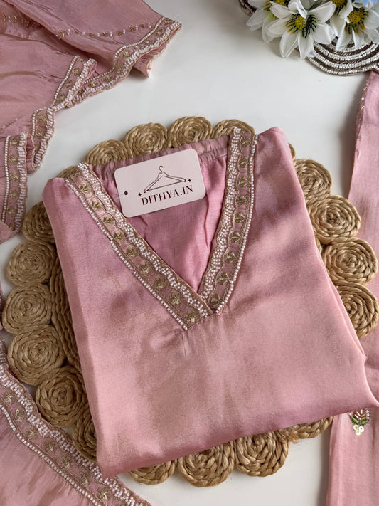K488 - Chinnon handwork aline Kurti with pants and dupatta