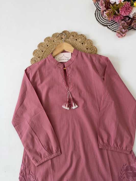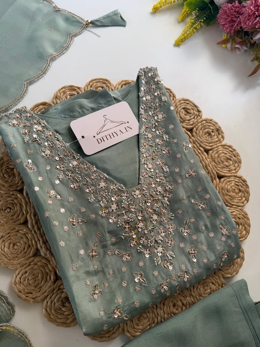 K082 - Ho silk Handwork straight Kurti with pants and dupatta