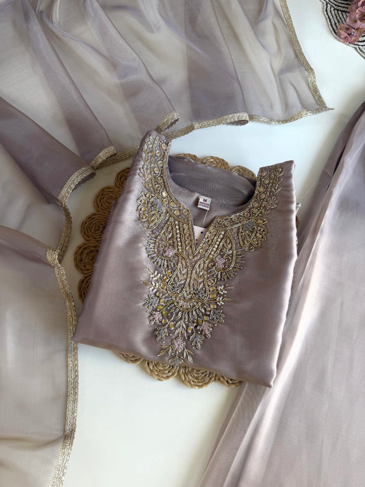 K540 - Tissue silk handwork aline Kurti with pants and dupatta
