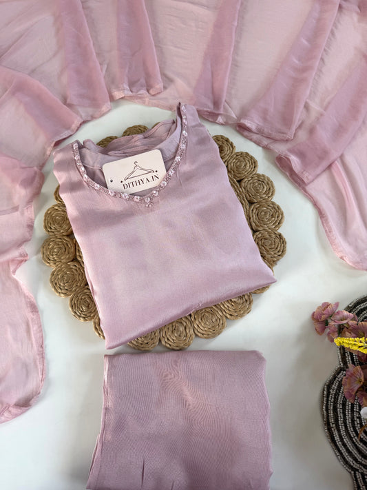 K104 - Pure Chinnon handwork short Kurti with divider pants and dupatta