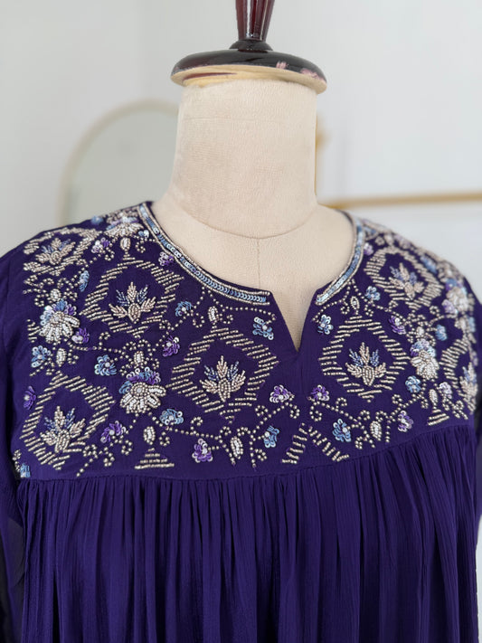 K191 - Tissue silk handwork Short Kurti with divider pants