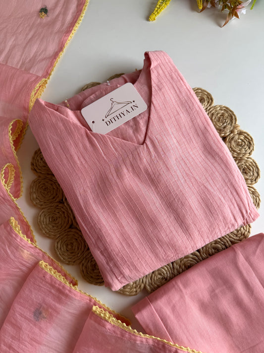 K557 - Mul cotton embroidered straight Kurti with pants and dupatta
