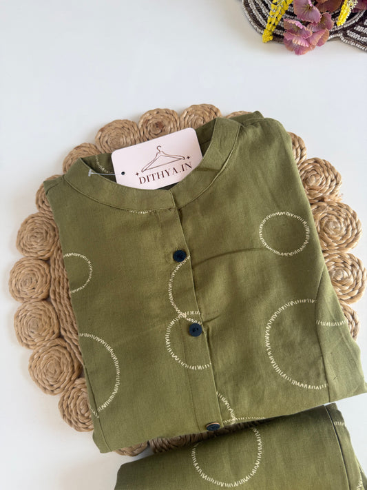 K395 - Linen cotton embroidered straight Kurti with pants and dupatta