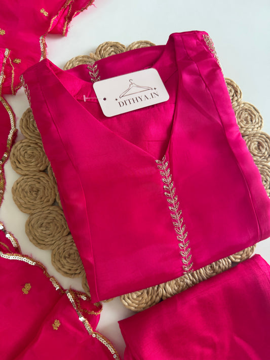 K308 - Chinnon handwork Aline Kurti with pants and dupatta