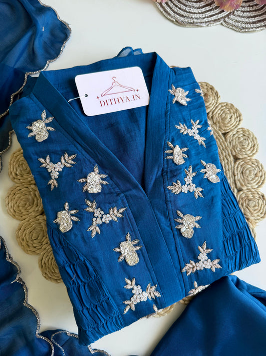 K303 - Mul chanderi handwork Anarkali with pants and dupatta