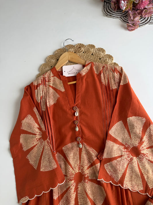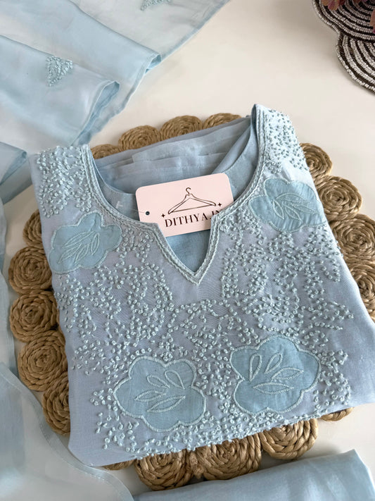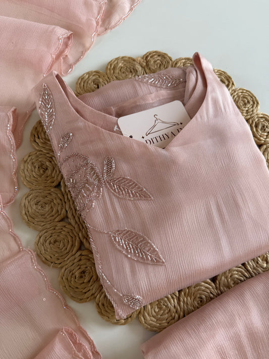 K476 - Pure Chinnon handwork aline Kurti with pants and dupatta