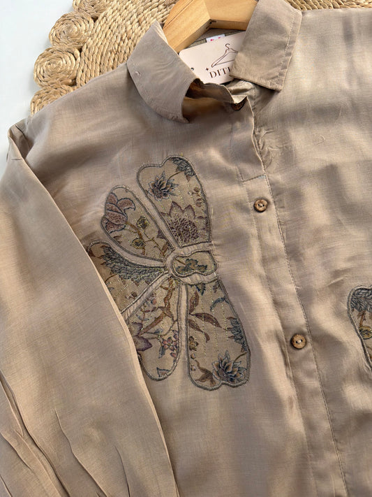 K157 - Tissue silk handwork short Kurti with divider pants and dupatta