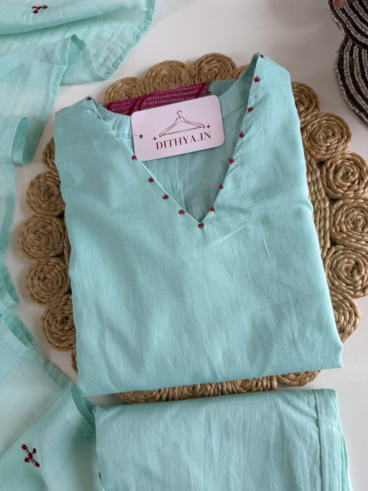 K626 - Mul cotton embroidered straight Kurti with pants and dupatta