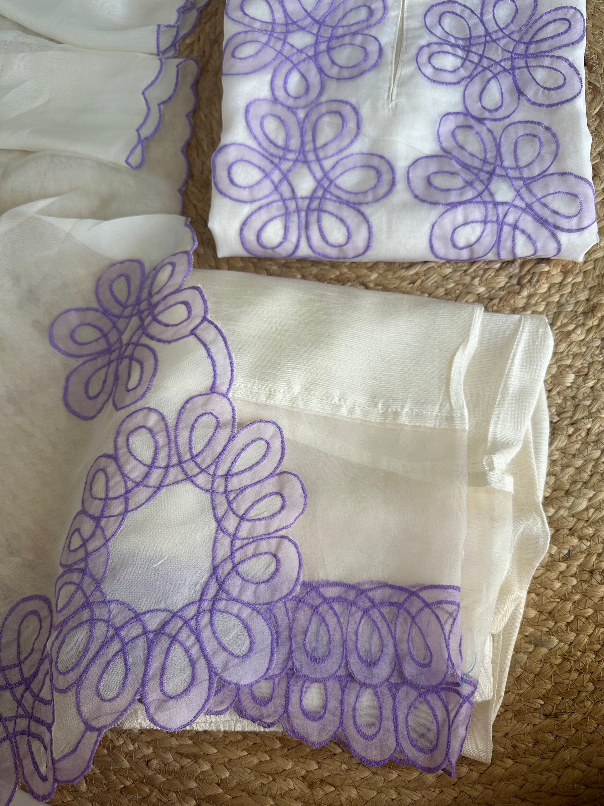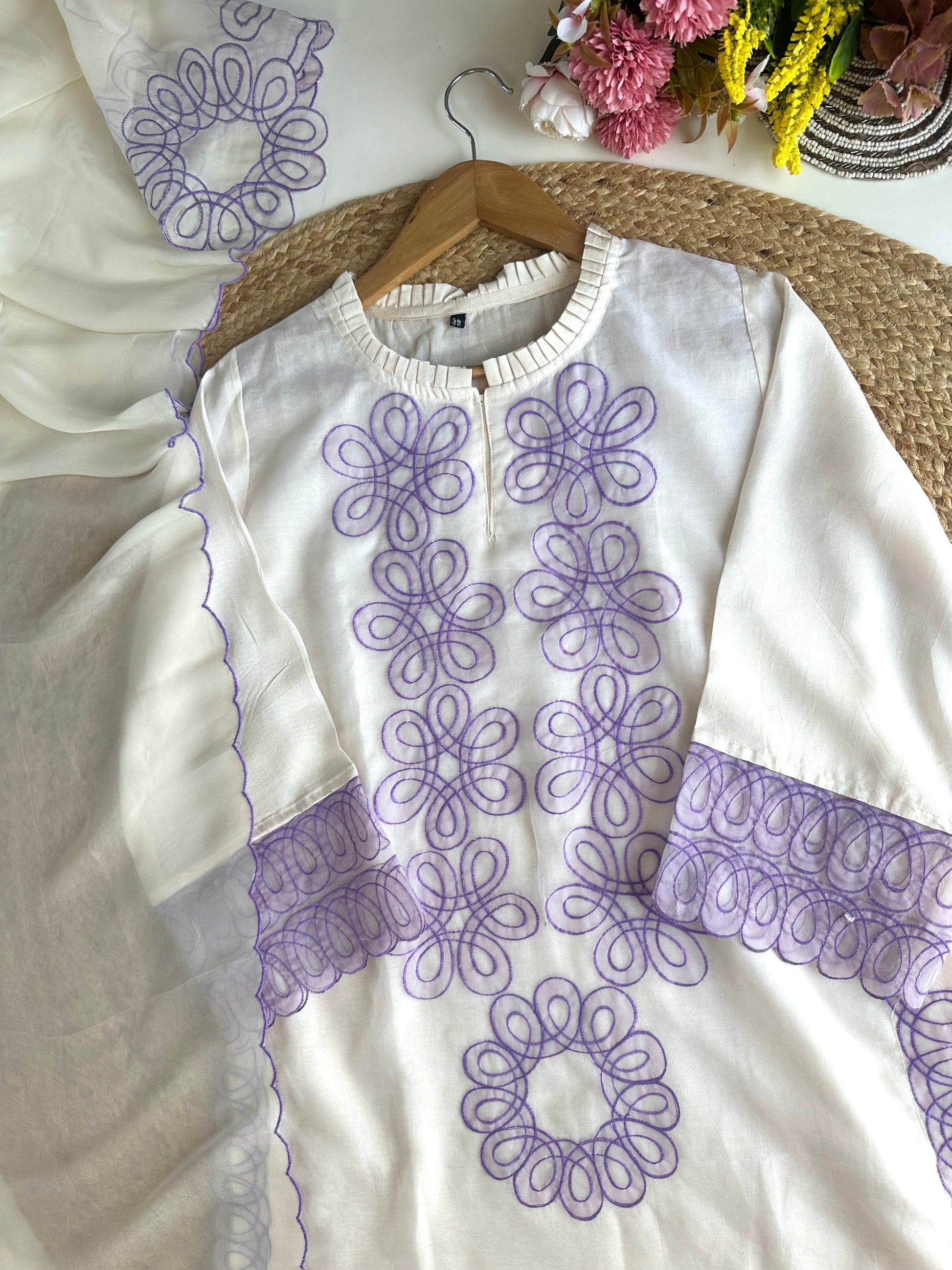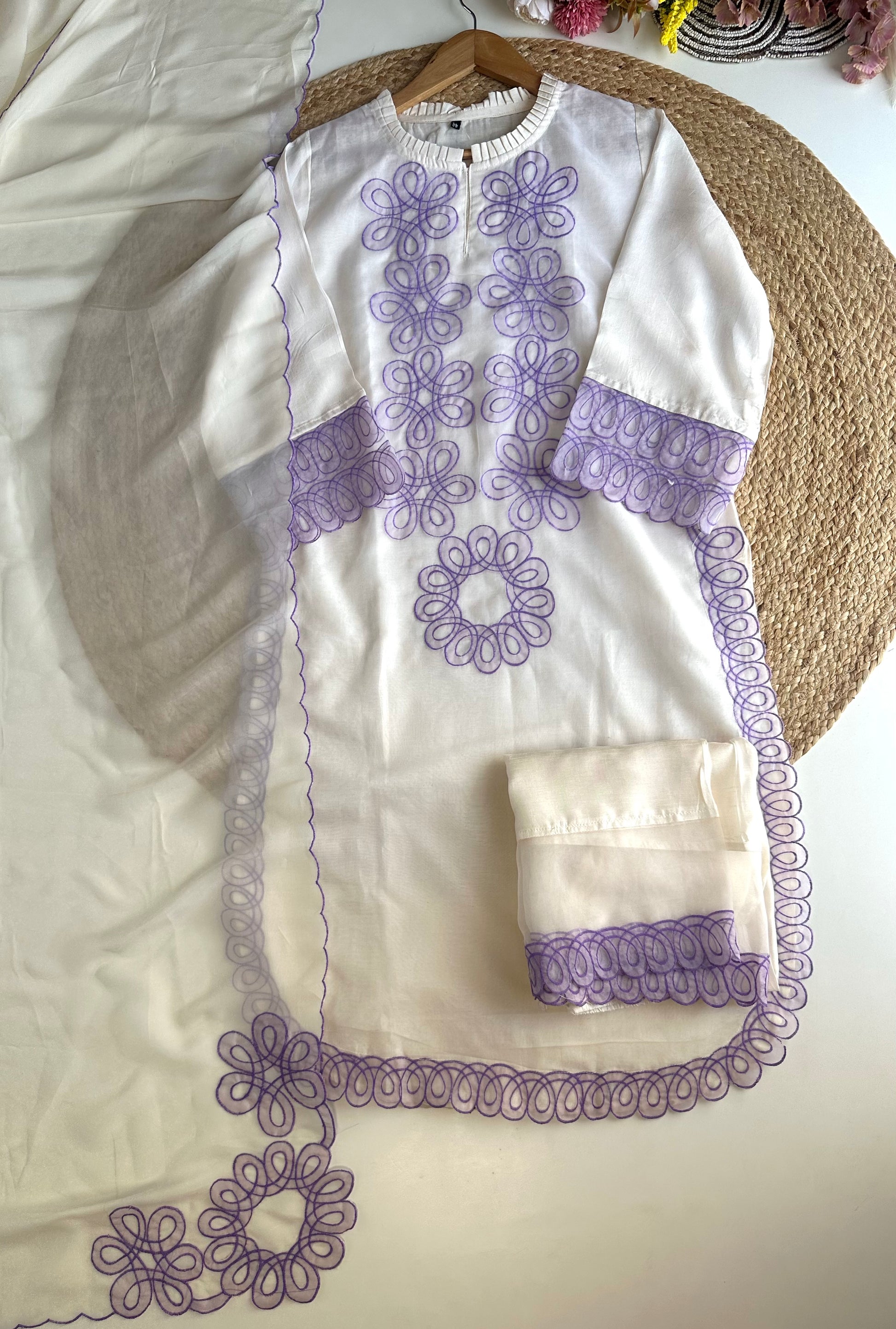 K462 - Chanderi silk embroidered straight Kurti with pants and dupatta