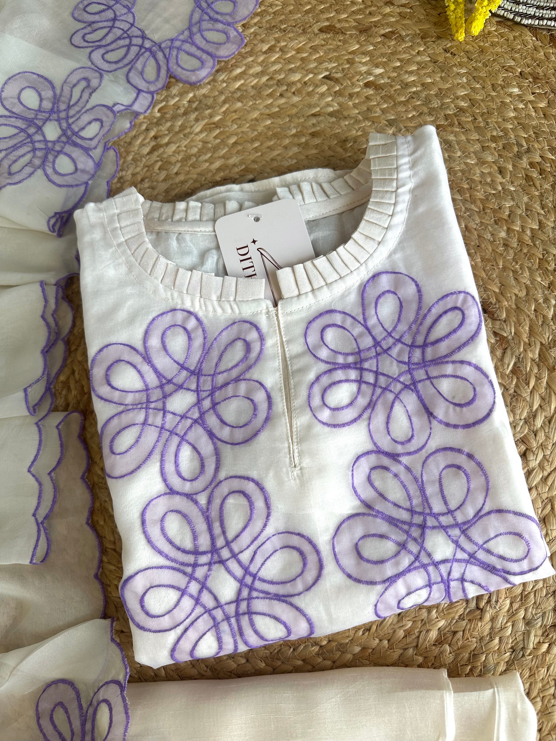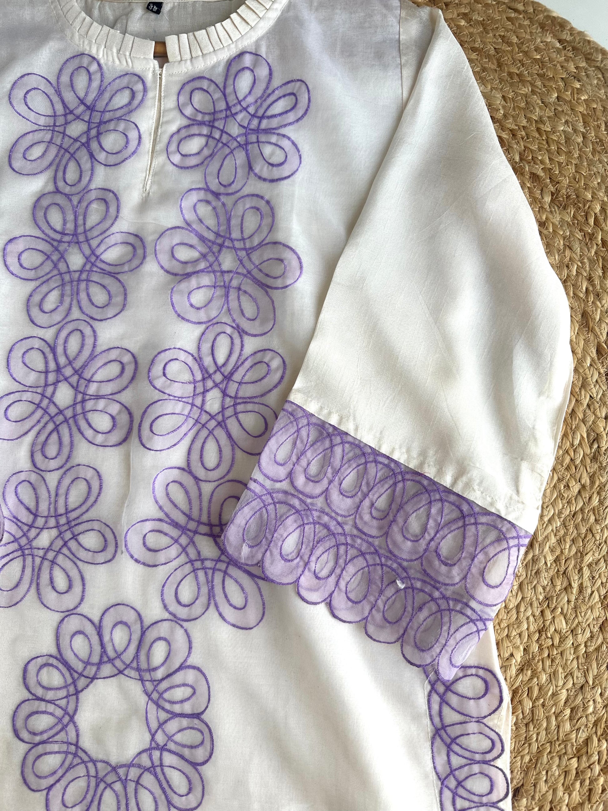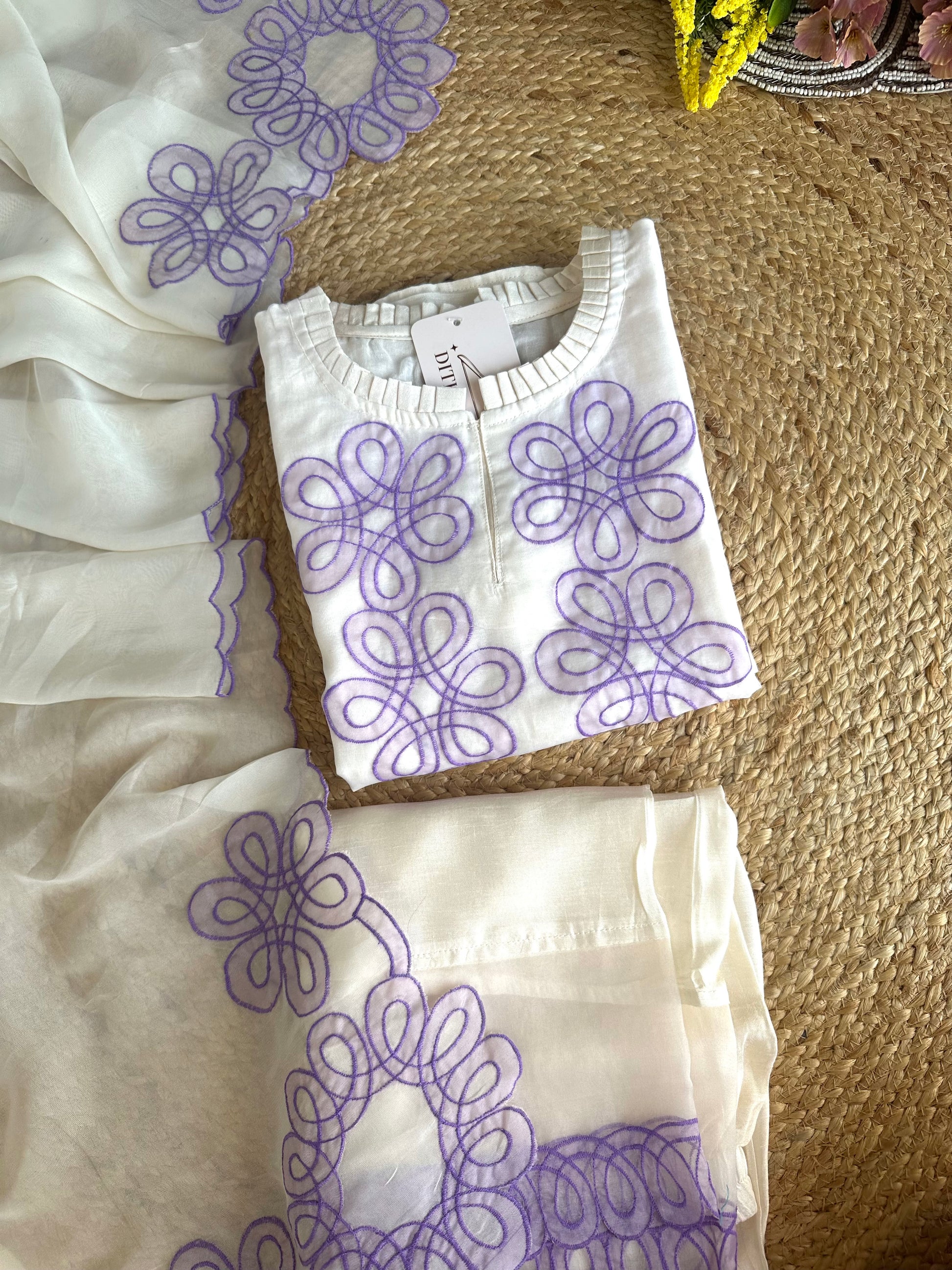K462 - Chanderi silk embroidered straight Kurti with pants and dupatta