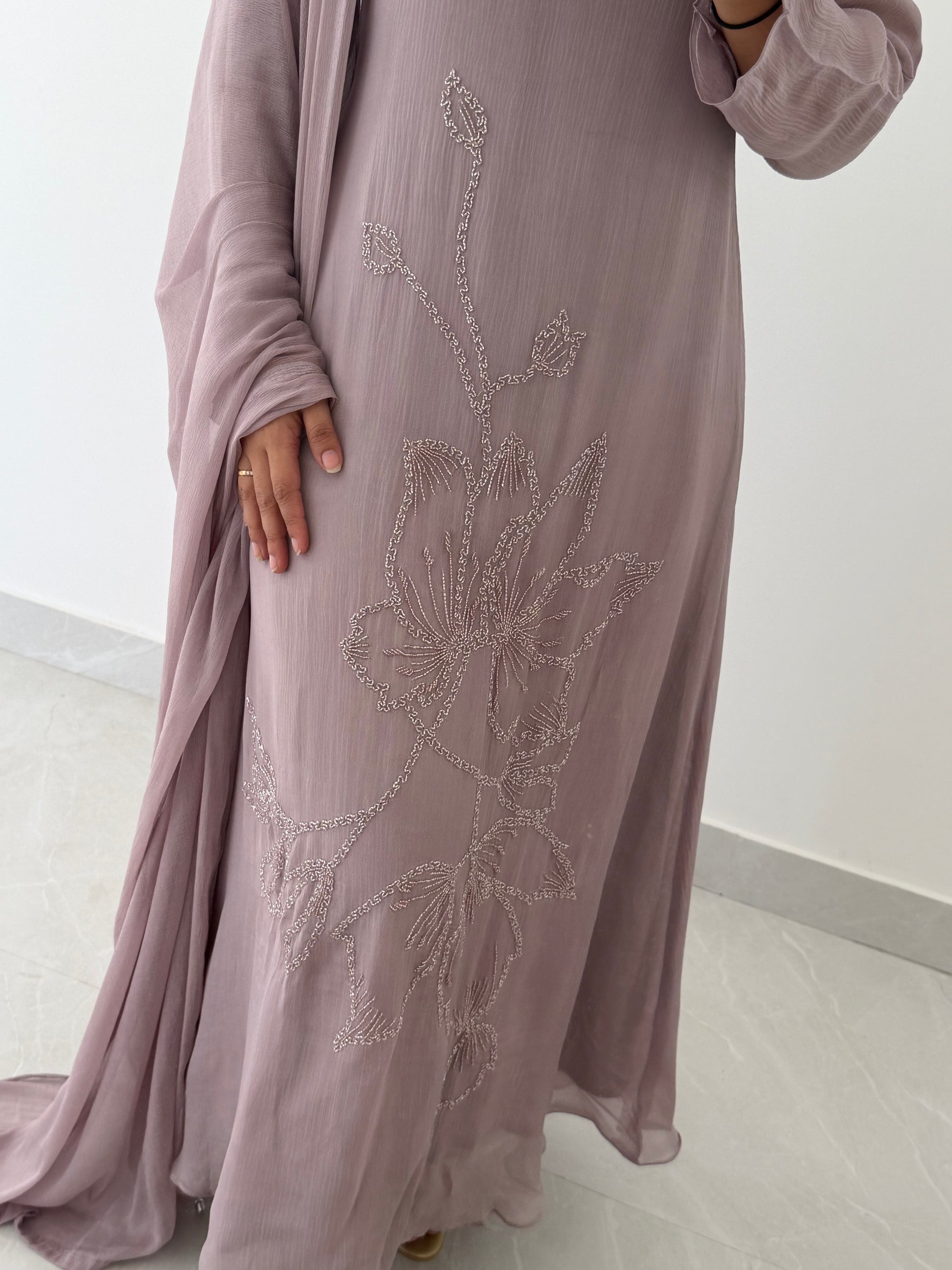 This Chinnon cutdhana work Anarkali comes complete with pants and dupatta. Made from high-quality materials, this elegant Anarkali features intricate cutdhana work that adds a touch of luxury and sophistication. Perfect for any formal or special occasion, this set is sure to make a statement.