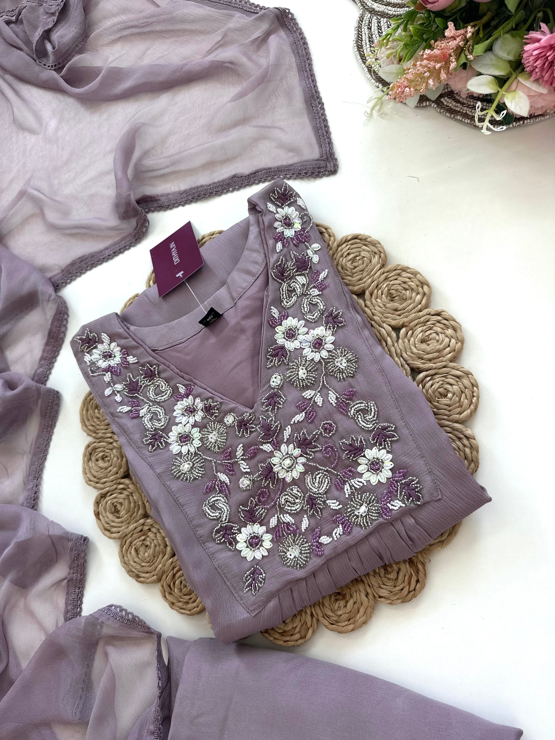 K232 - Chinnon handwork Aline Kurti with palazzo and dupatta