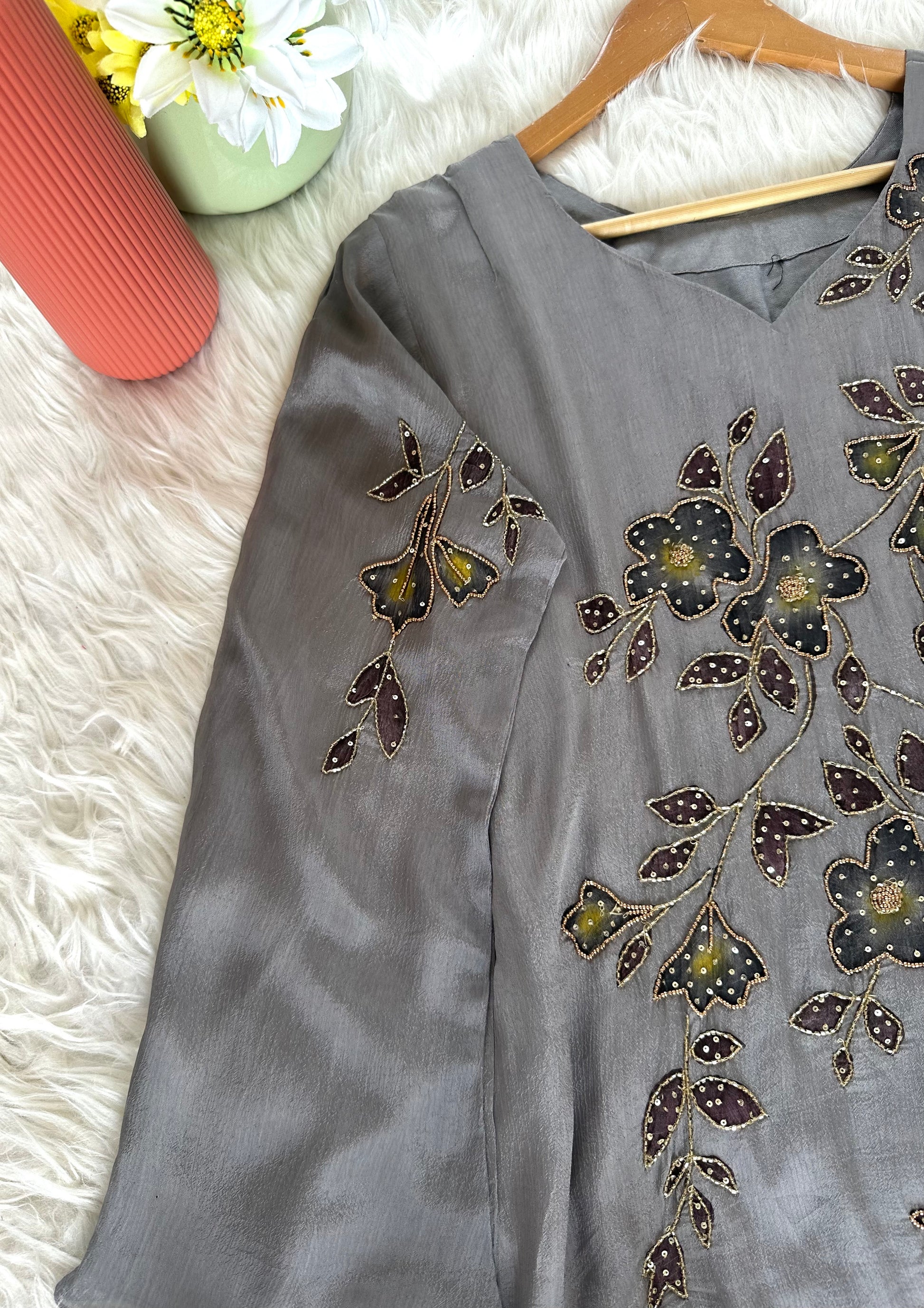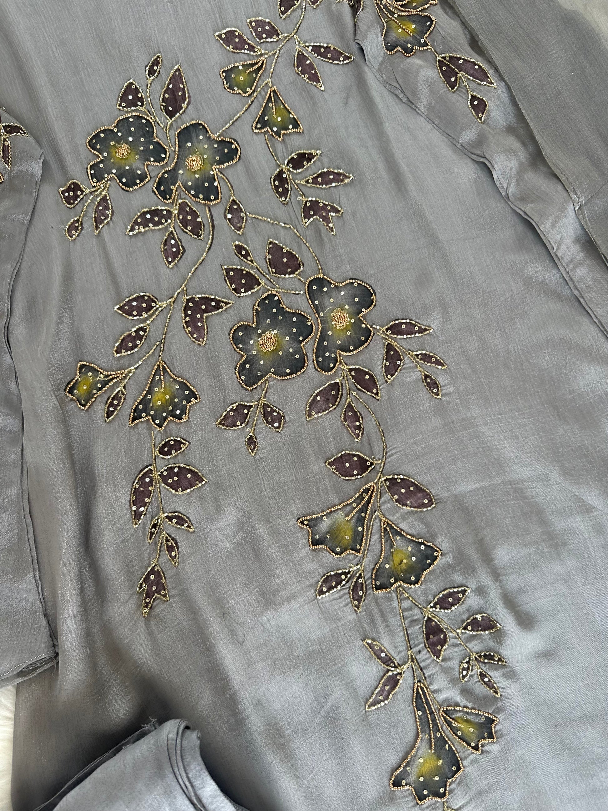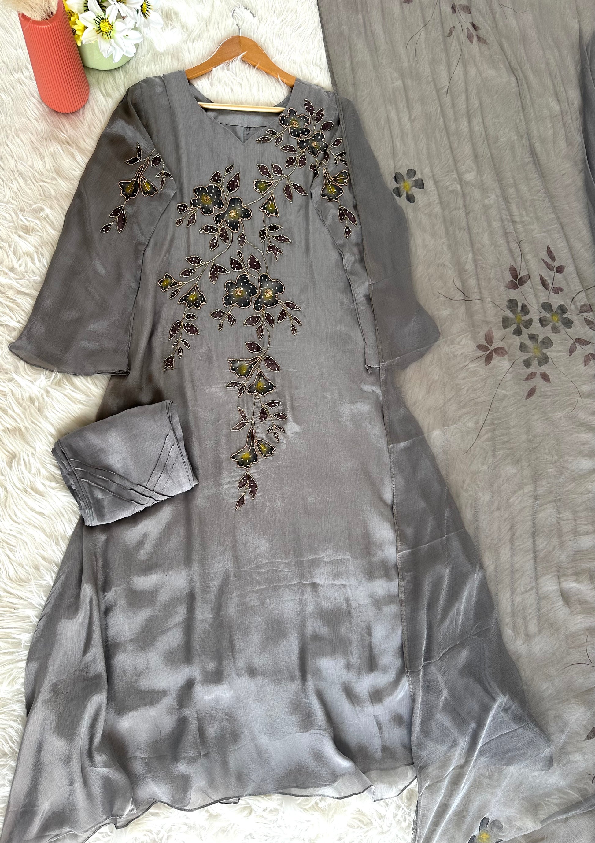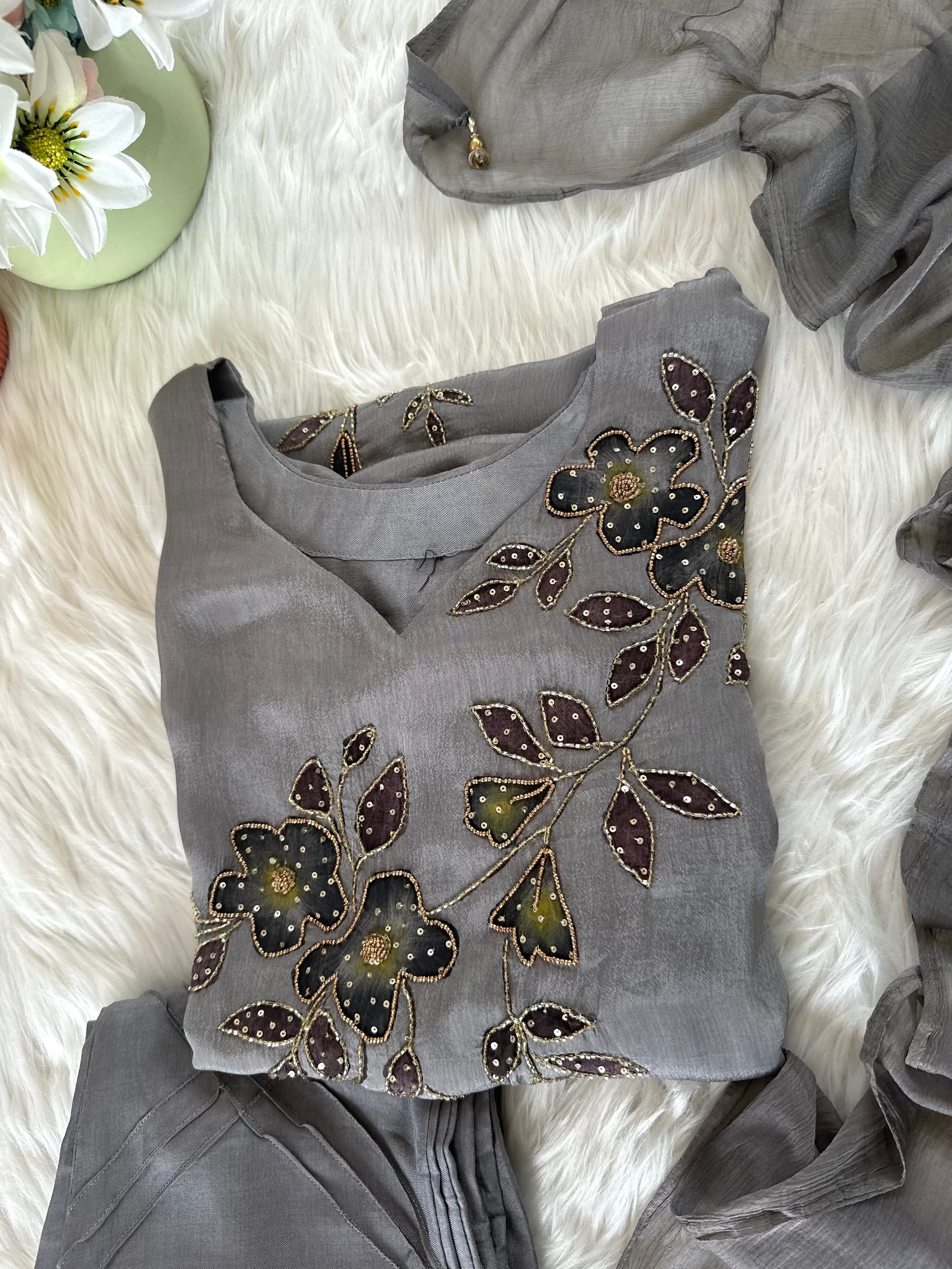 K380 - Chinnon handwork Aline Kurti with pants and chiffon dupatta