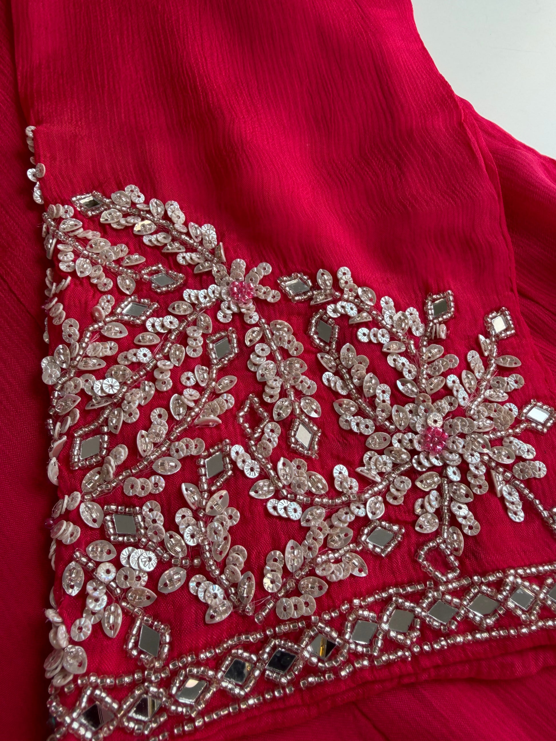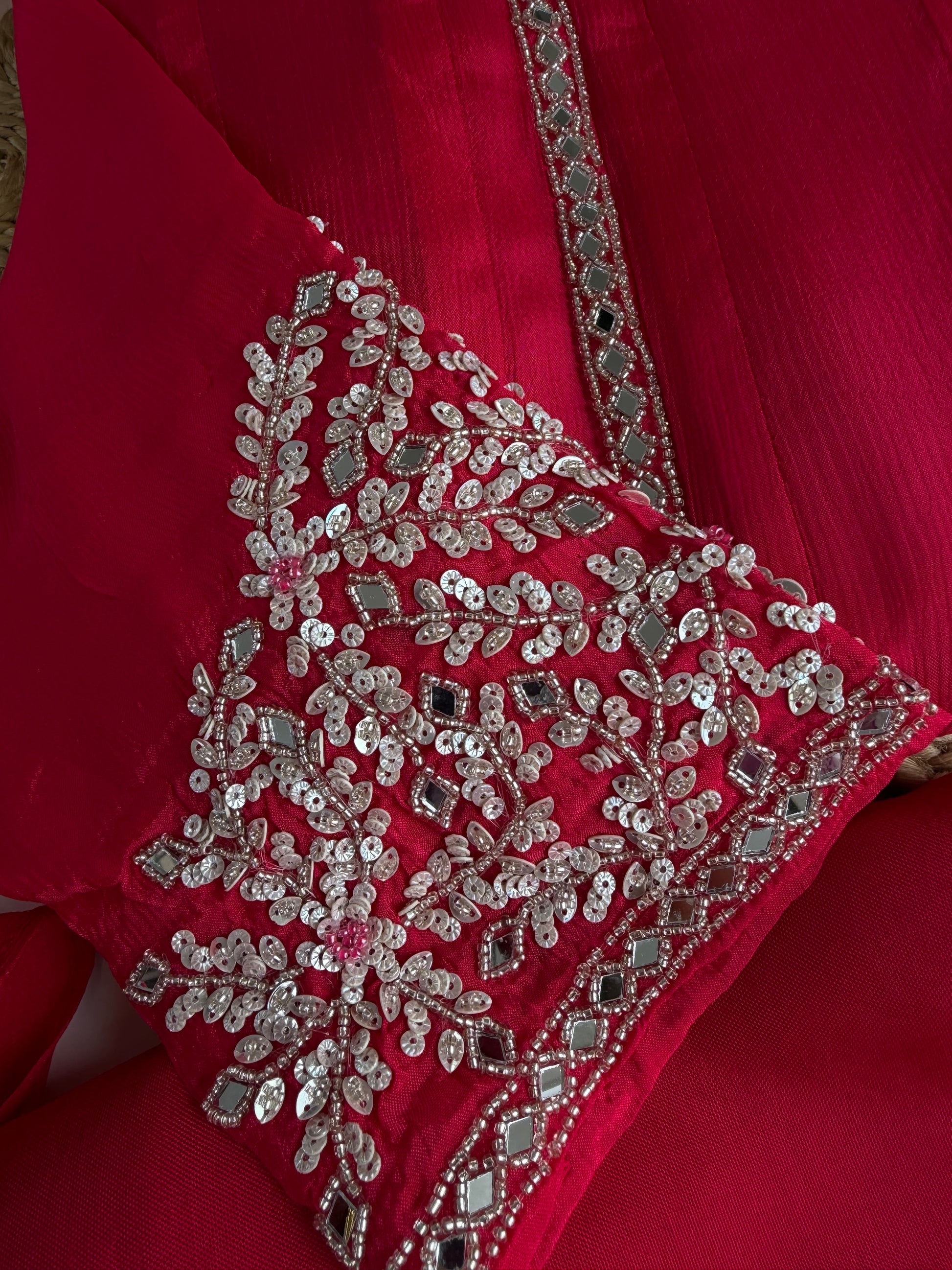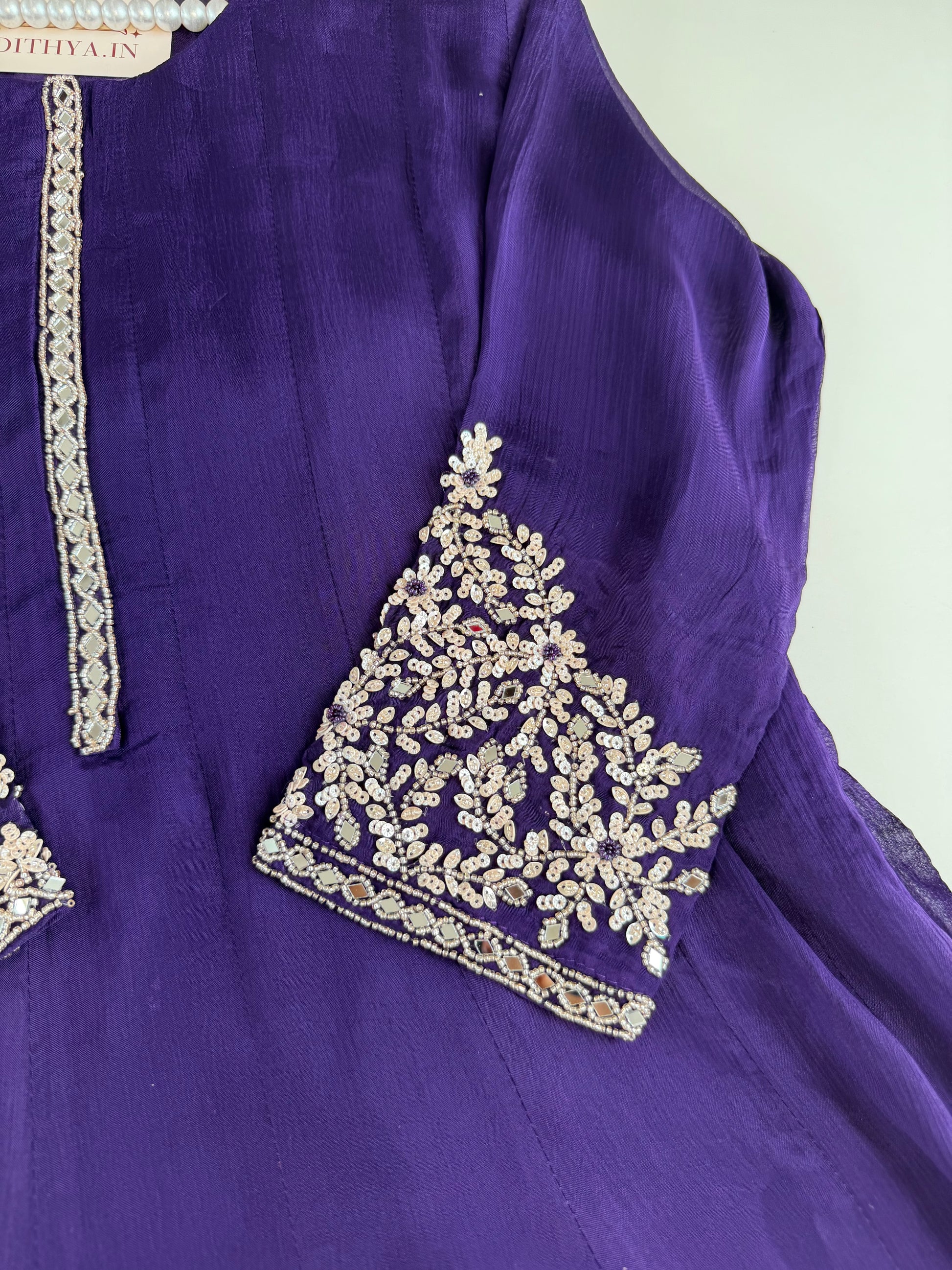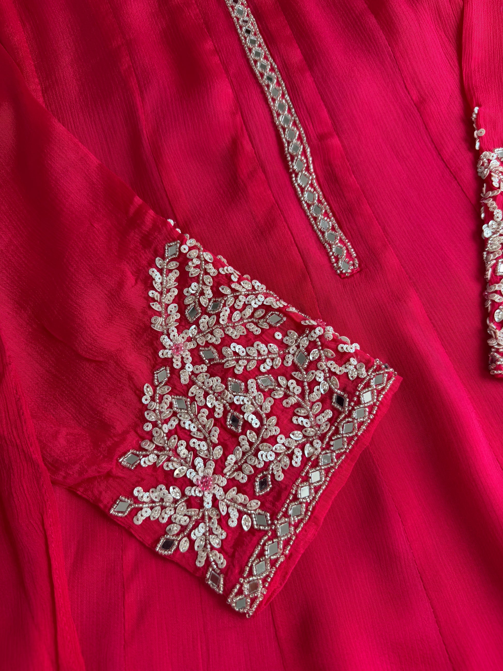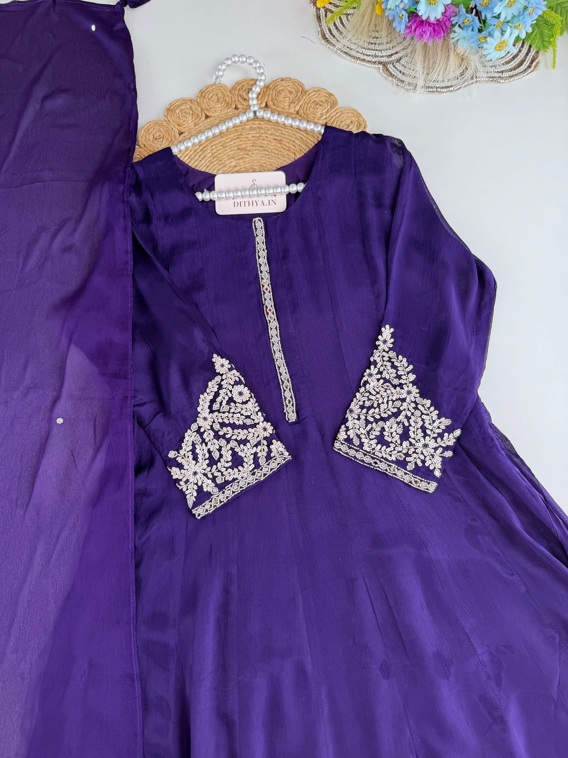 Experience the elegance and craftsmanship of our Chinnon handwork Anarkali. This stunning ensemble features intricate handwork and comes with pants and a dupatta, available in two beautiful colours to suit your style. Elevate your wardrobe with this timeless piece that combines tradition and modernity.