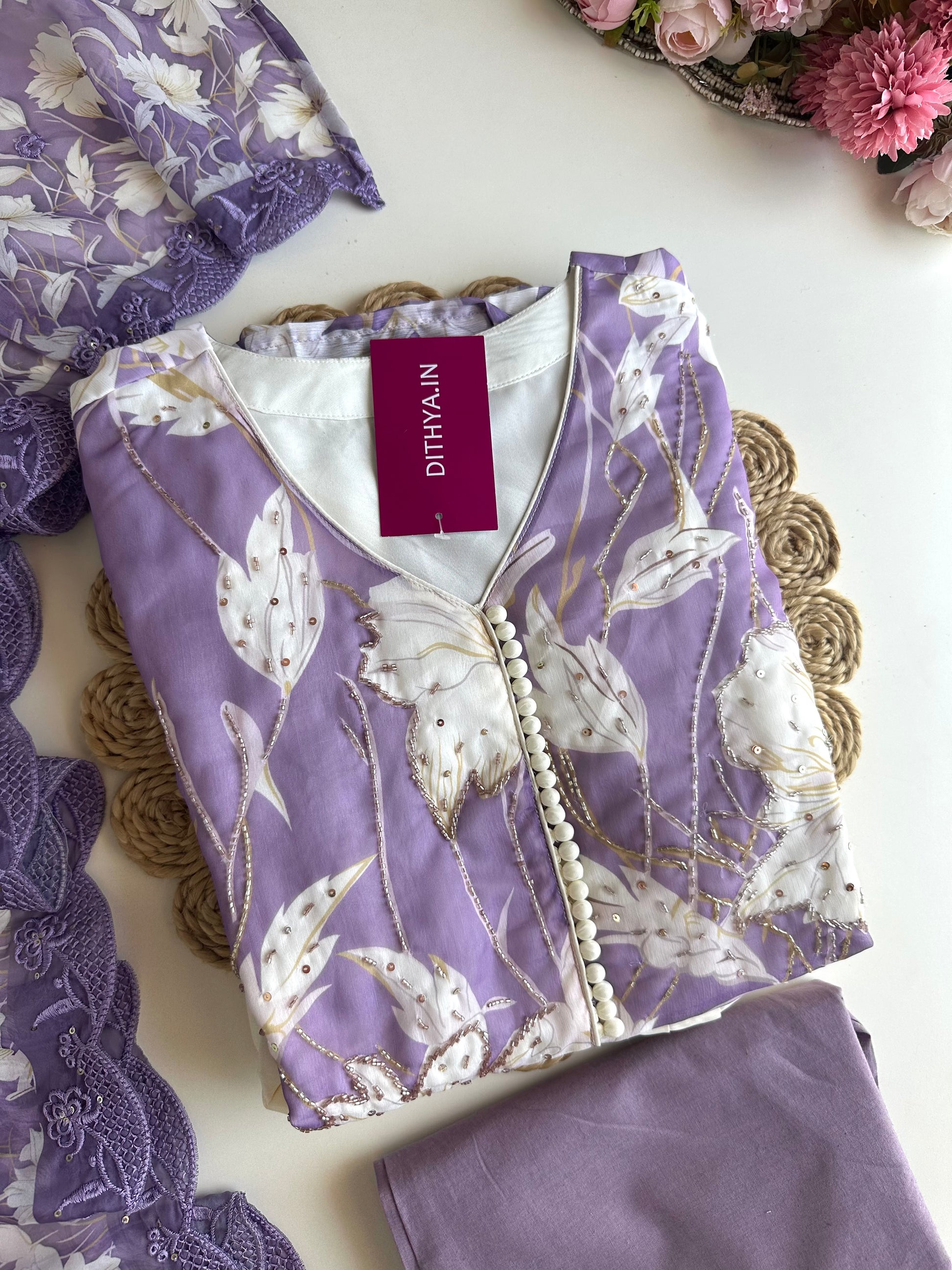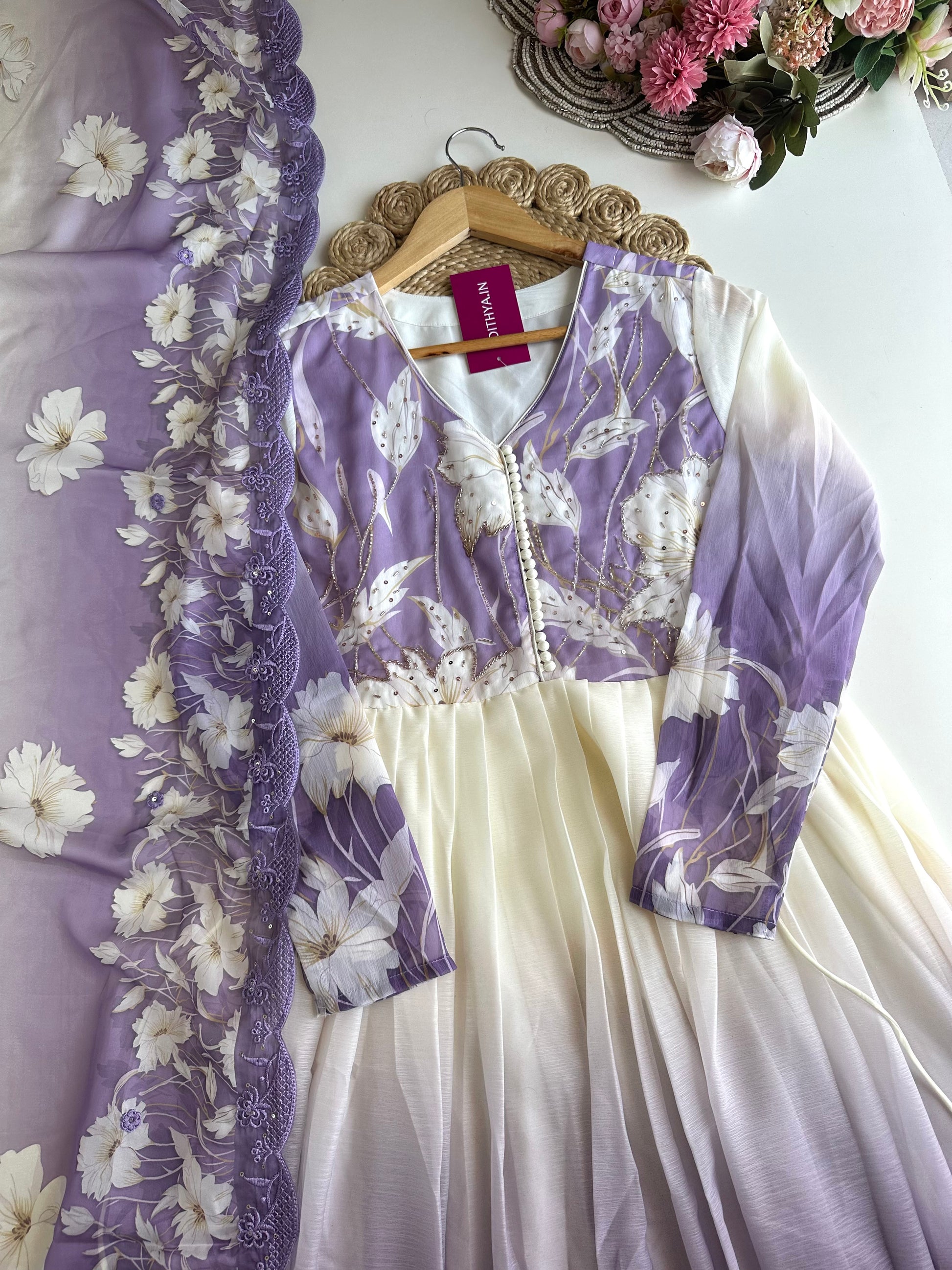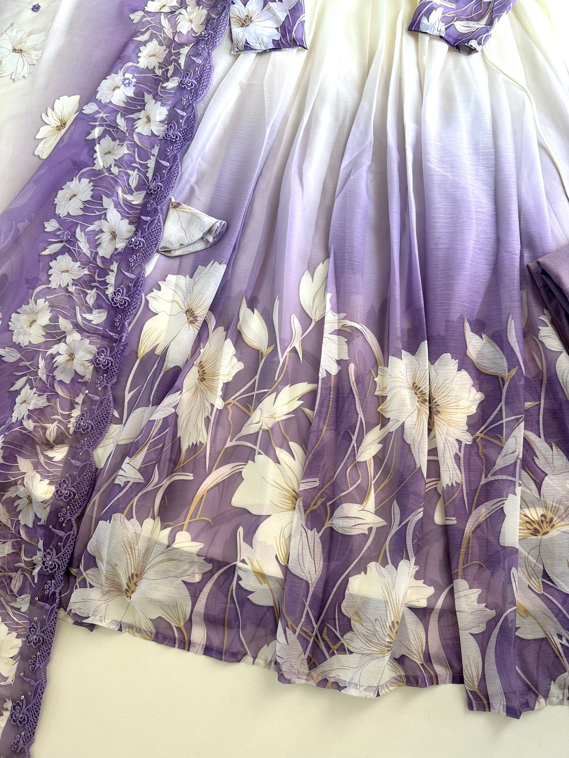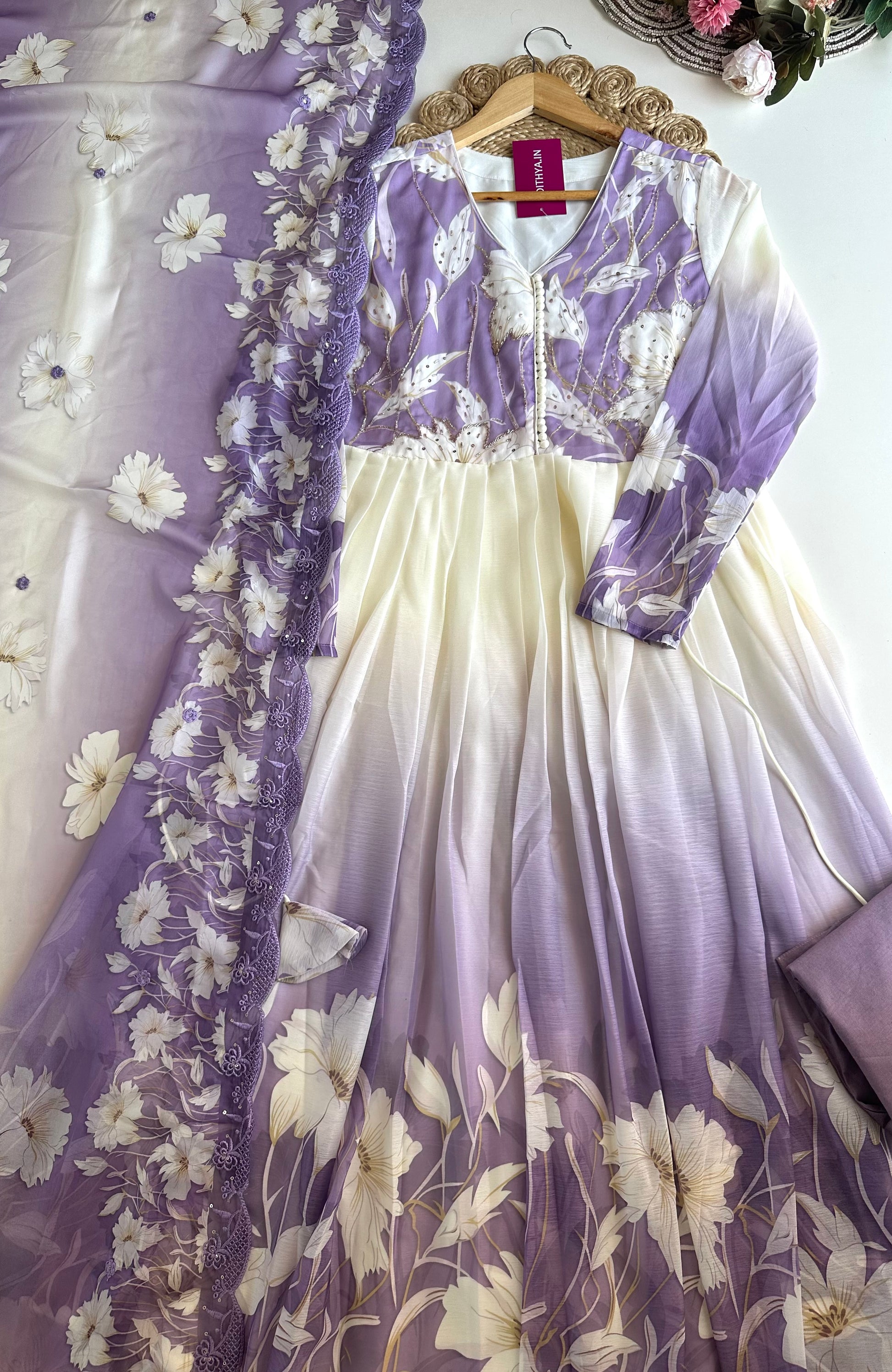 K426 - Chinnon handwork Floral Anarkali with pants and dupatta