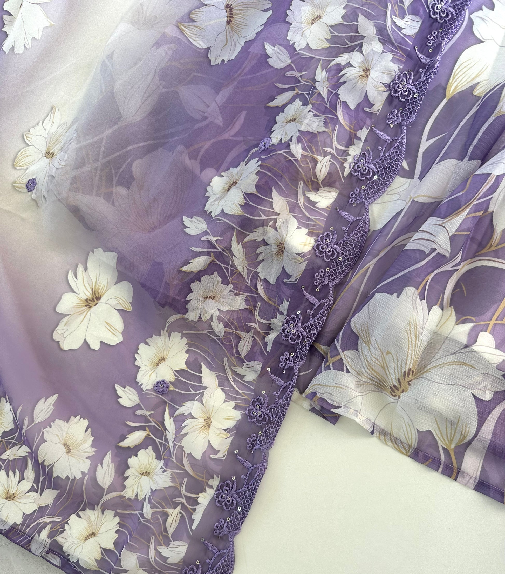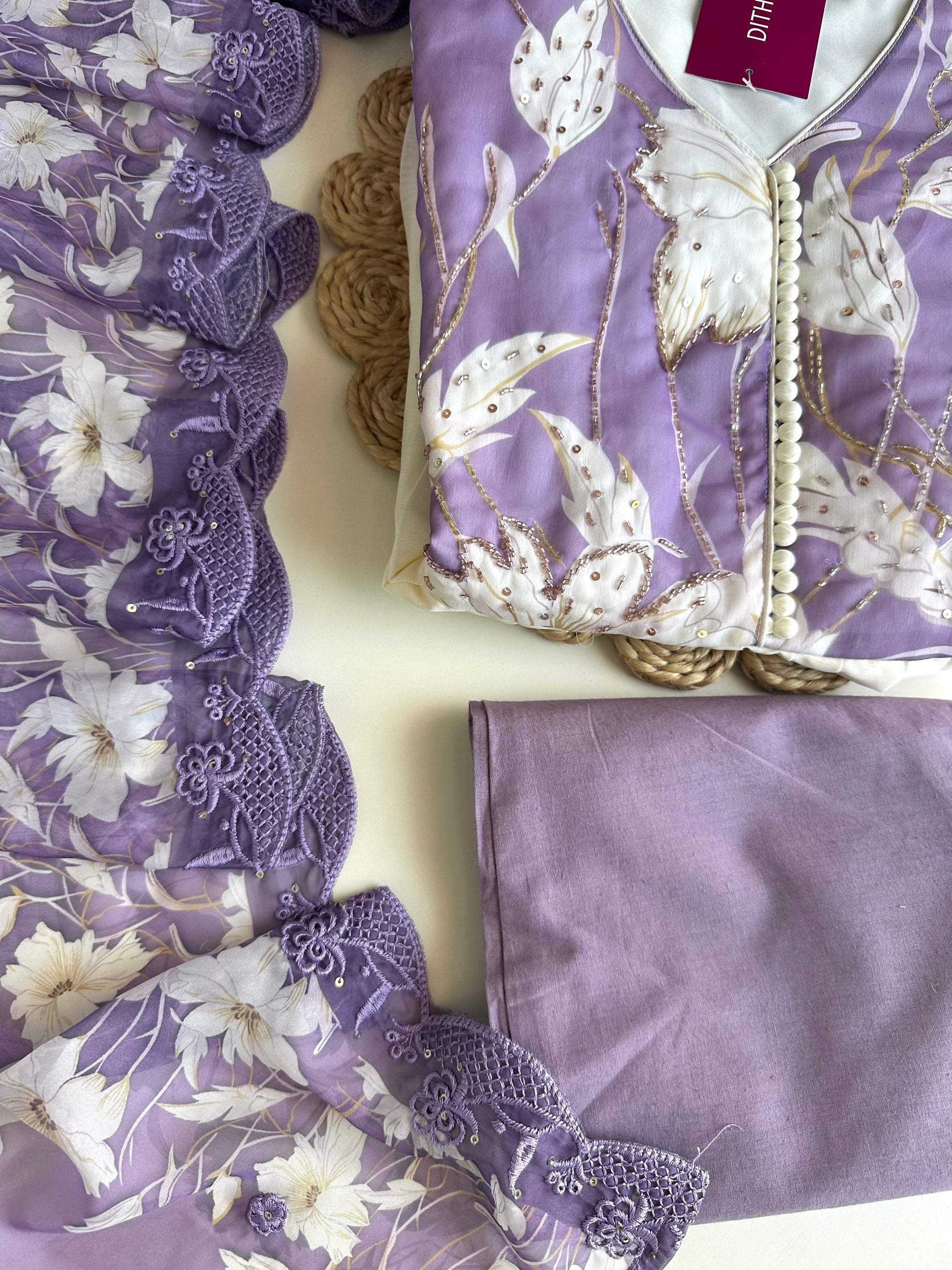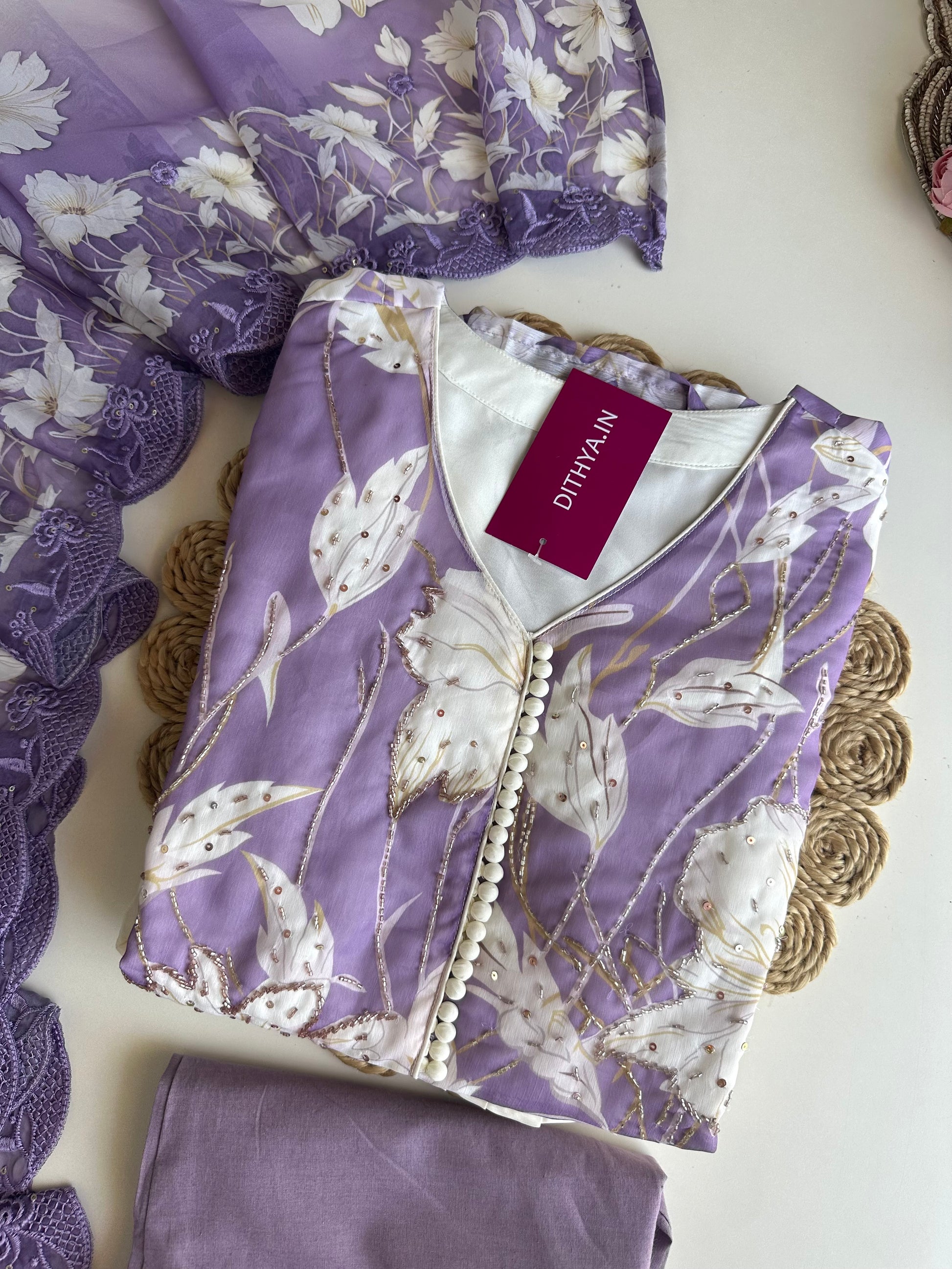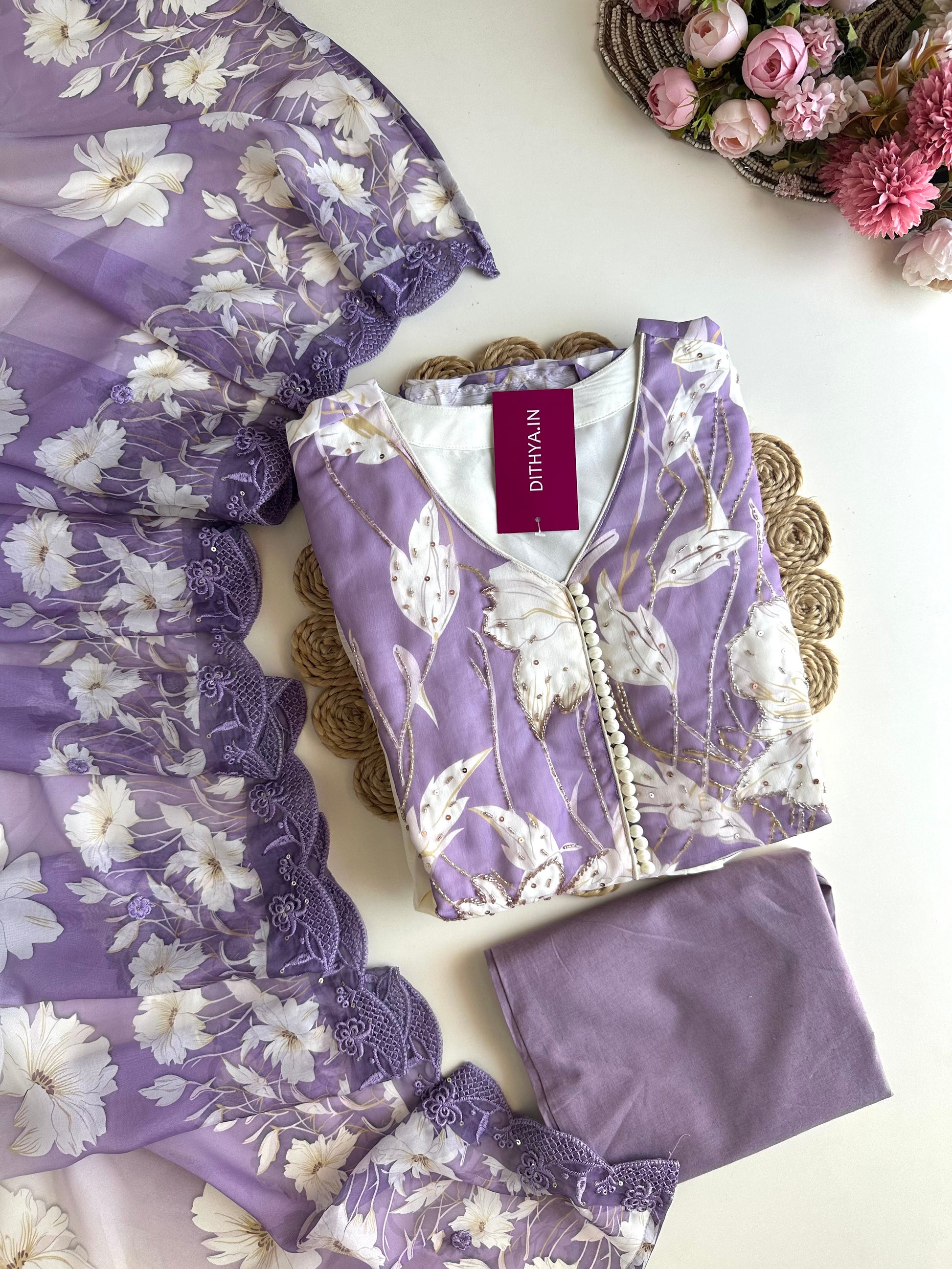 K426 - Chinnon handwork Floral Anarkali with pants and dupatta