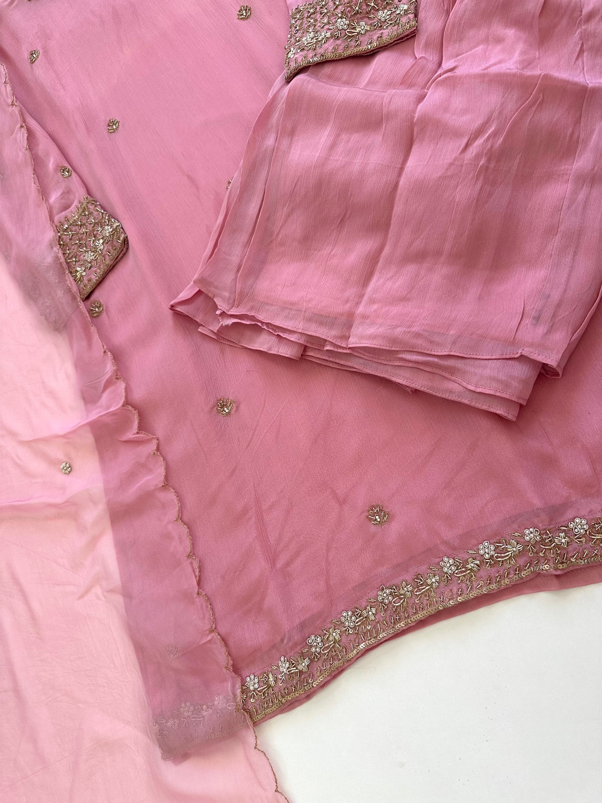 K075 - Chinnon Handwork straight short kurti with sharara and dupatta.