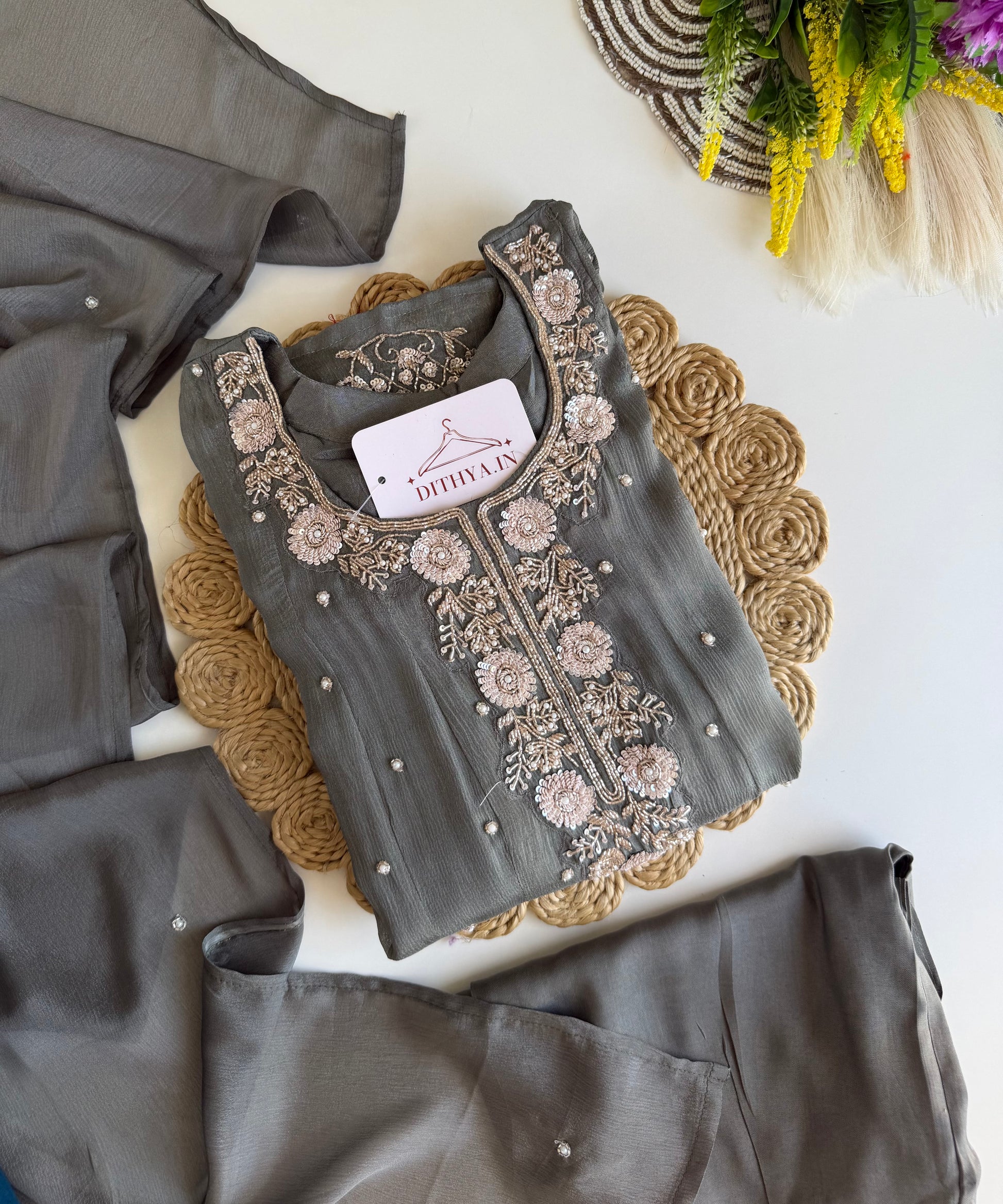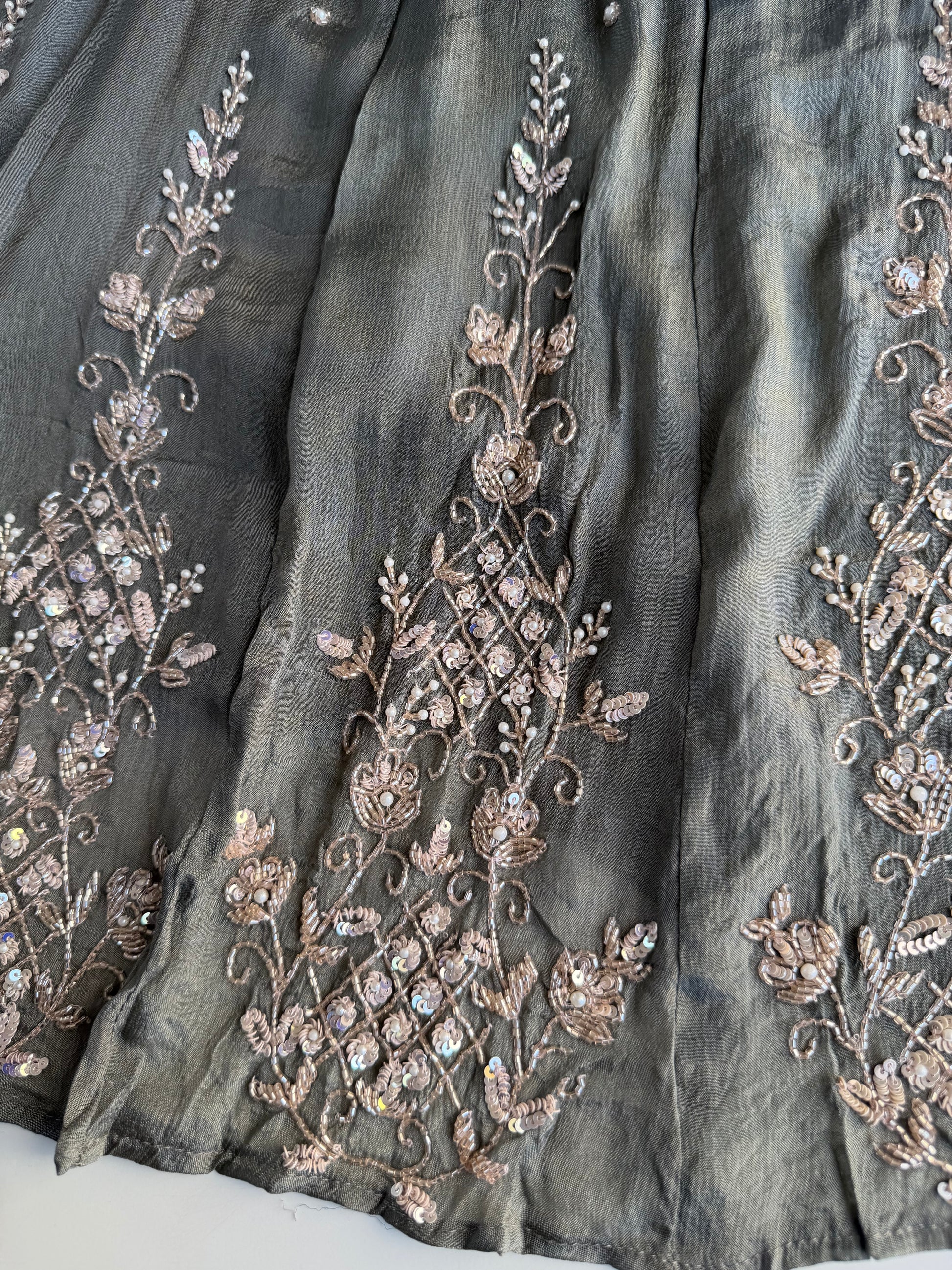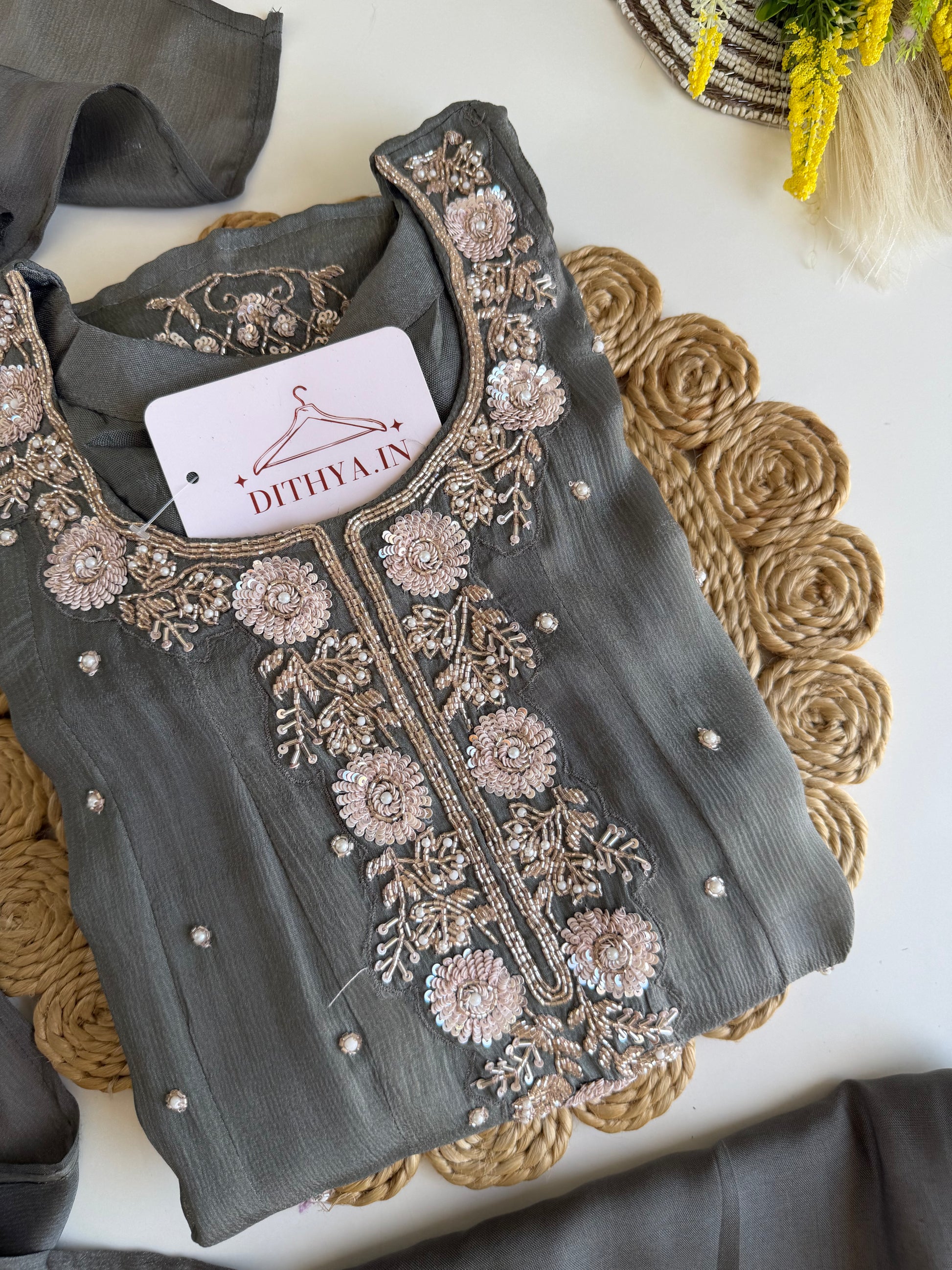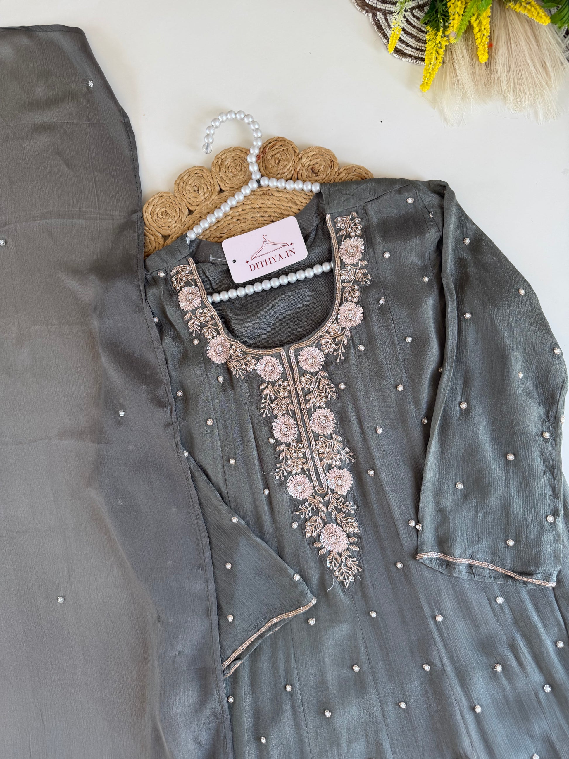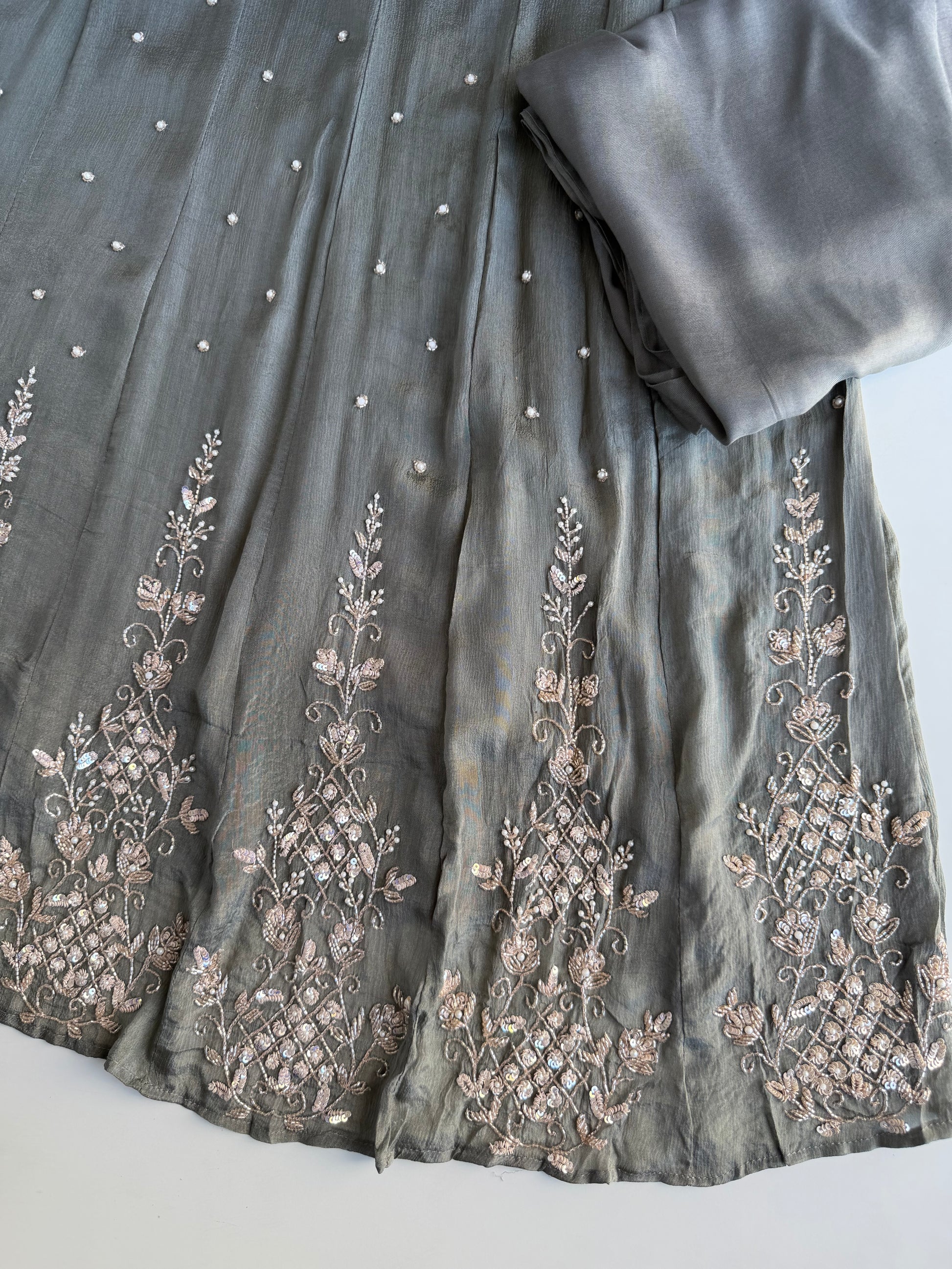 K282 - Chinnon heavy handwork Anarkali with pants and dupatta