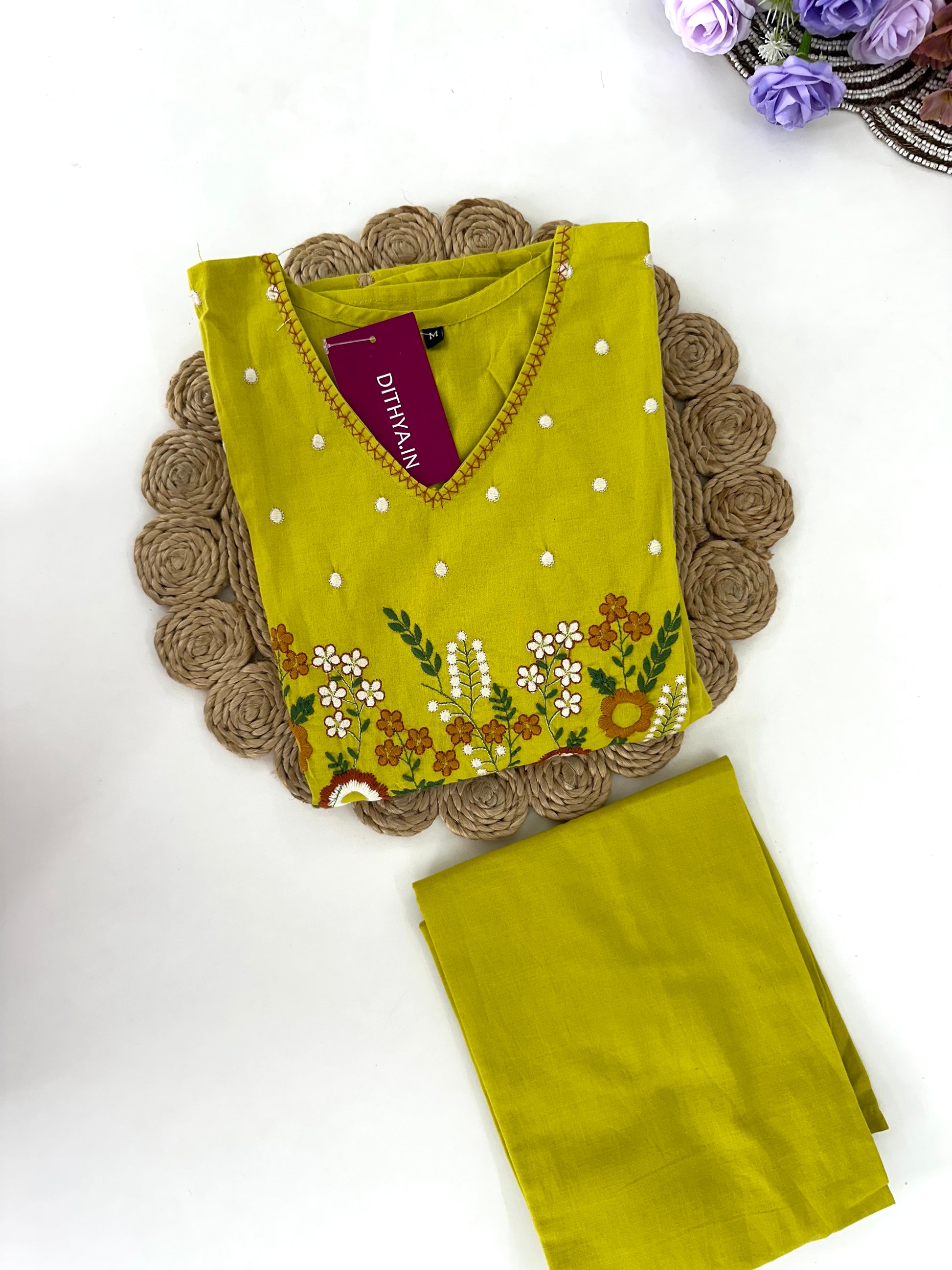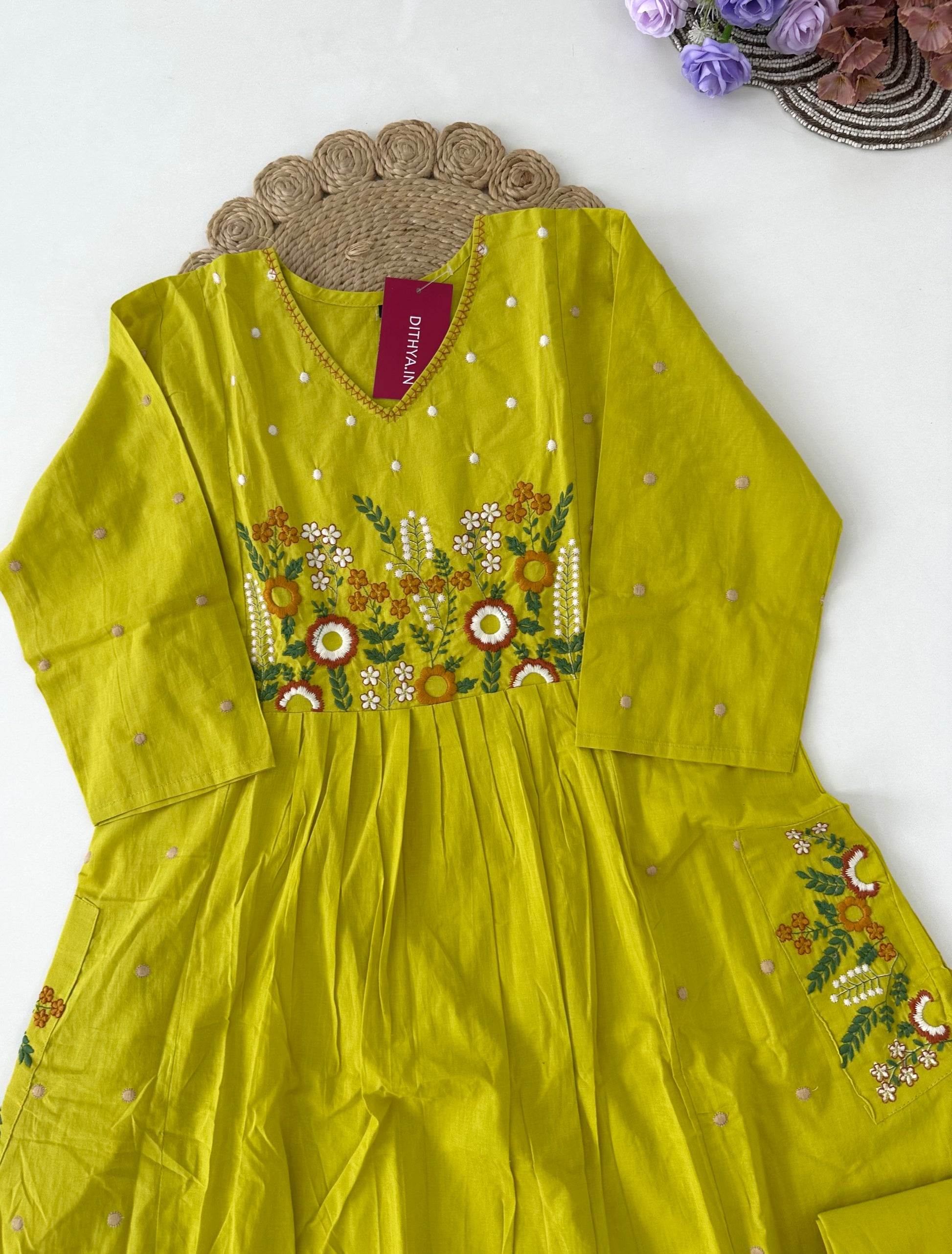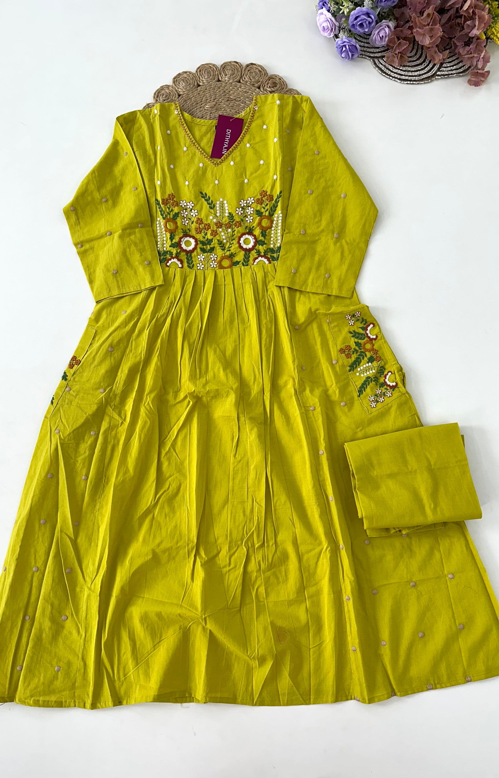 Introducing our Cotton Aline kurti with pants. Made from soft and breathable cotton, this Aline kurti is designed for maximum comfort and style. The perfect combination of traditional and modern, its versatile design can be dressed up or down for any occasion. Upgrade your wardrobe with this must-have piece.
