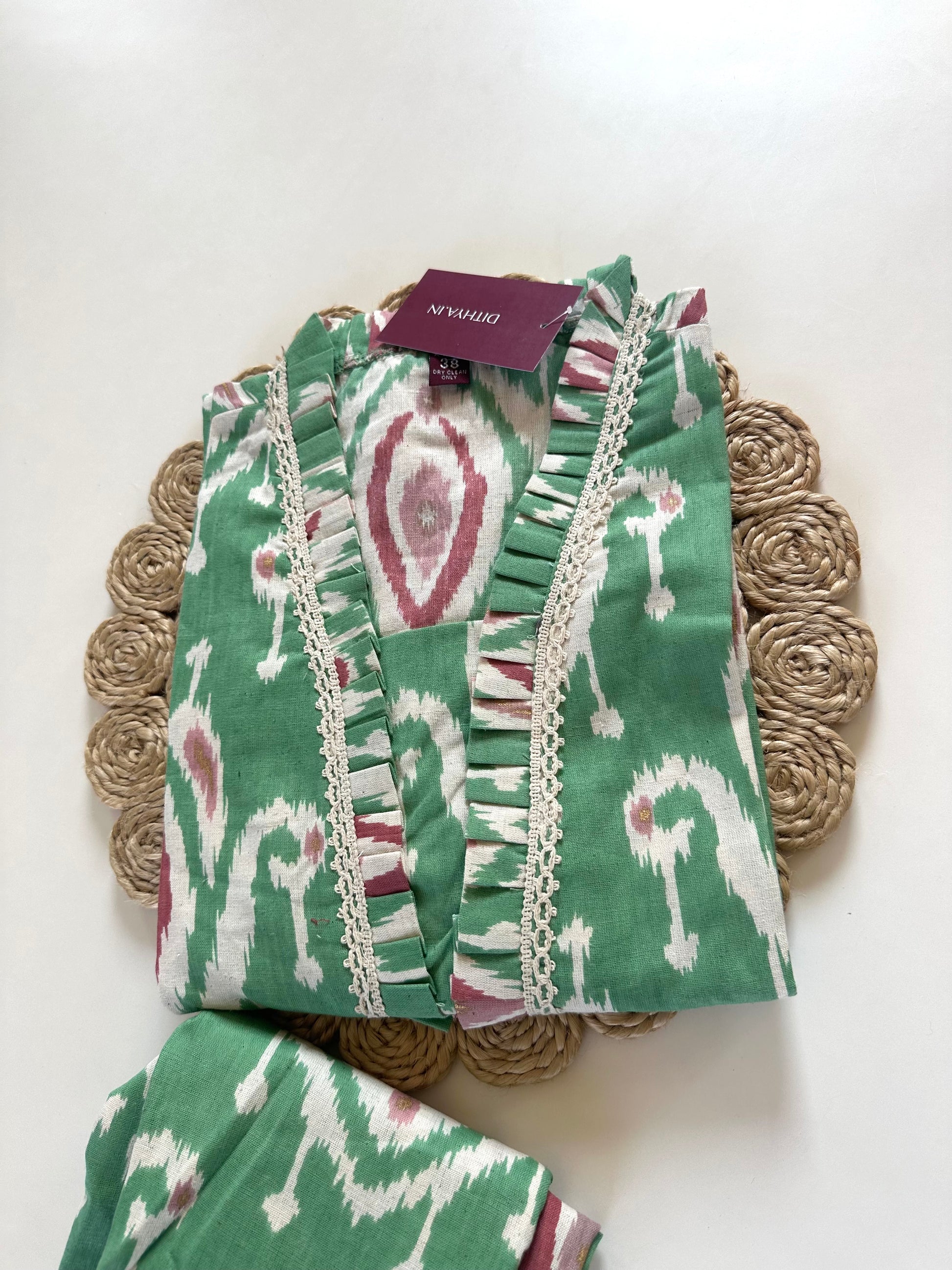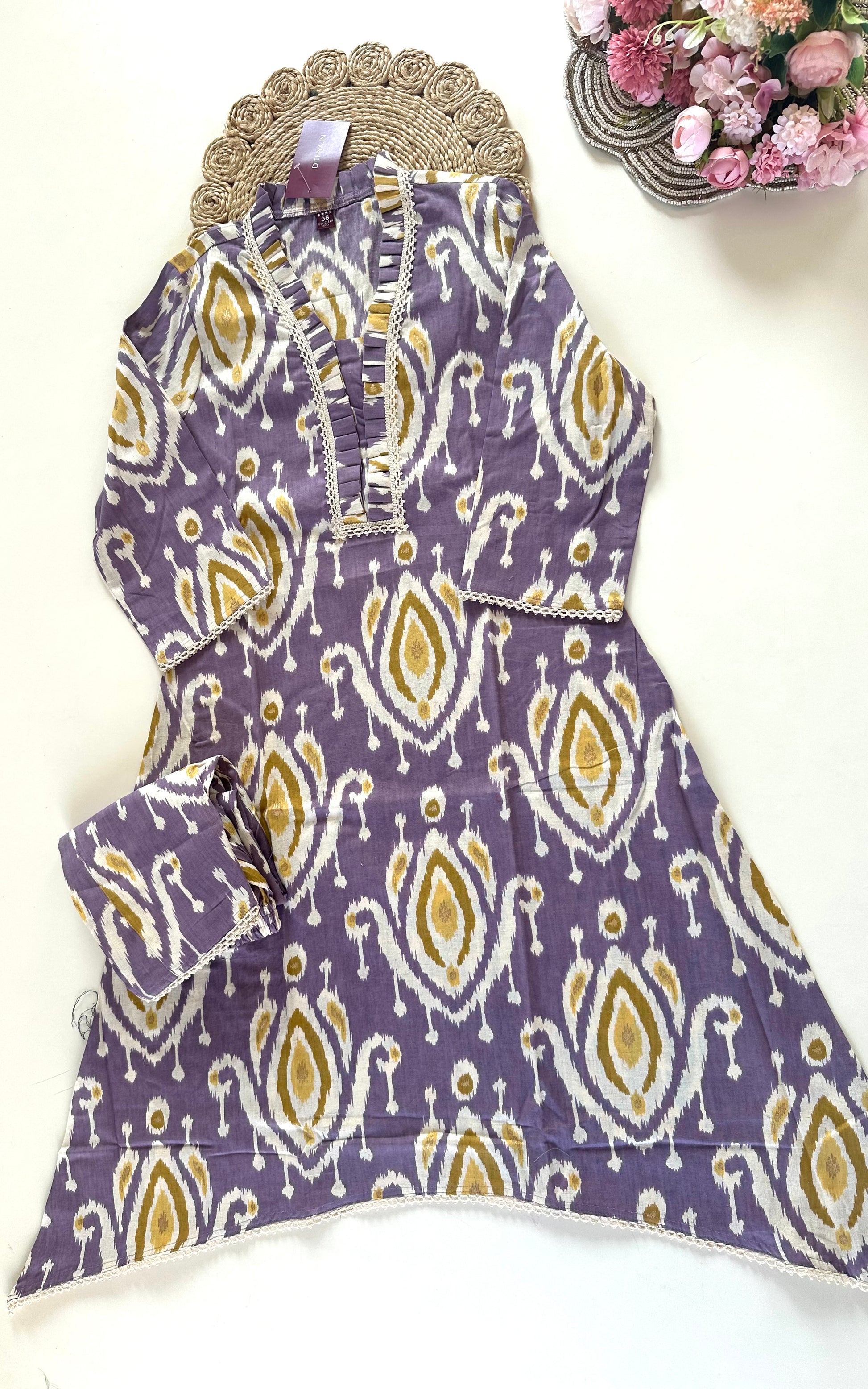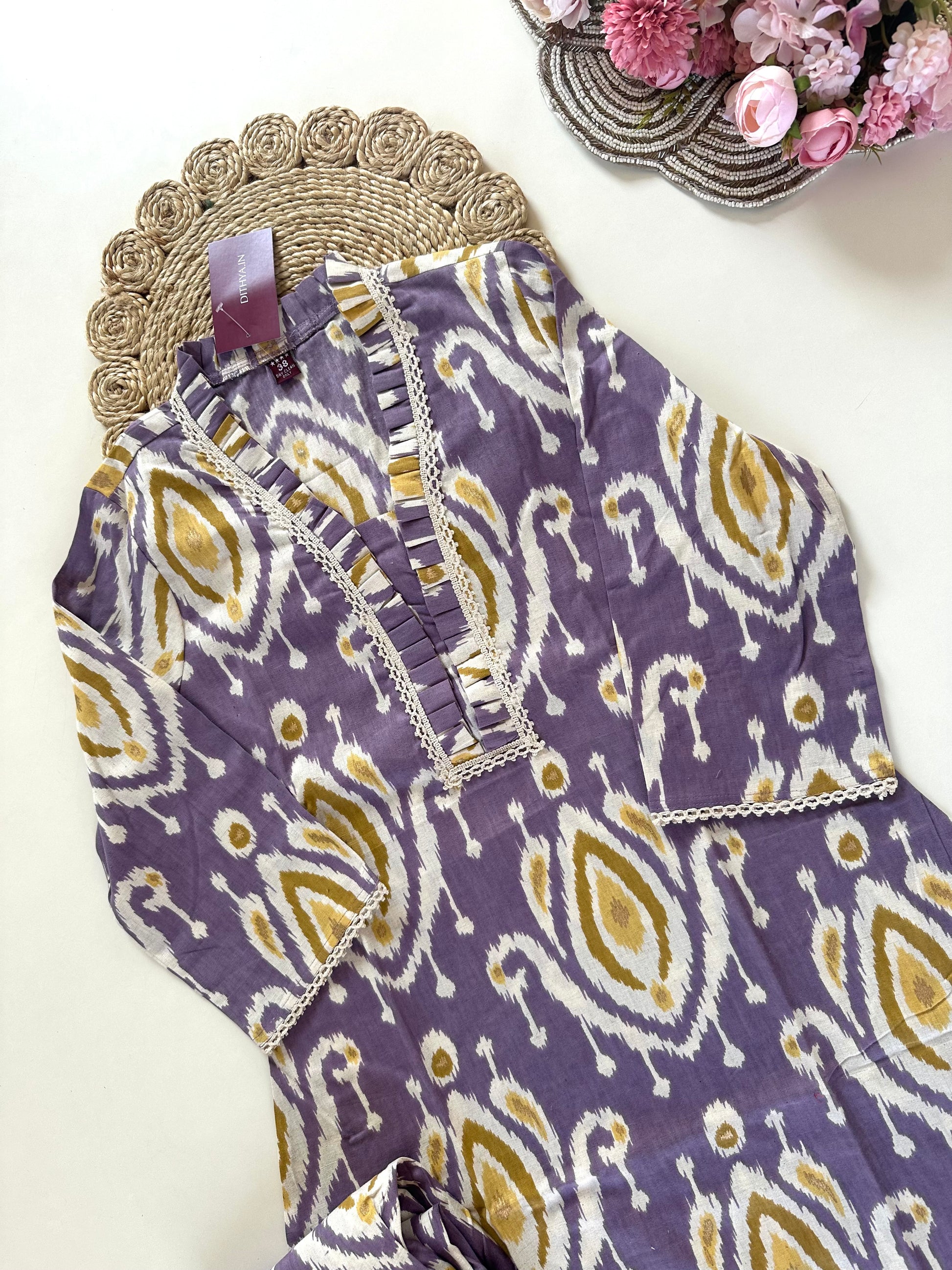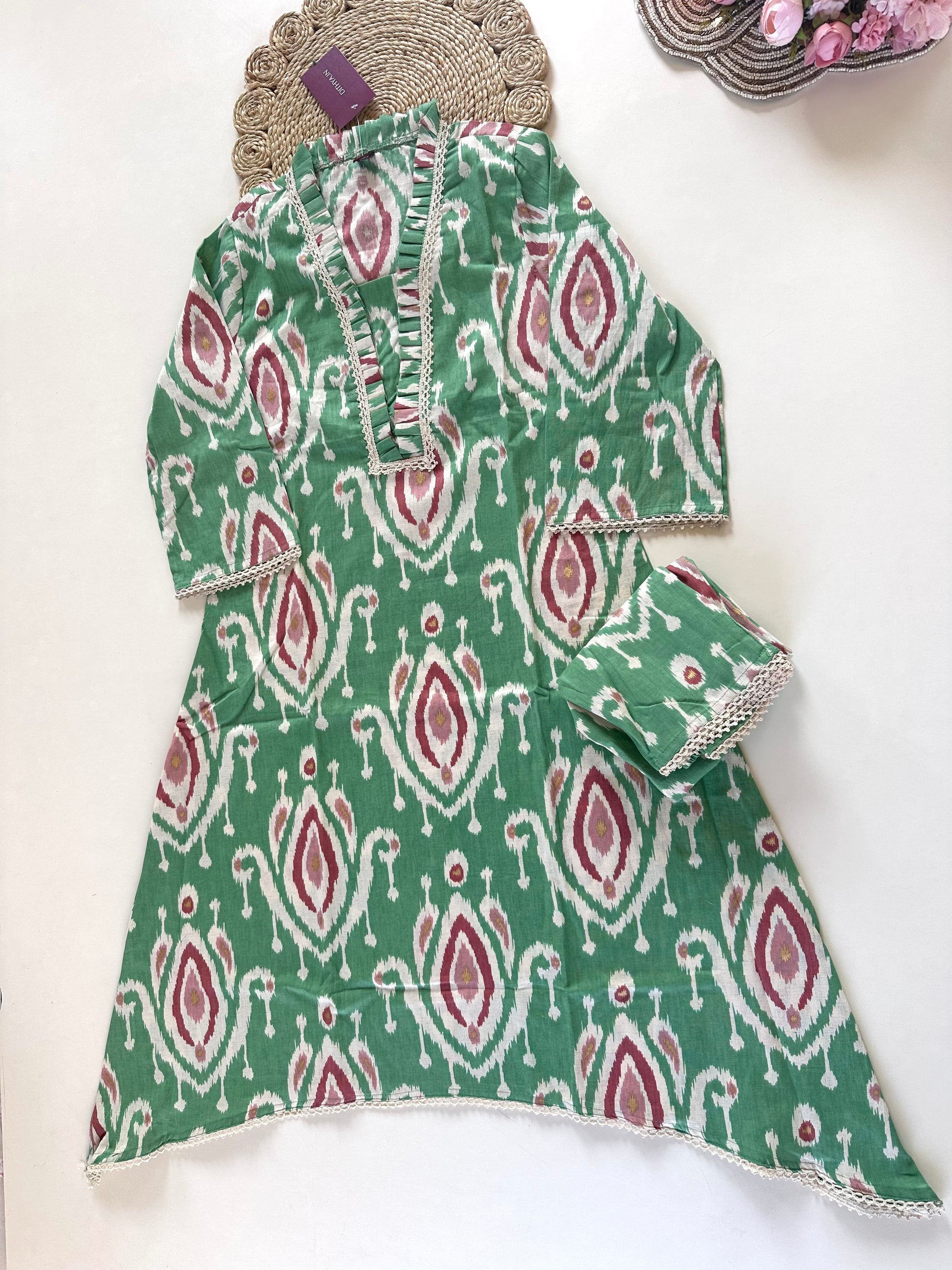 This cotton Aline Kurti is a versatile and stylish addition to any wardrobe. It comes with straight pants in two gorgeous colors to compliment any look. Made from high-quality cotton, it offers comfort and durability. Perfect for any occasion, this outfit is a must-have for any fashion-forward individual.