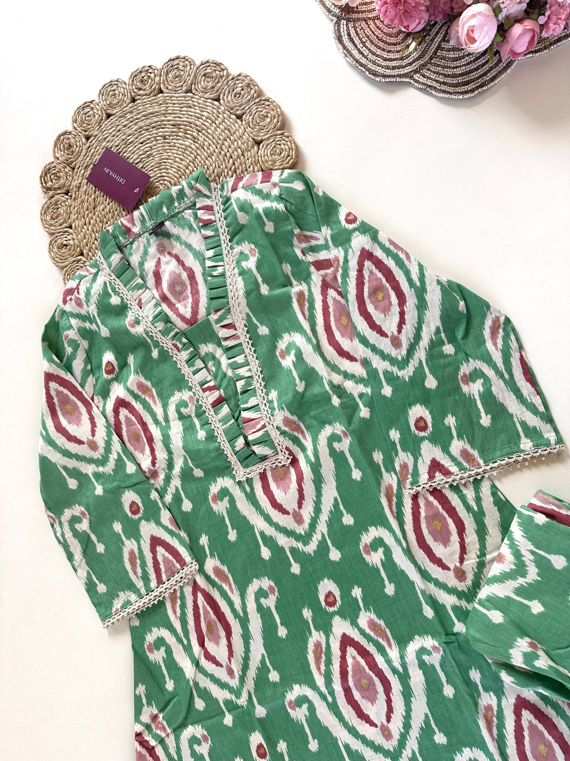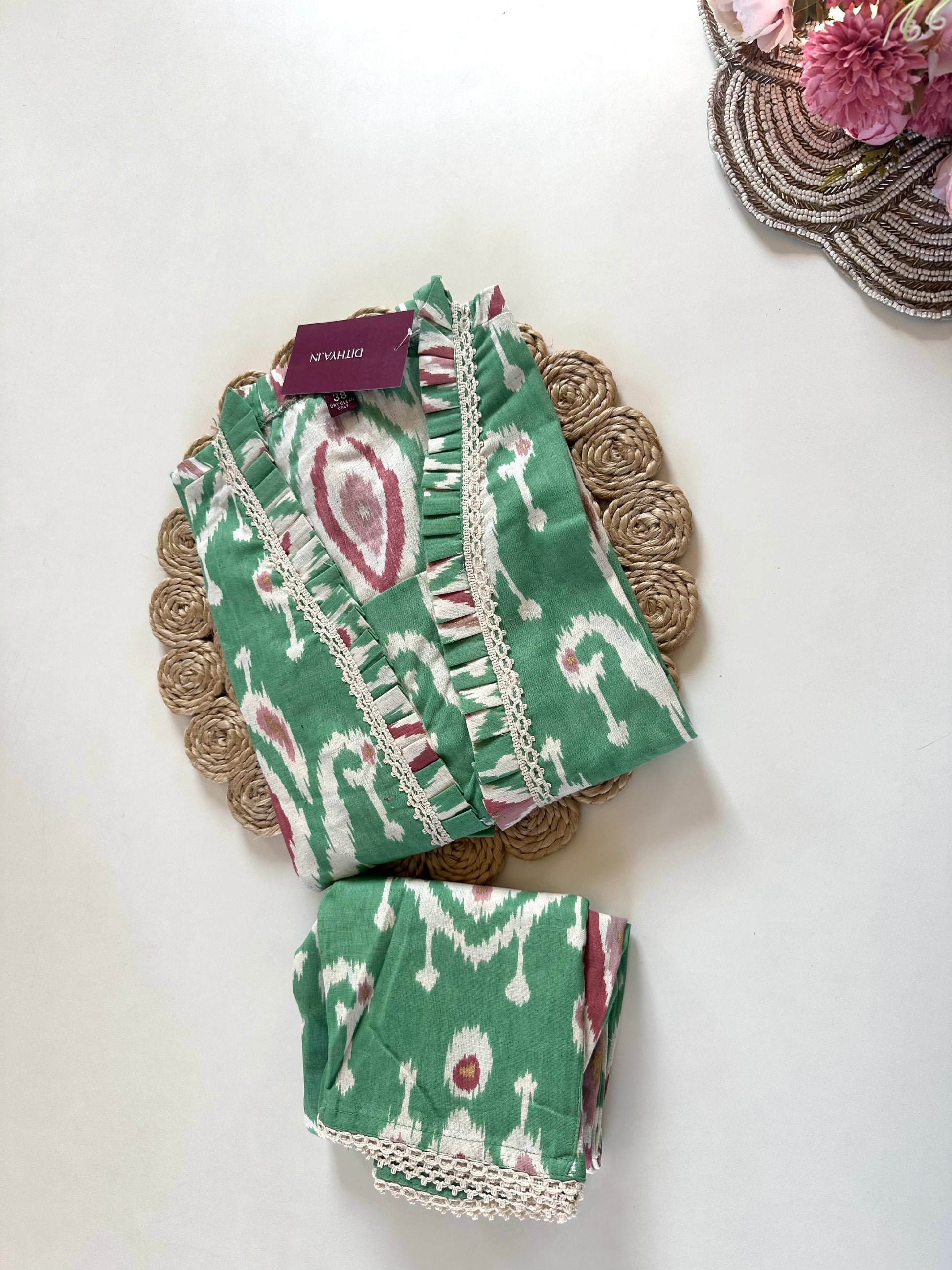 K363 - Cotton Aline Kurti with straight pants in 2 colours.