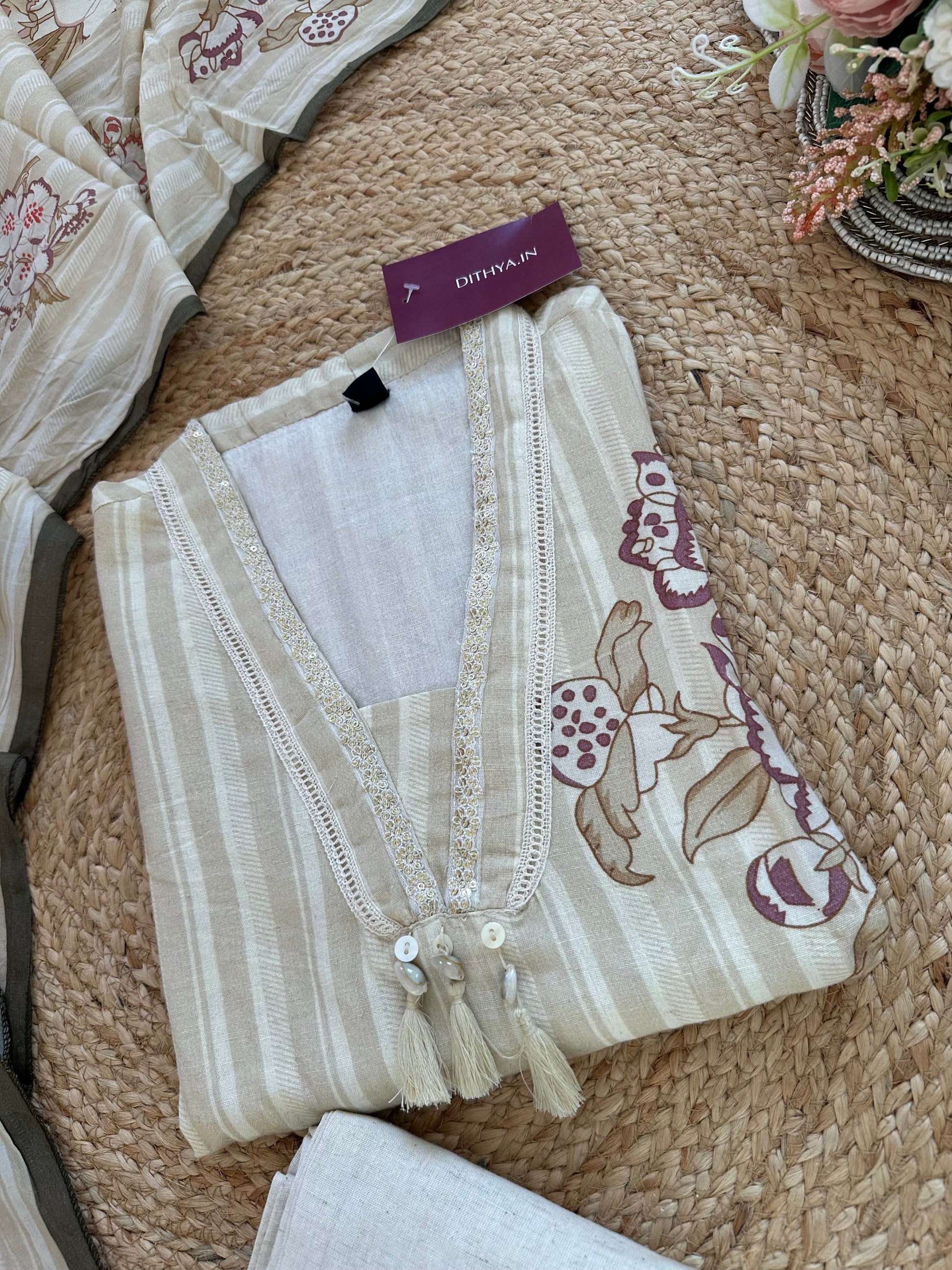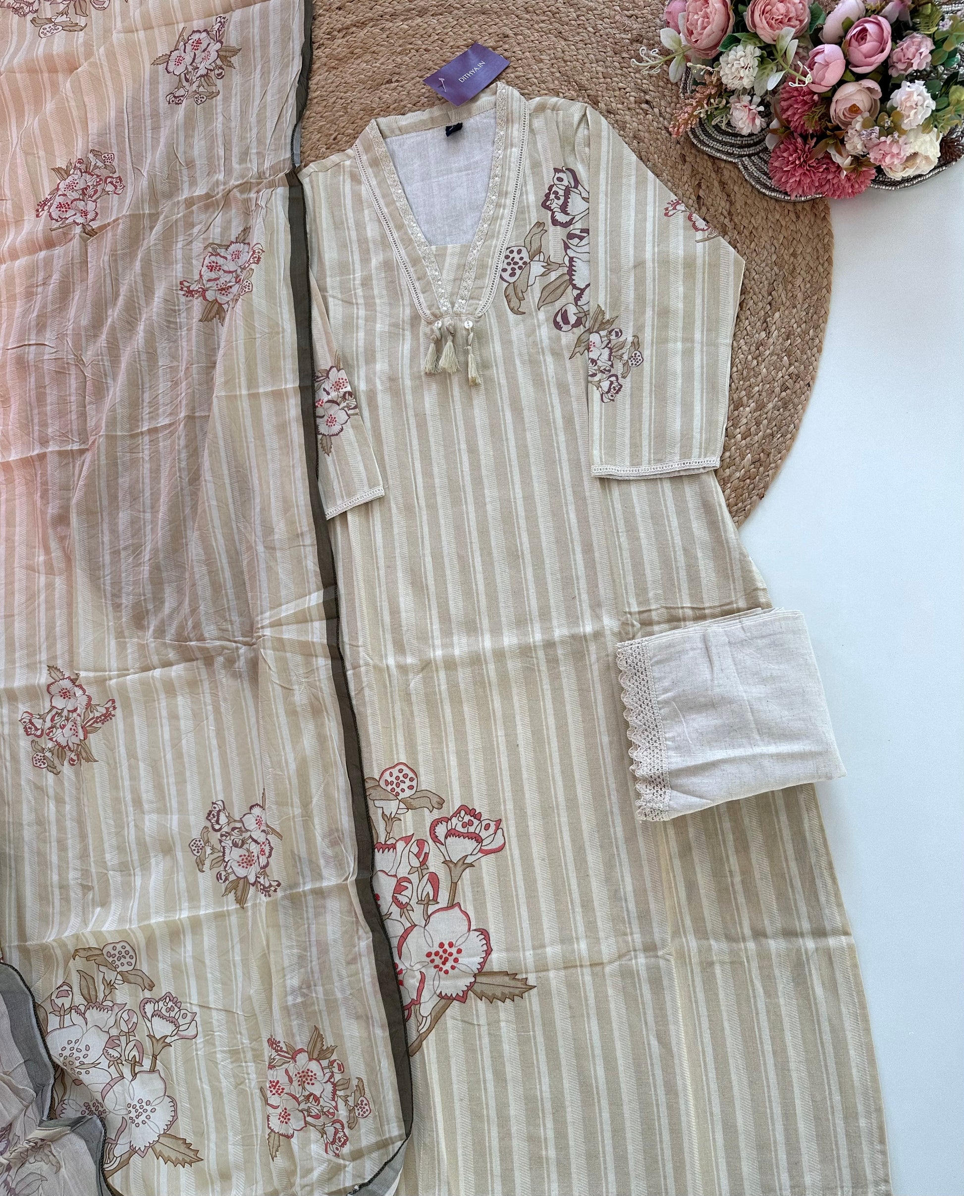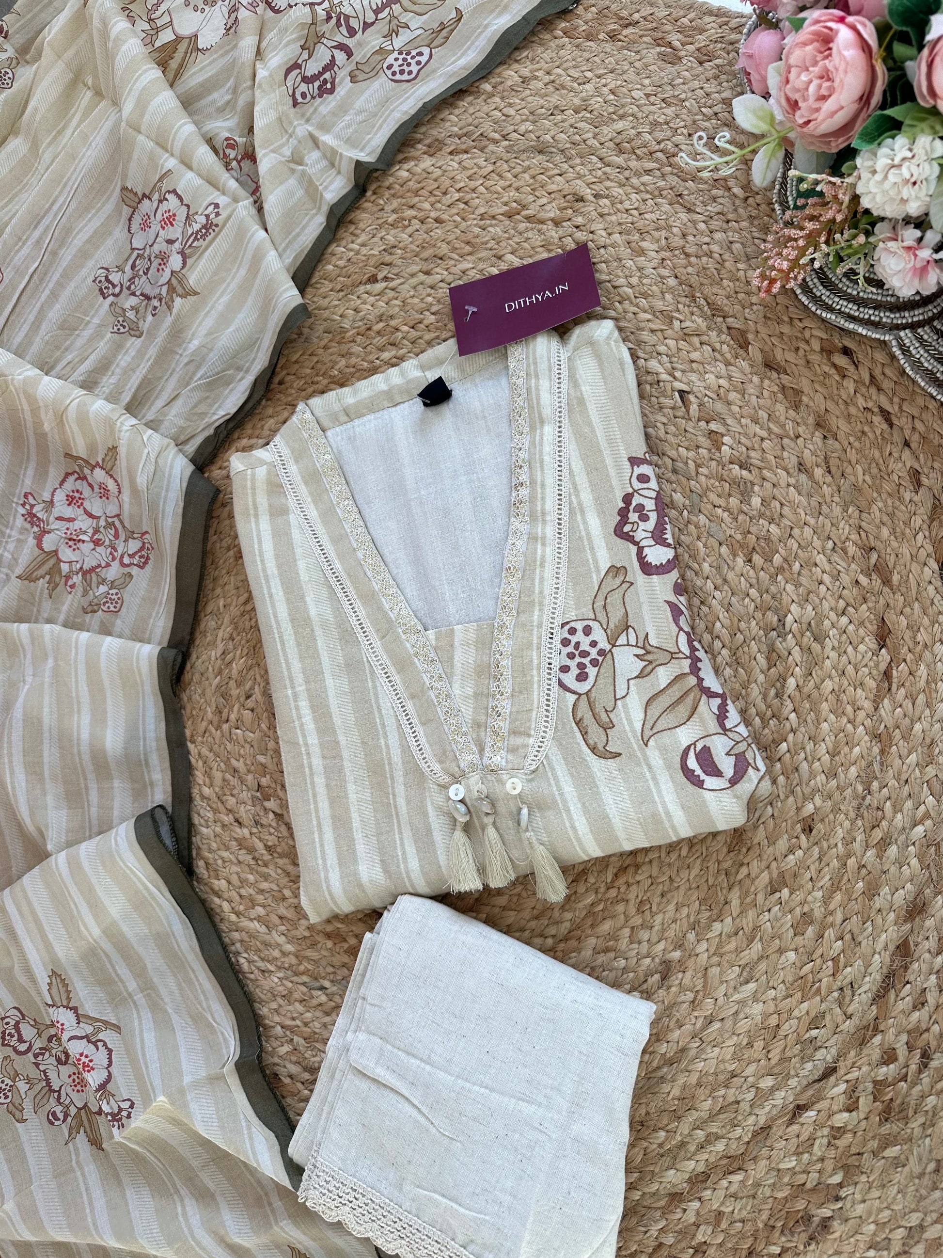 K264 - Cotton Collar neck straight kurti with pants and dupatta