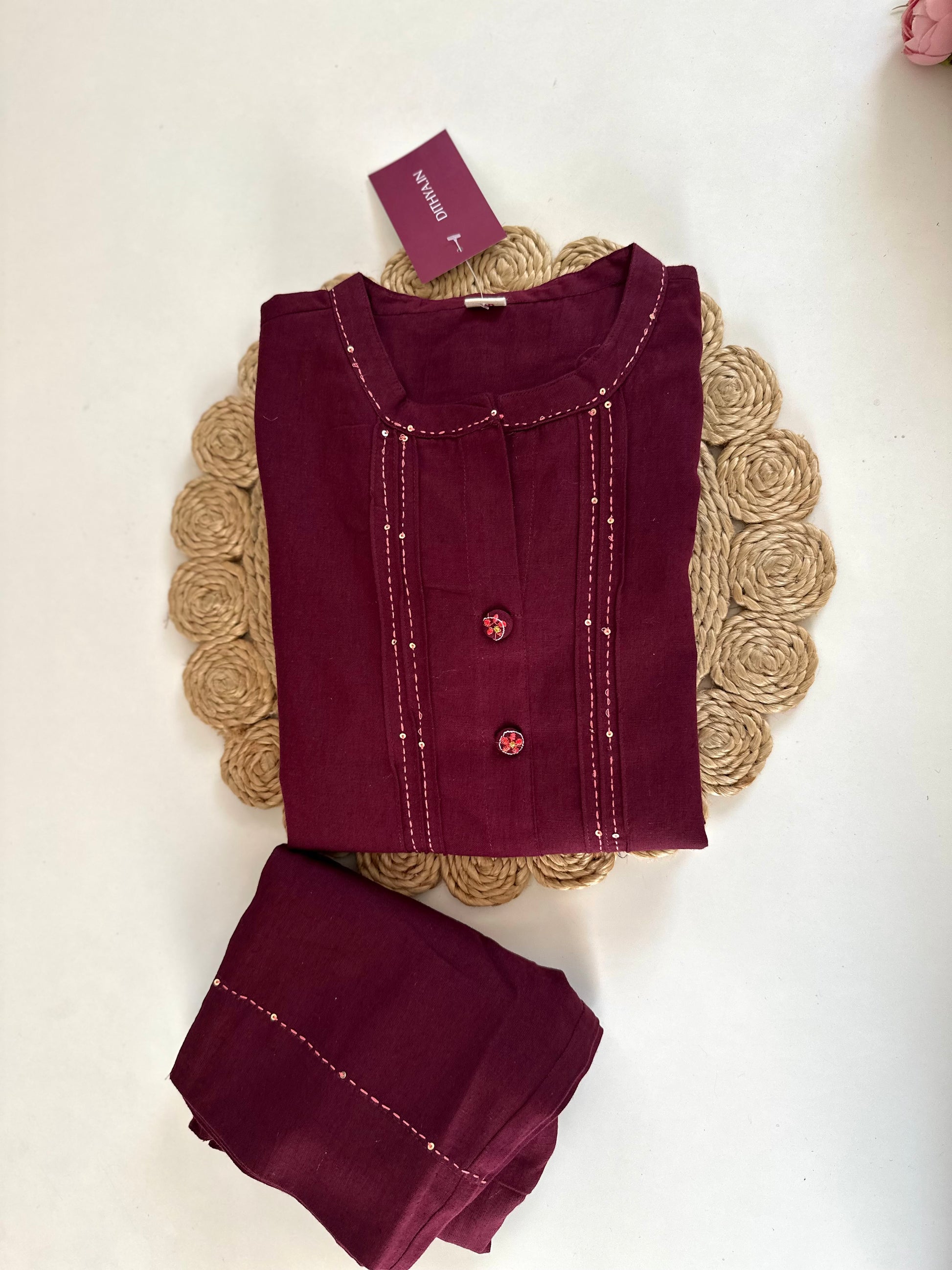 This Cotton embroidered Aline Kurti comes with a matching pair of pants, making for a stylish and comfortable outfit. Made with high-quality cotton, the kurti features intricate embroidery detailing, adding a touch of elegance. Perfect for any occasion, this Aline Kurti offers both style and comfort in one package.