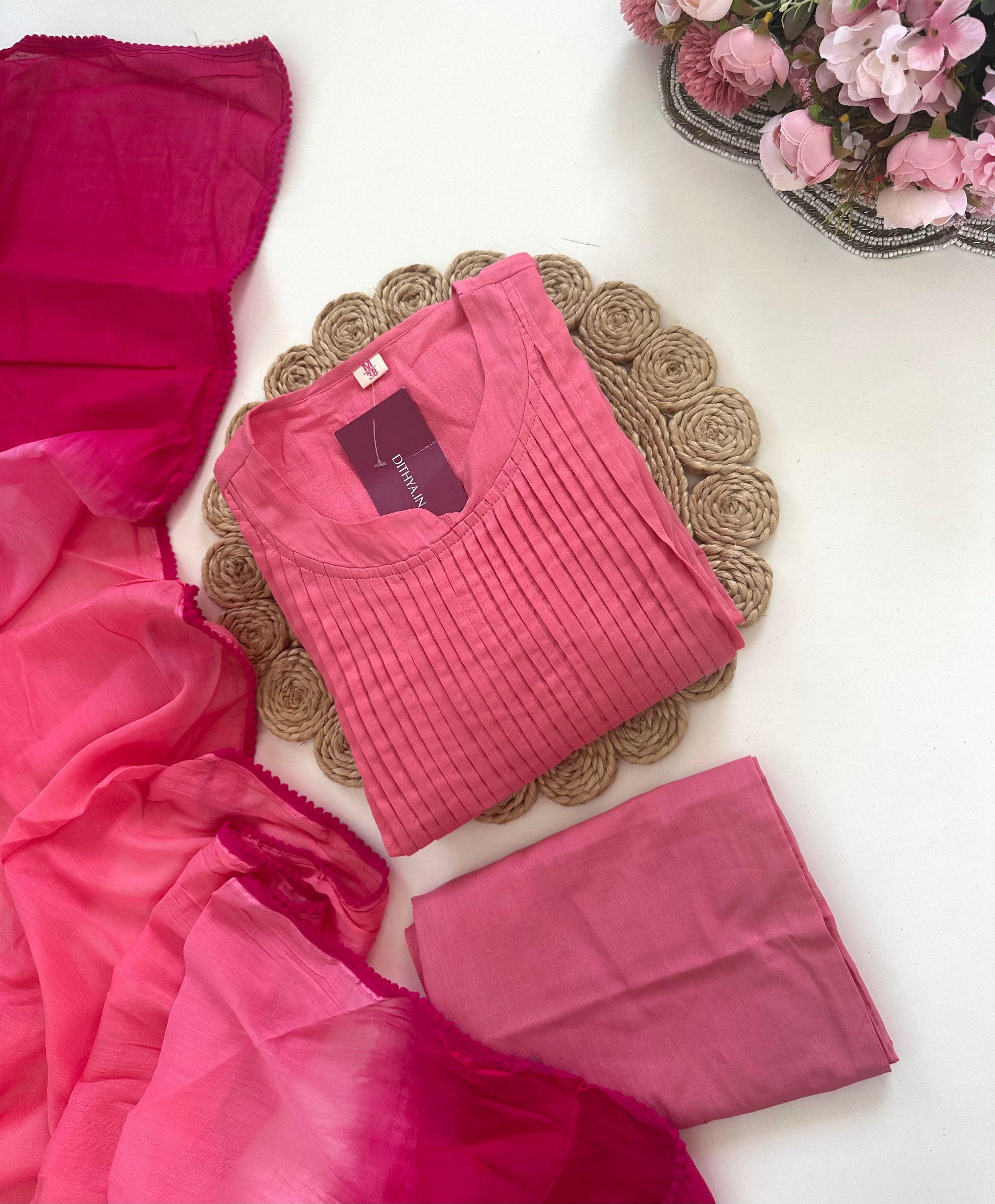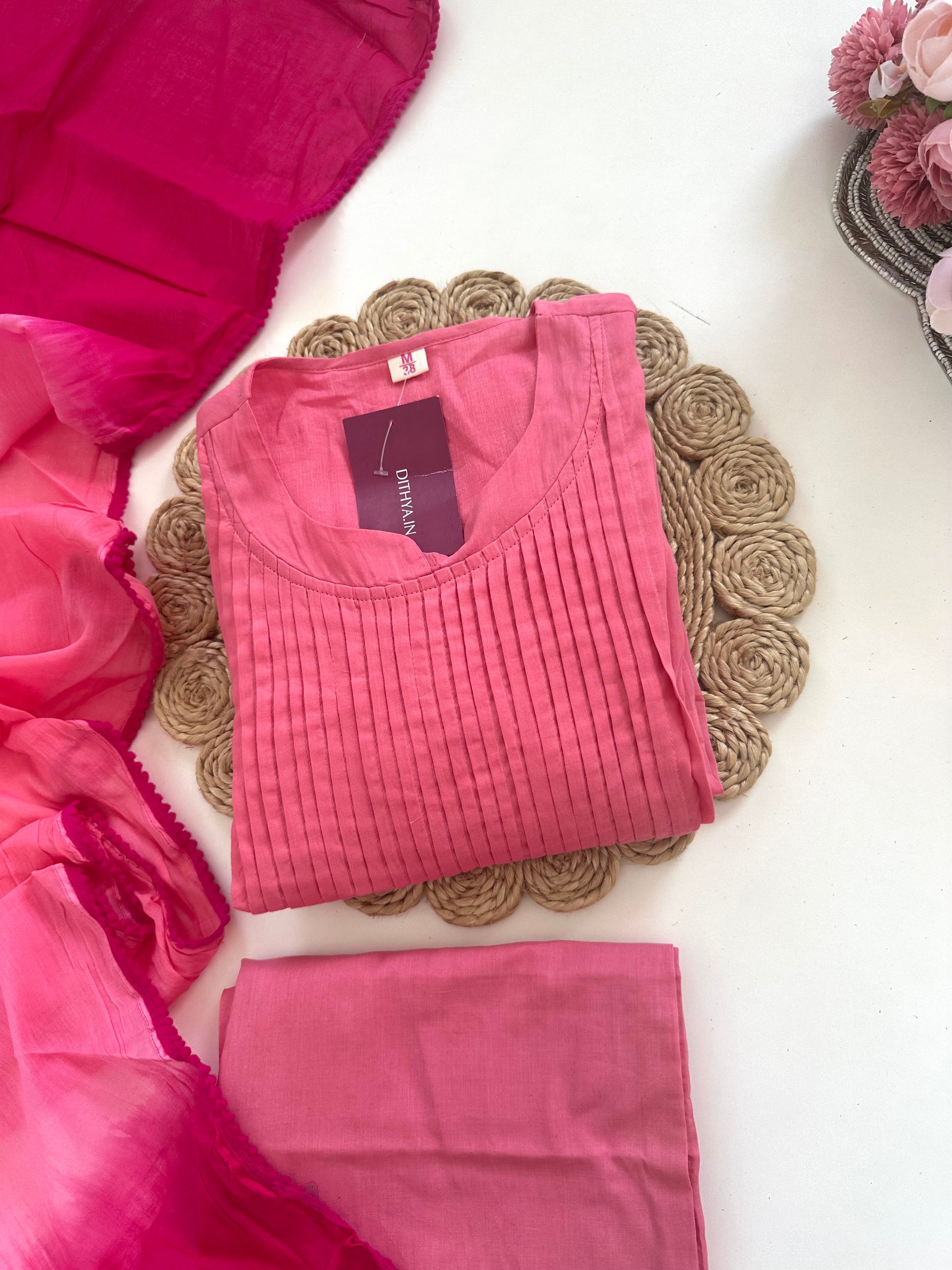 K238 - Cotton embroidered Aline Kurti with pants and dupatta