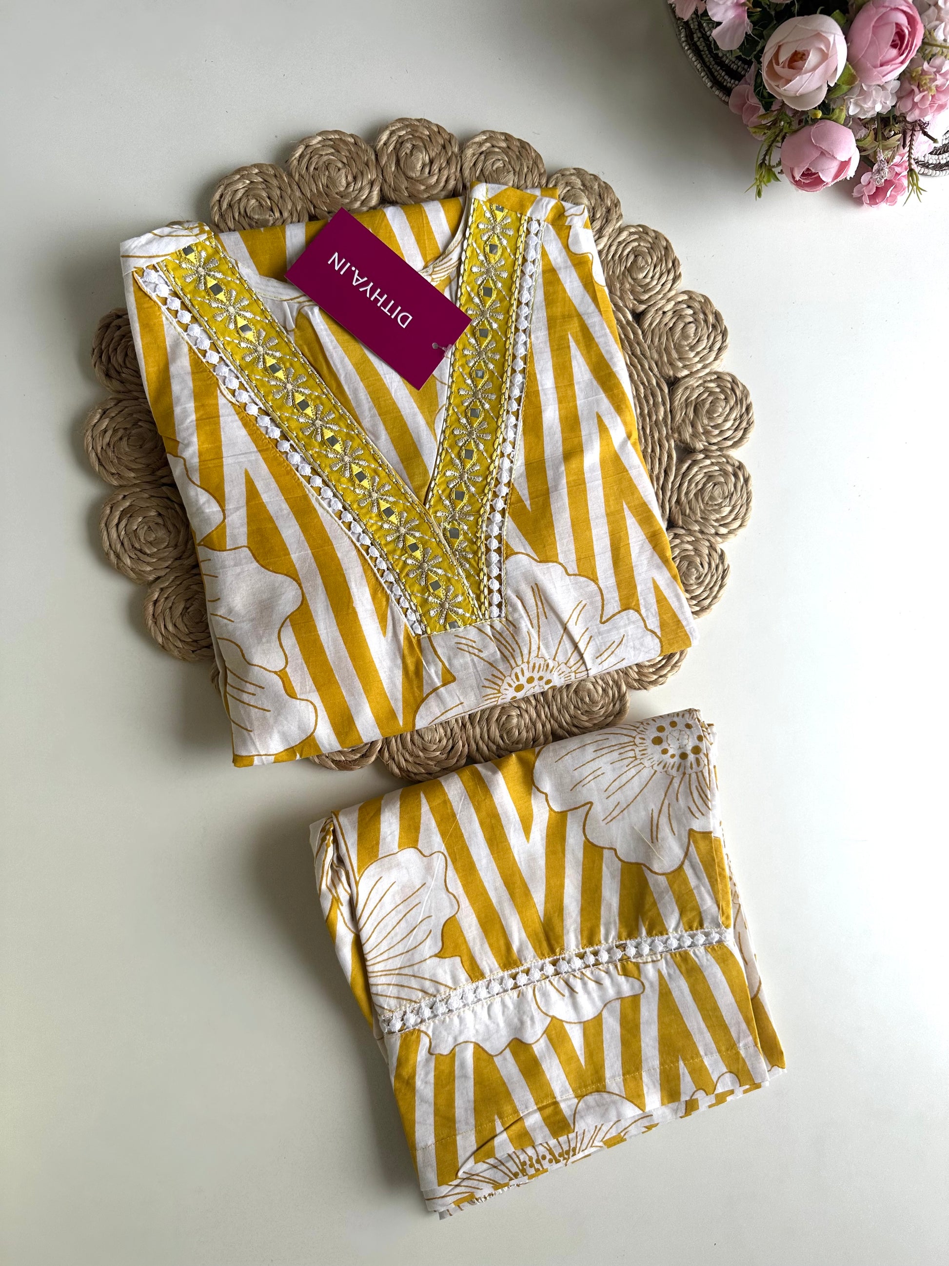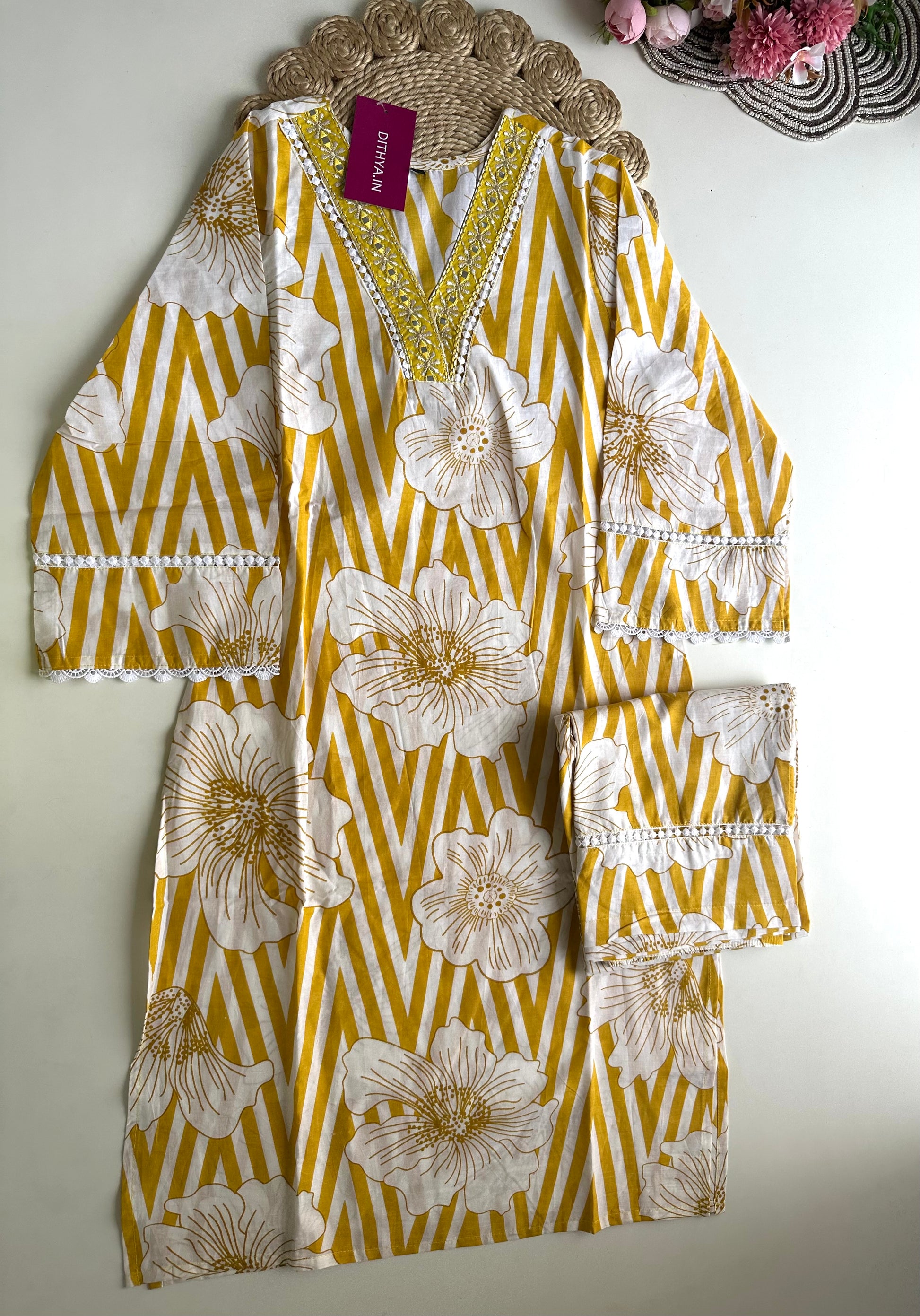 This cotton embroidered coord set boasts beautiful stitching and luxurious fabric for a comfortable and stylish look. With its high-quality cotton material and delicate embroidery, it offers both comfort and elegance. Perfect for any occasion, it's a must-have for any fashion-forward individual.