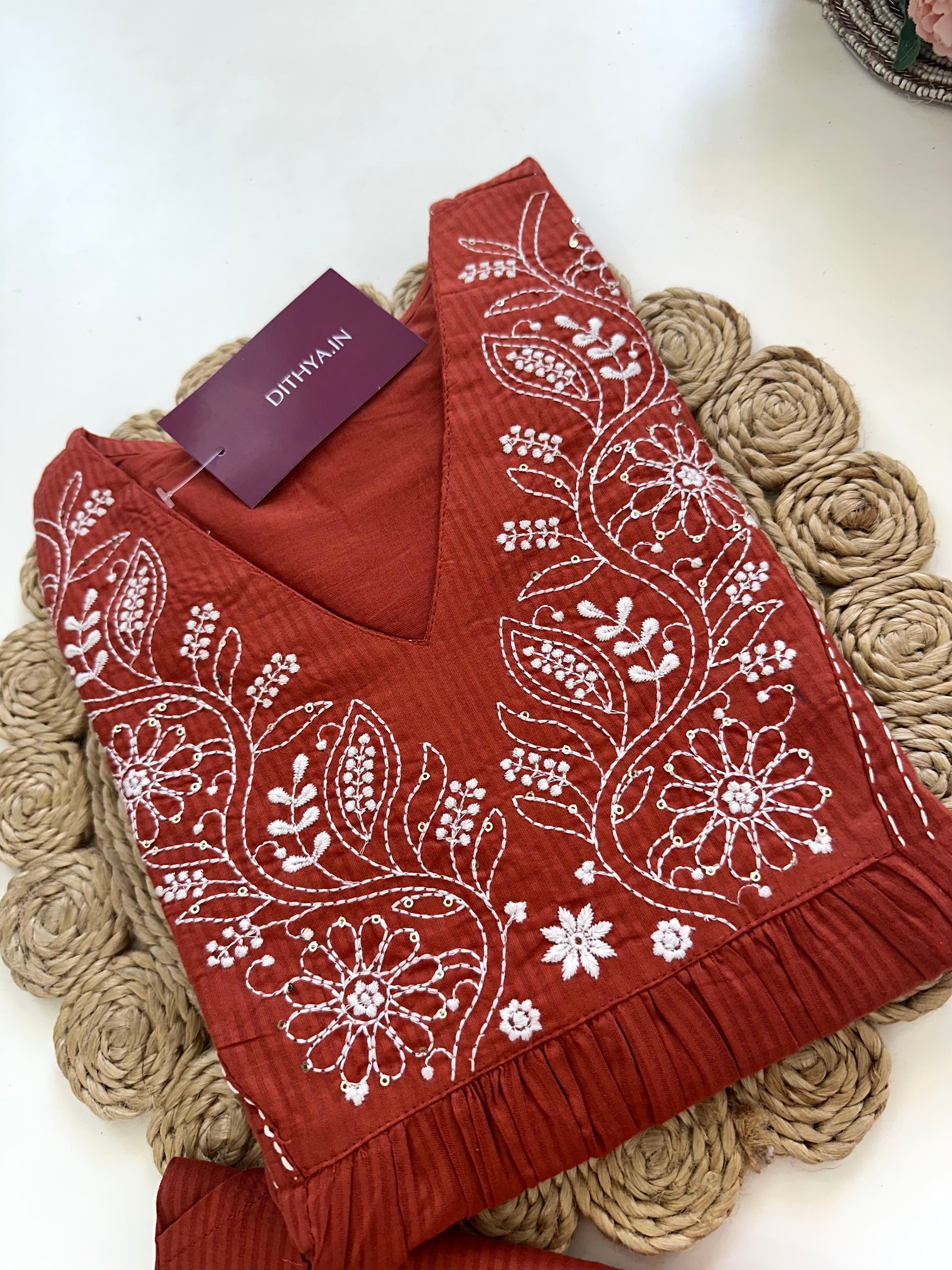 K042 - Cotton embroidered Kurti with pants in 2 colours