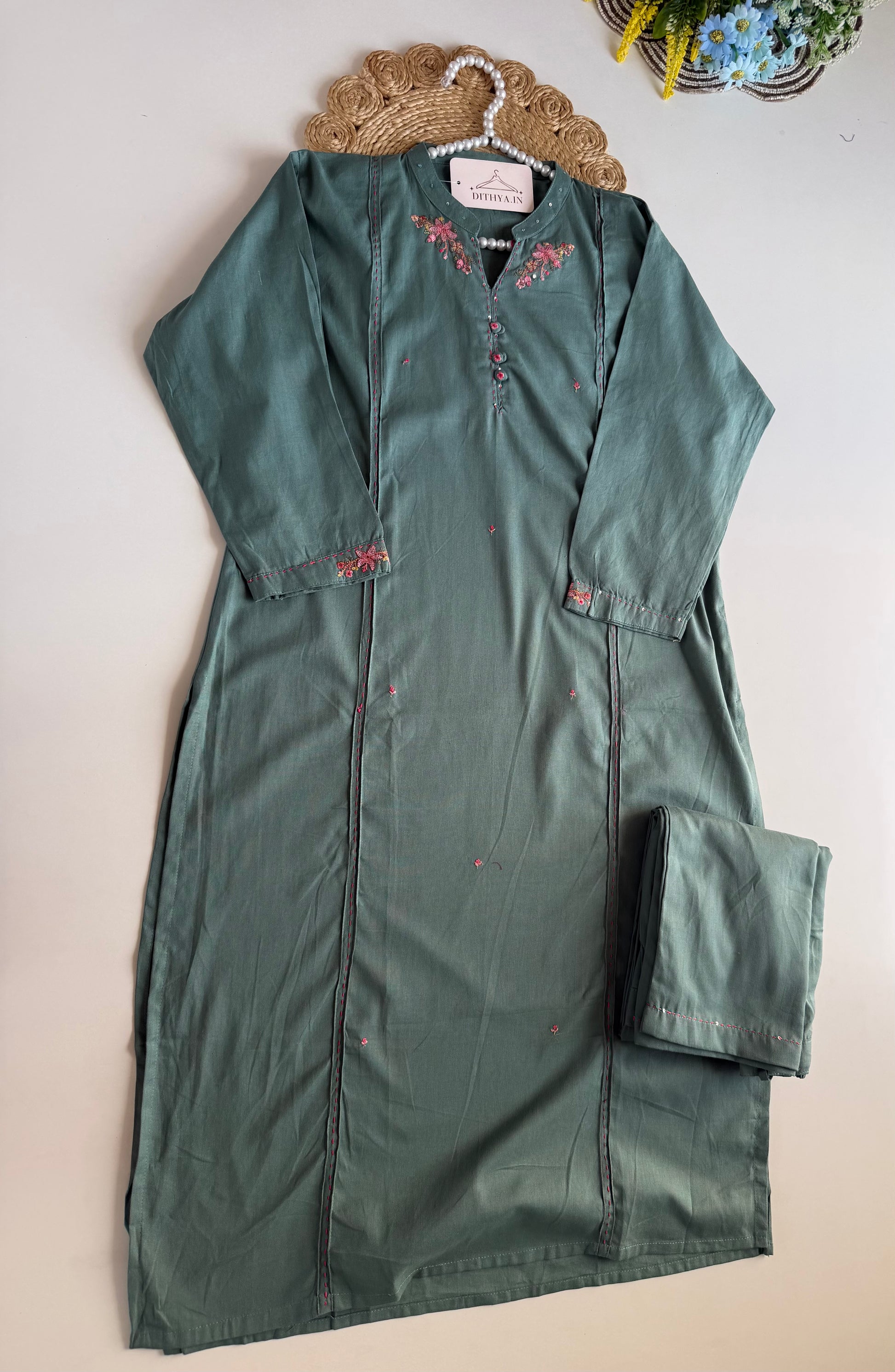 Elevate your everyday wardrobe with this sophisticated cotton embroidered straight kurti paired with matching pants. Crafted from breathable cotton fabric, this ensemble features intricate embroidery detailing that adds an elegant touch to the classic straight silhouette. The comfortable fit makes it ideal for casual outings, family gatherings, or relaxed workdays. The coordinated pants ensure a polished, put-together look without compromising on comfort. Perfect for those who appreciate traditional aesthetics with contemporary ease, this kurti set combines timeless design with practical wearability for the modern Indian woman.