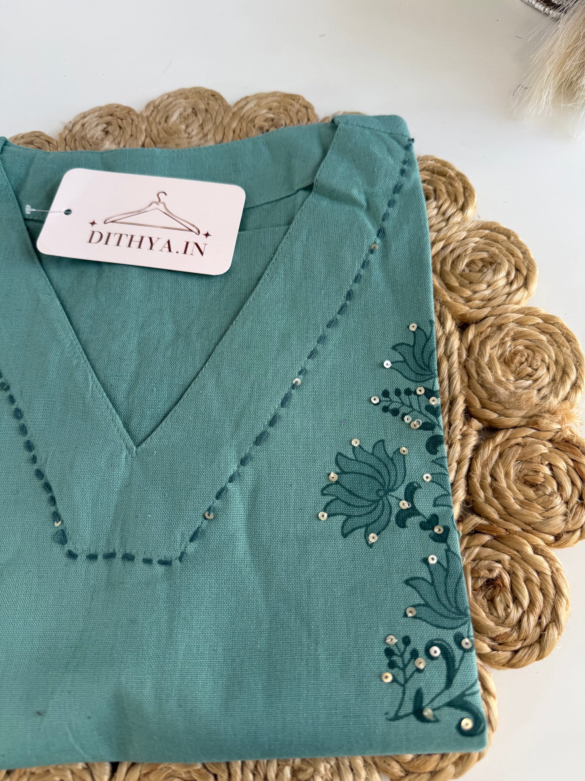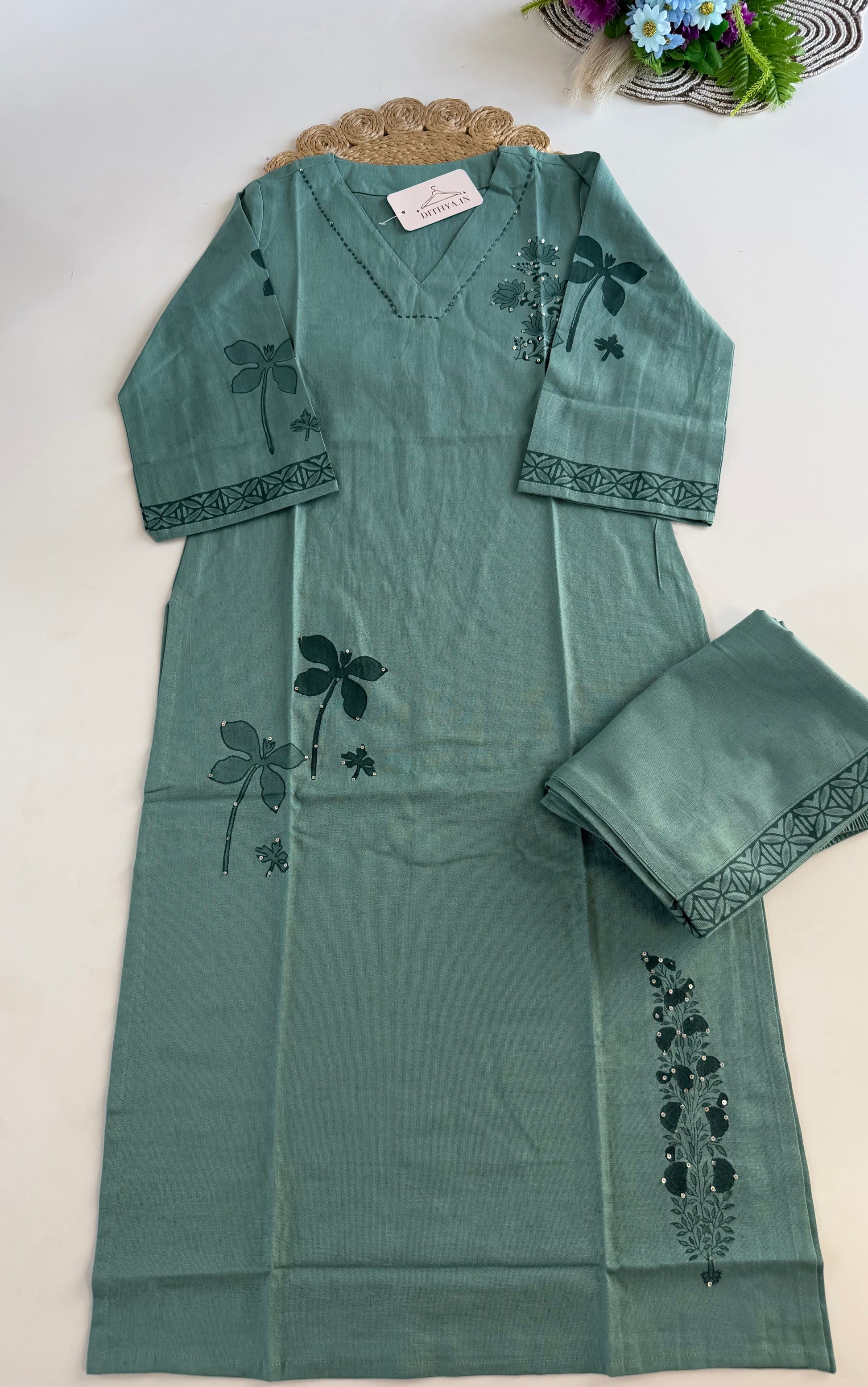 K597 - Cotton embroidered straight Kurti with pants and dupatta