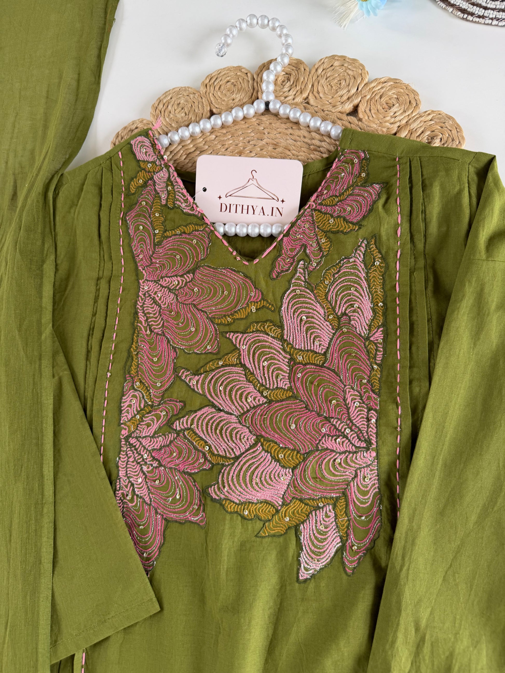 K497 - Cotton embroidered straight Kurti with pants and dupatta