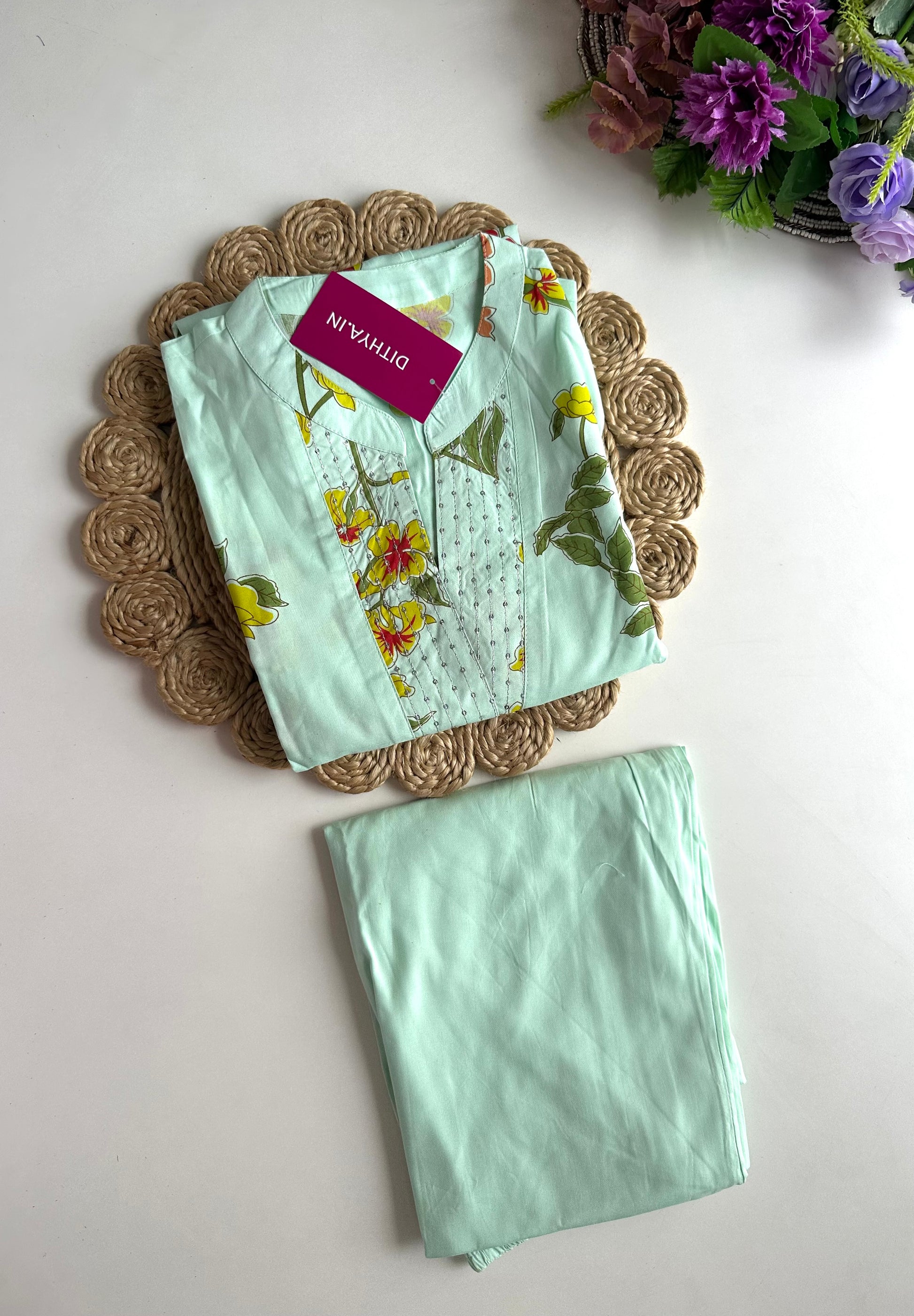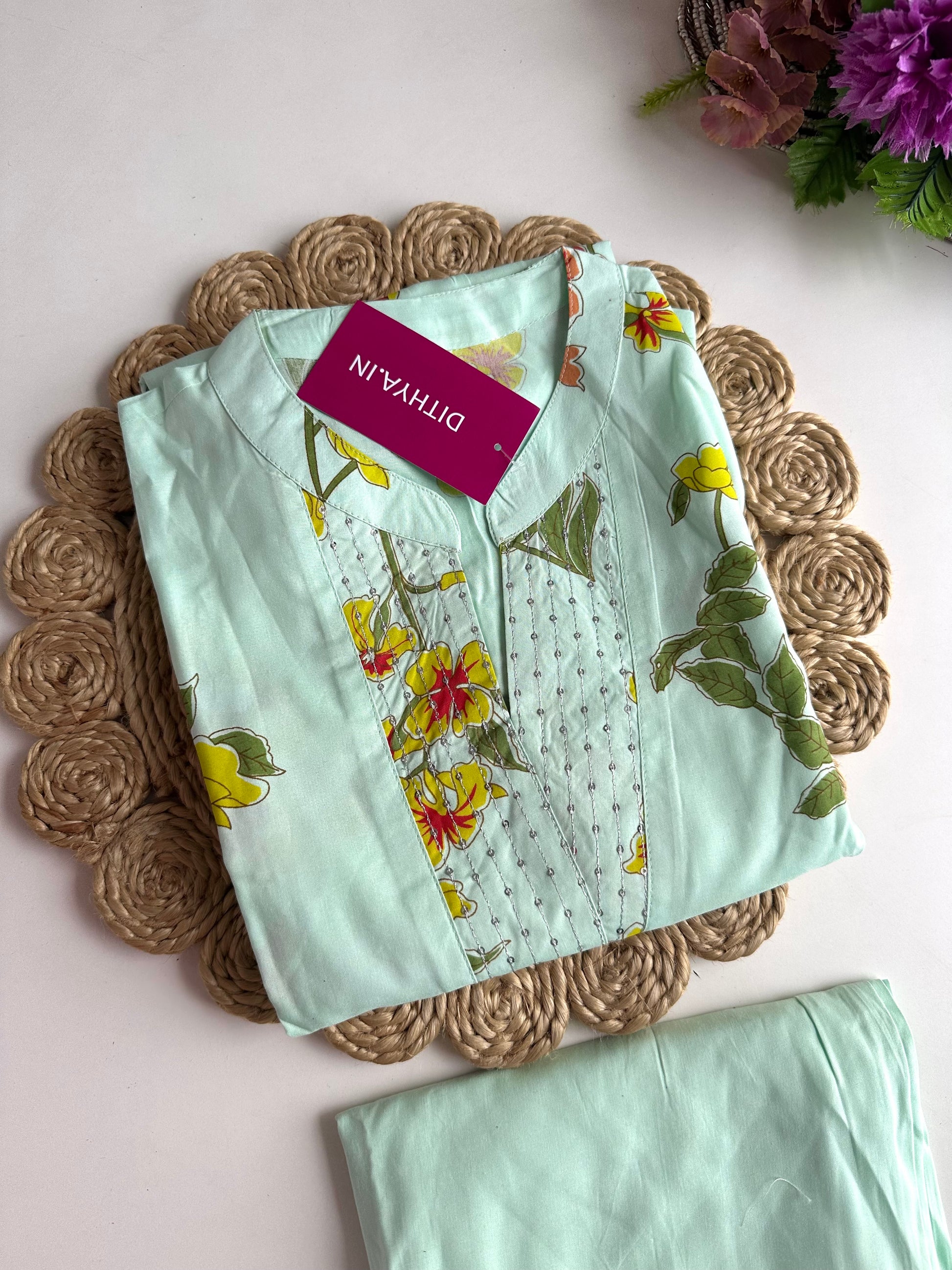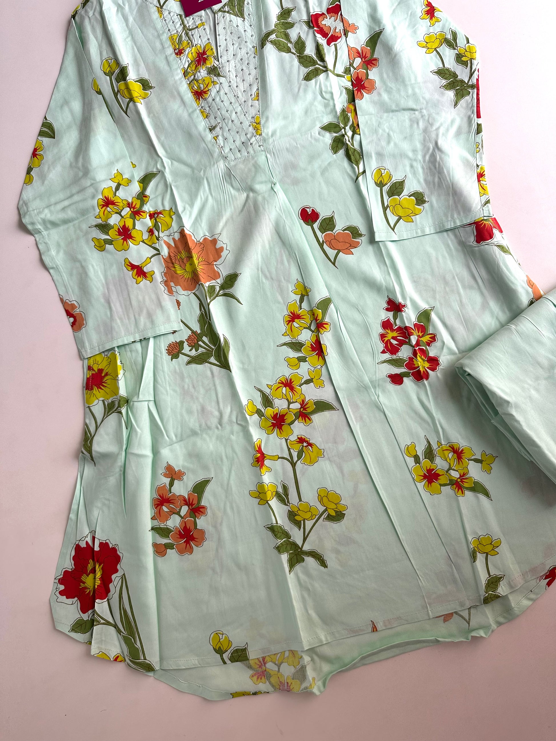 This cotton floral Aline Kurti with pants features a comfortable and breathable fabric, perfect for everyday wear. The Aline silhouette and floral design add a touch of elegance and style. Pair it with the included pants to create a complete and versatile outfit.