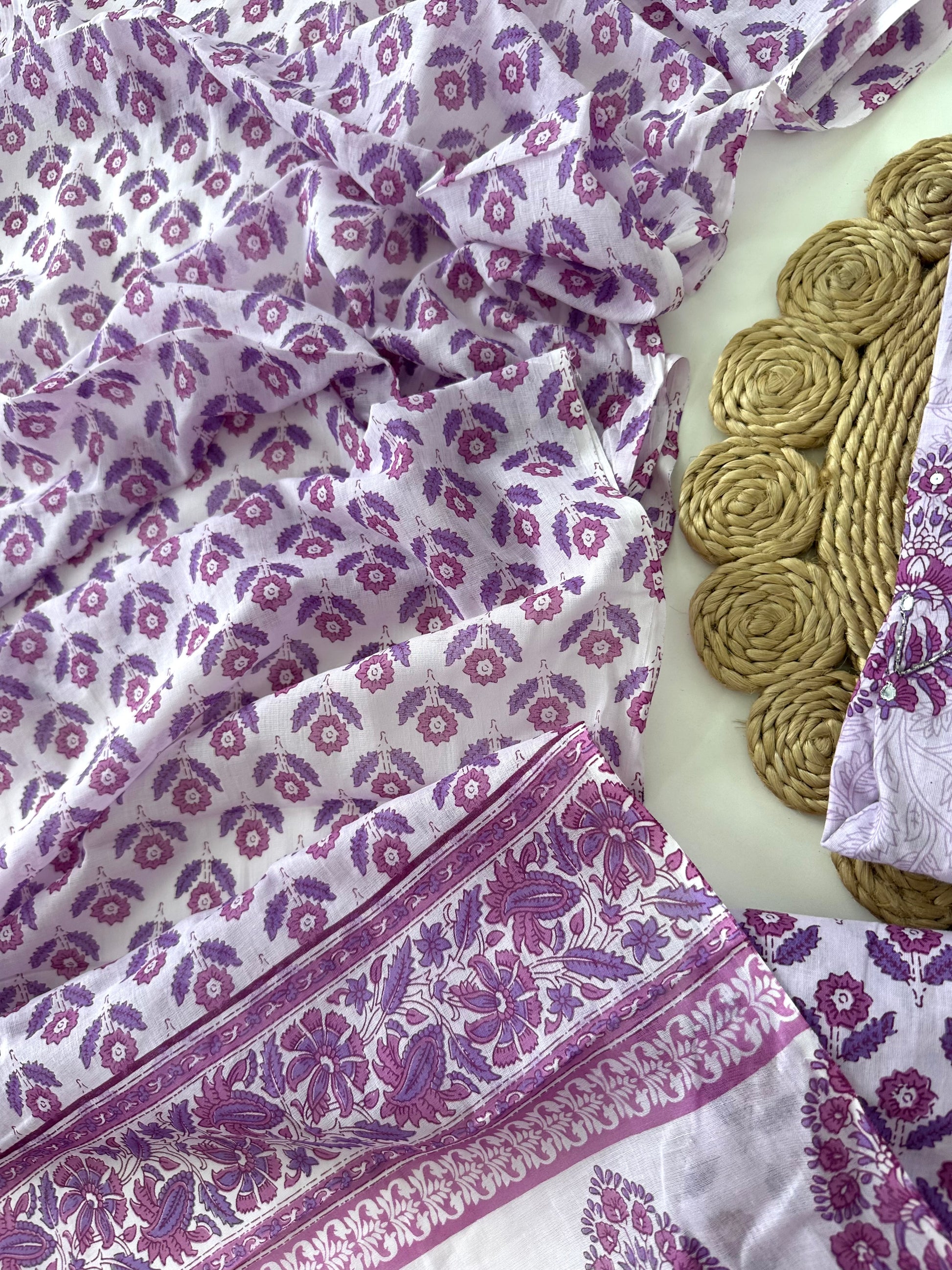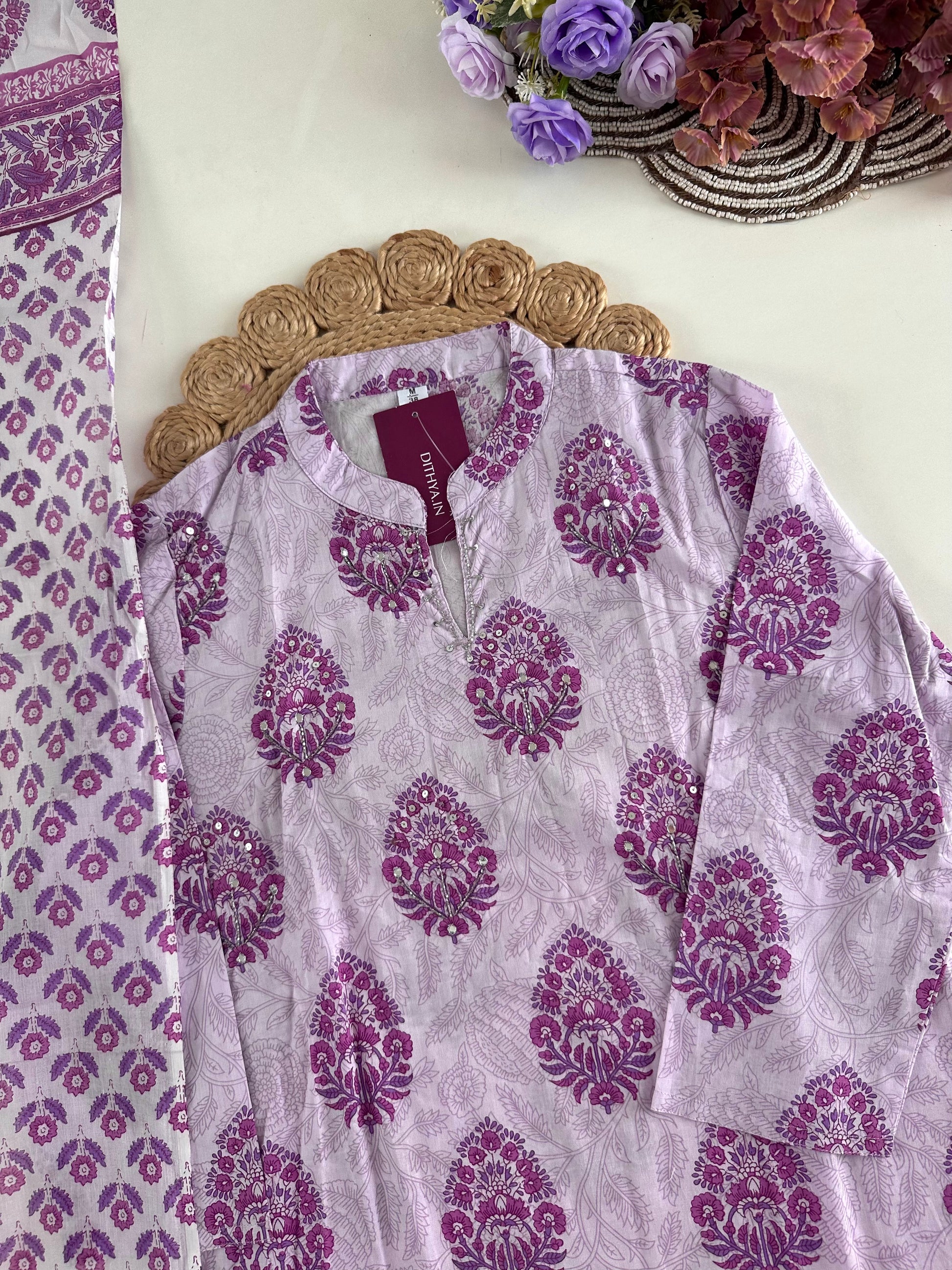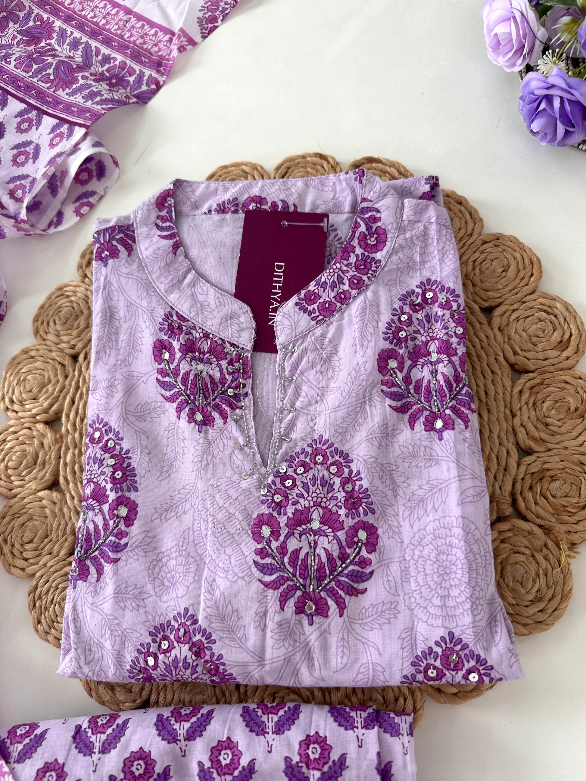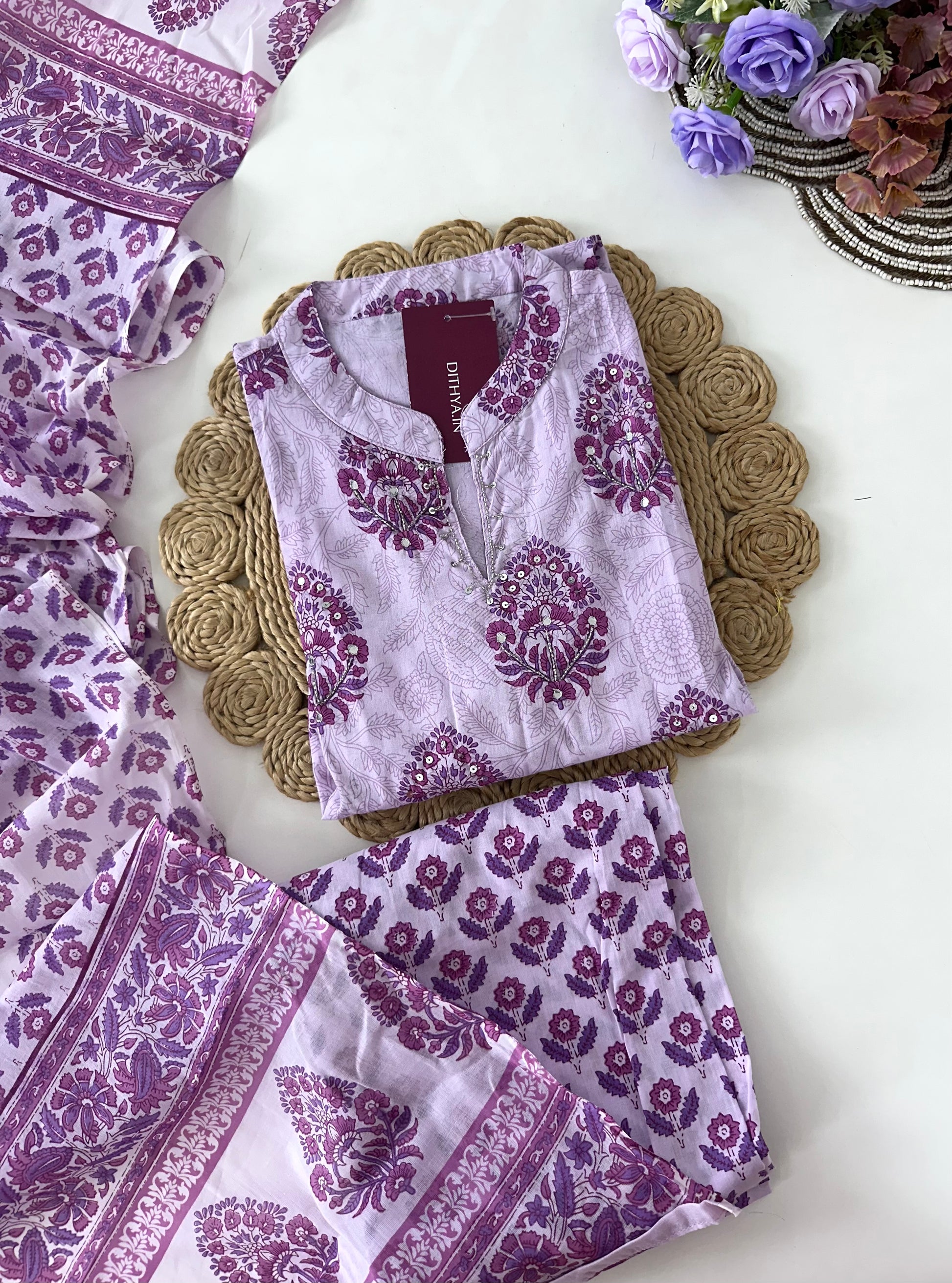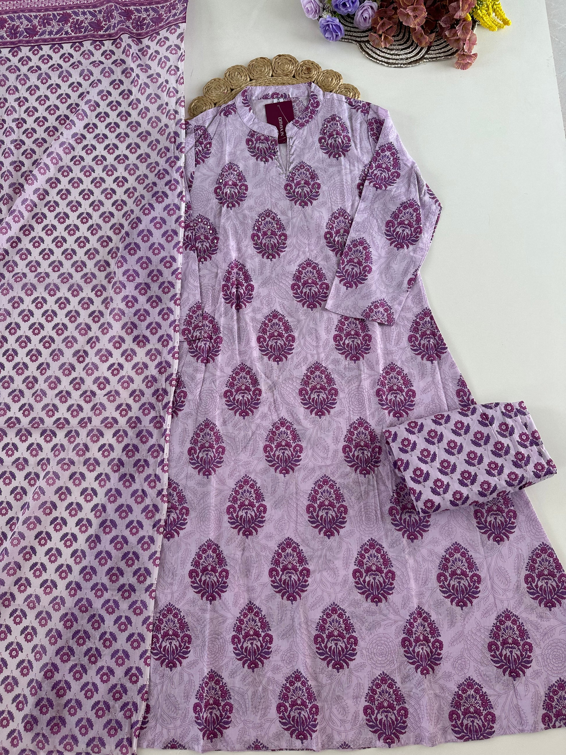 K027 - Cotton floral Aline kurti with pants and dupatta