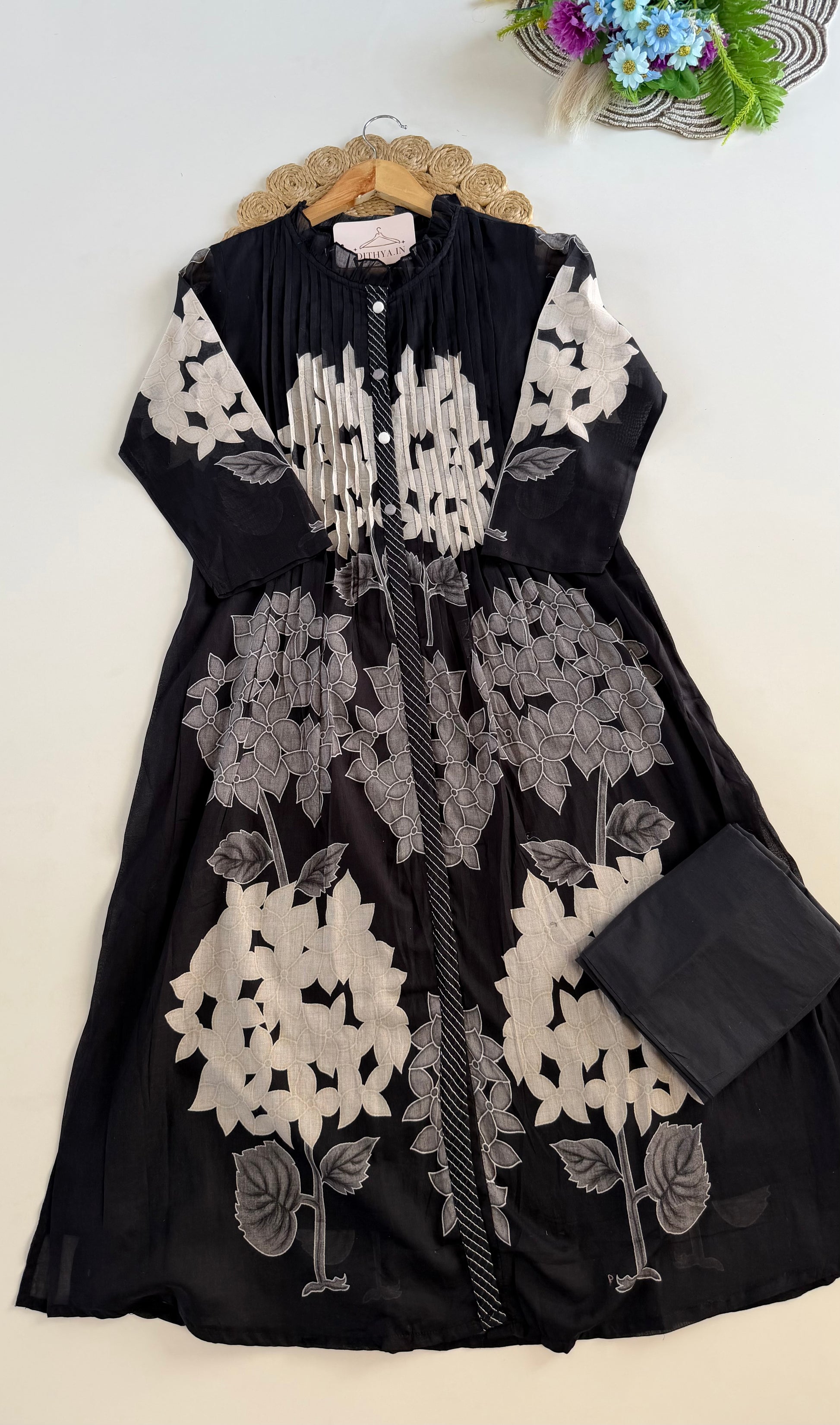 K600 - Cotton floral Aline Kurti with pants and dupatta