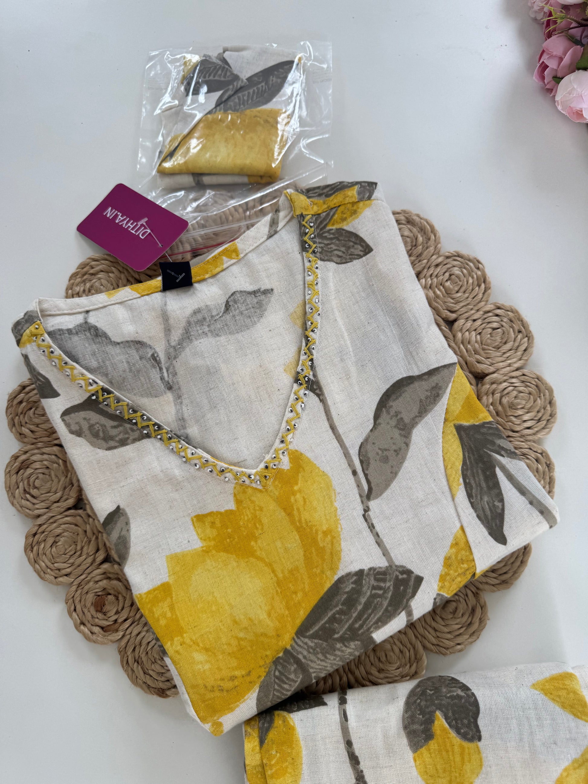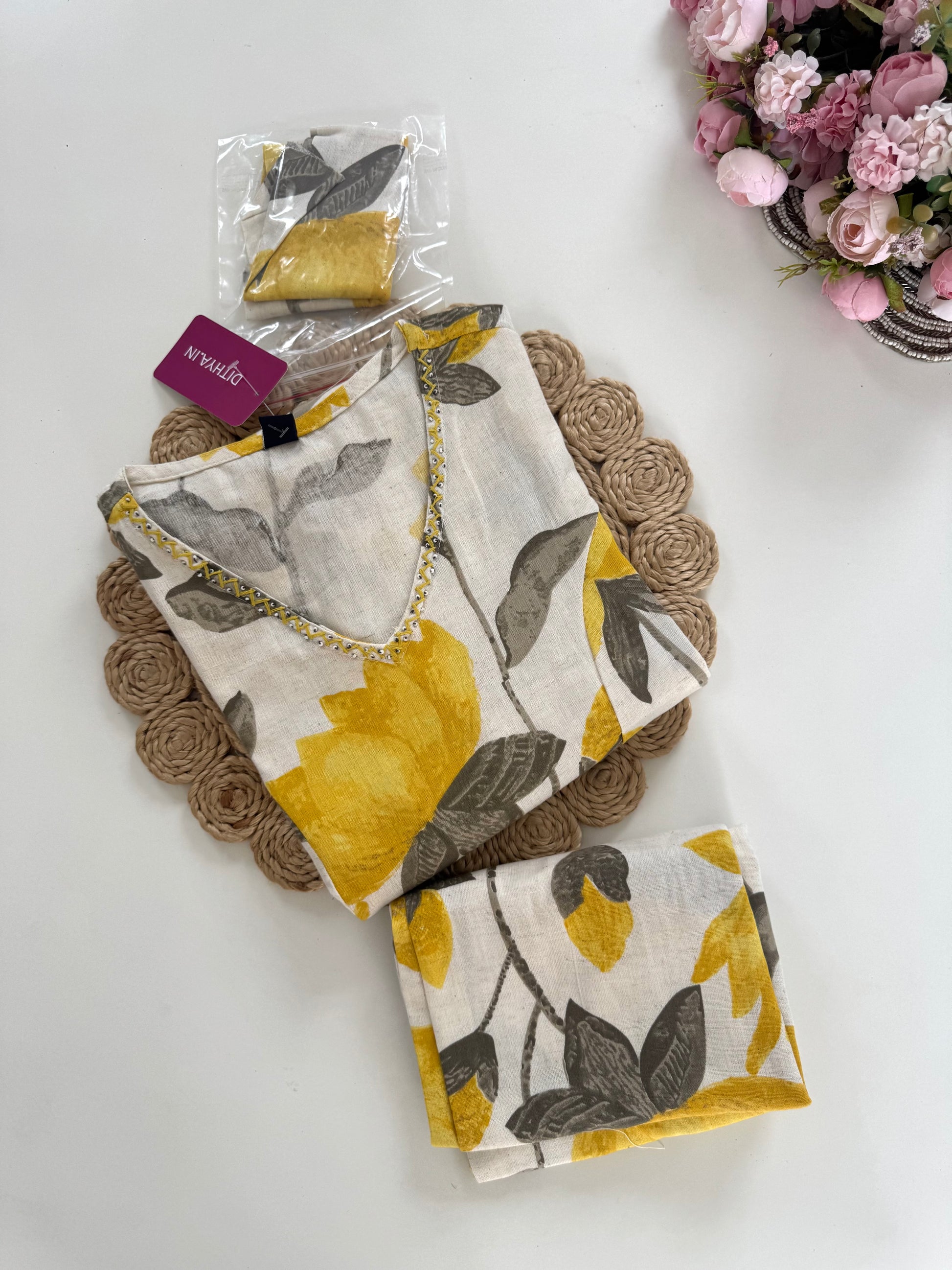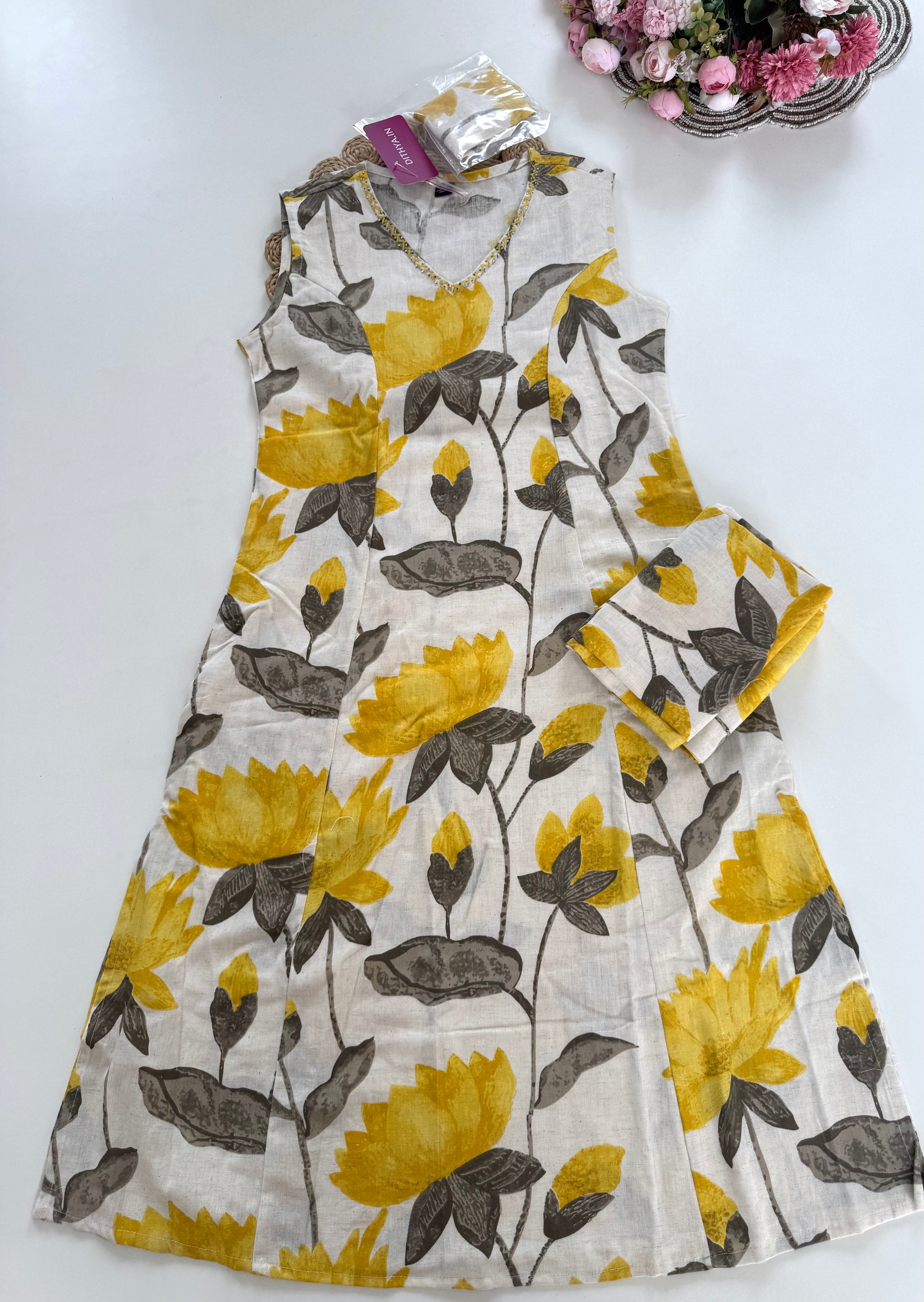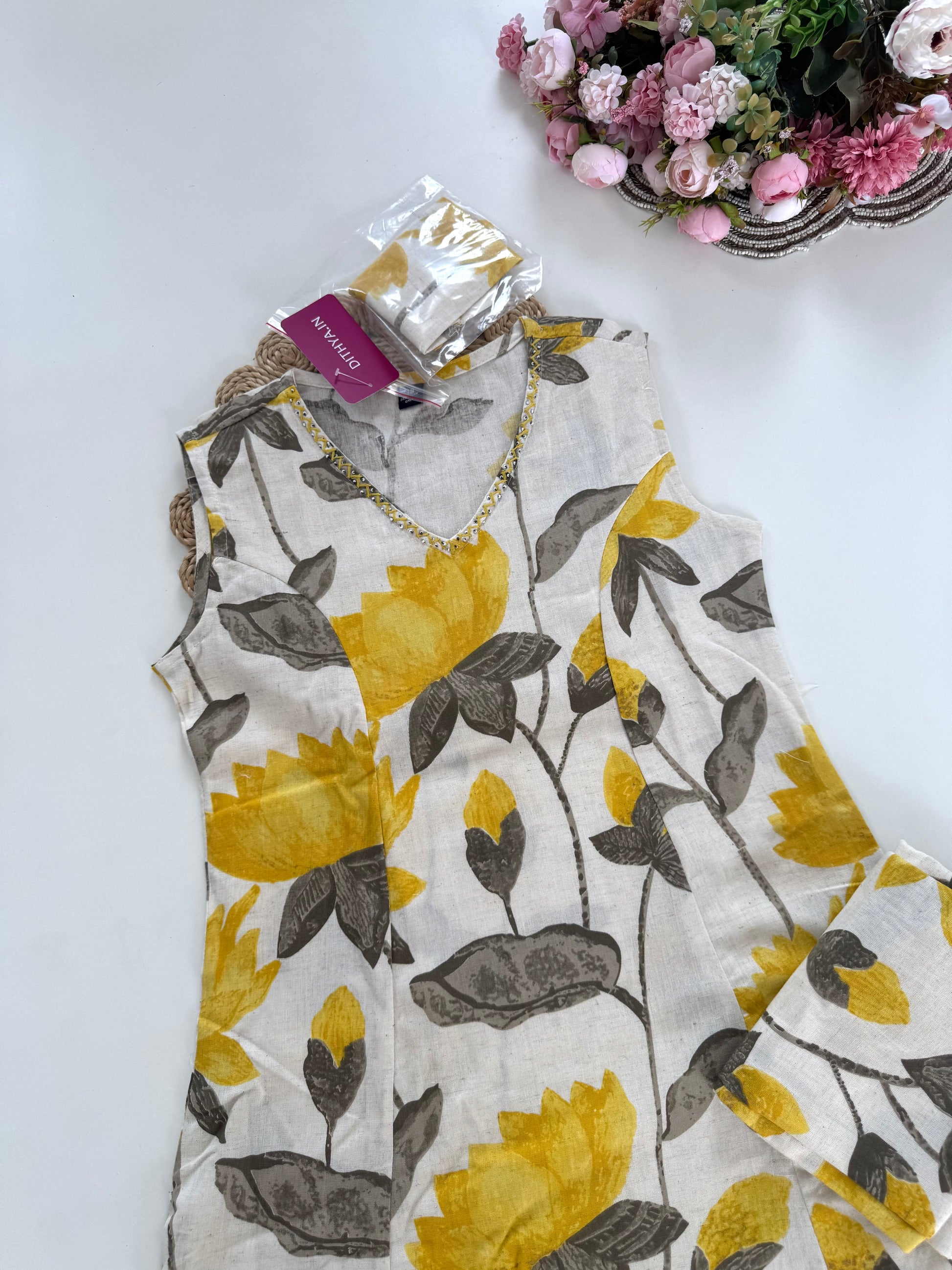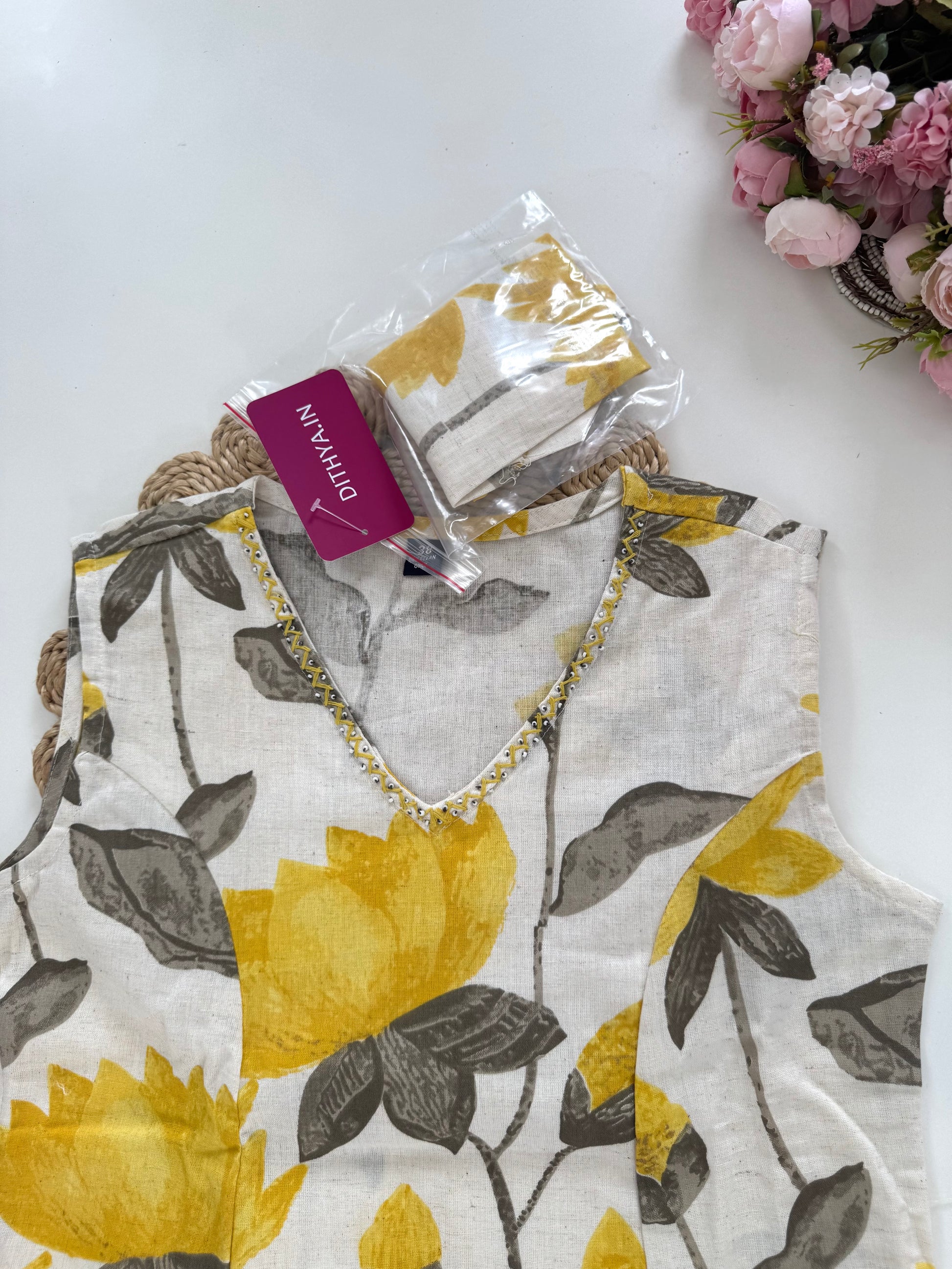 K004 - Cotton floral sleeveless Aline Kurti with pants