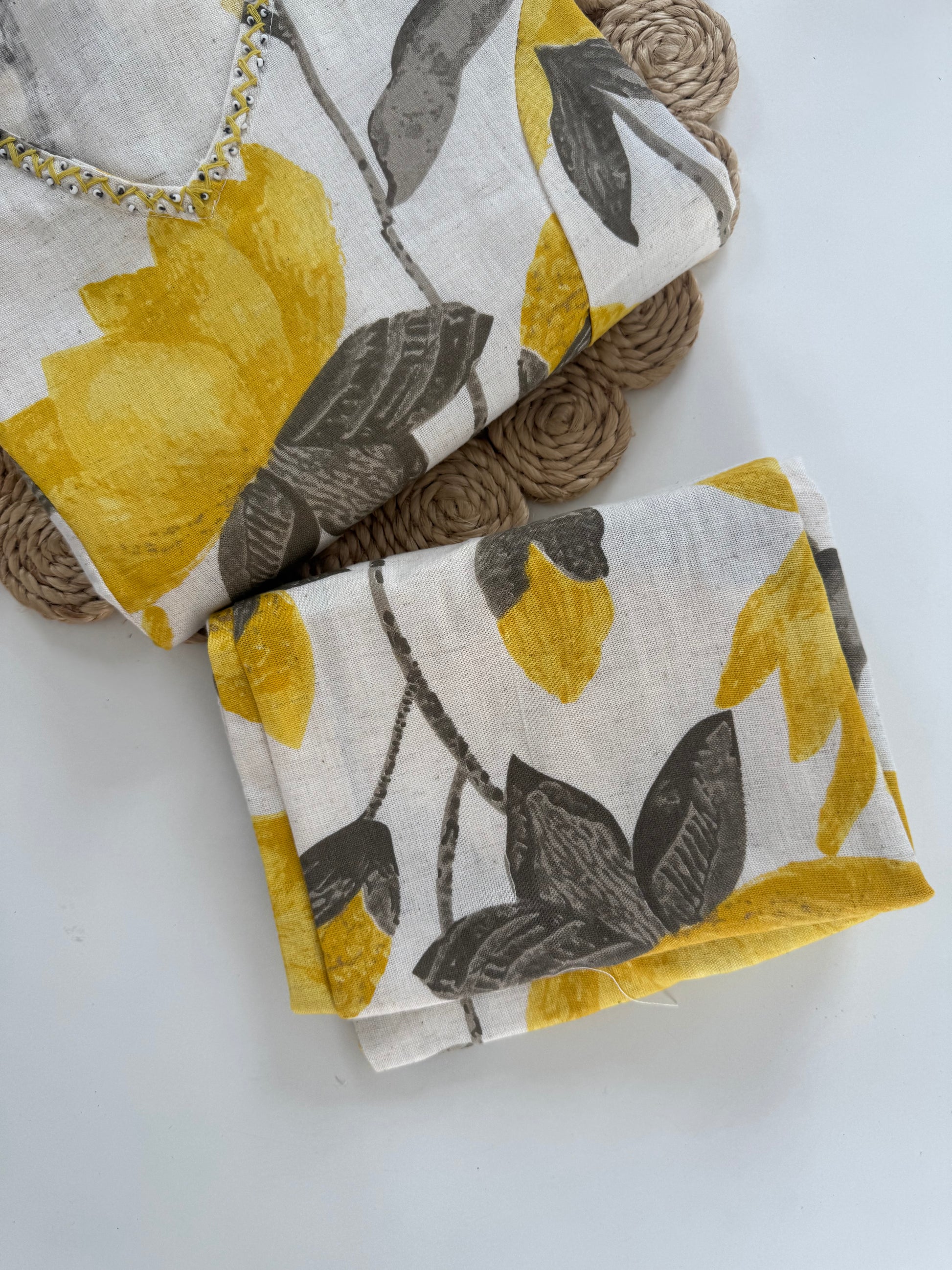 This Aline Kurti features a cotton floral design and a sleeveless design, making it lightweight and perfect for warm weather. The accompanying pants complete the look for a stylish and comfortable outfit. Made from high-quality cotton, this Kurti is also breathable and durable.