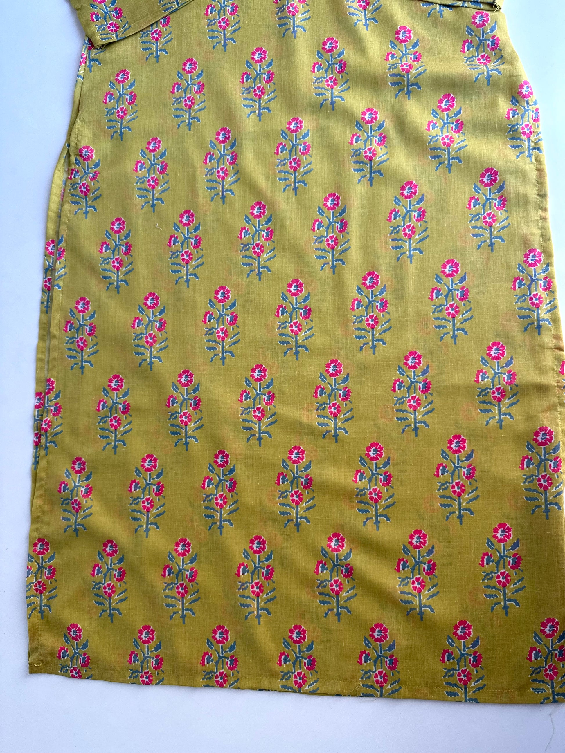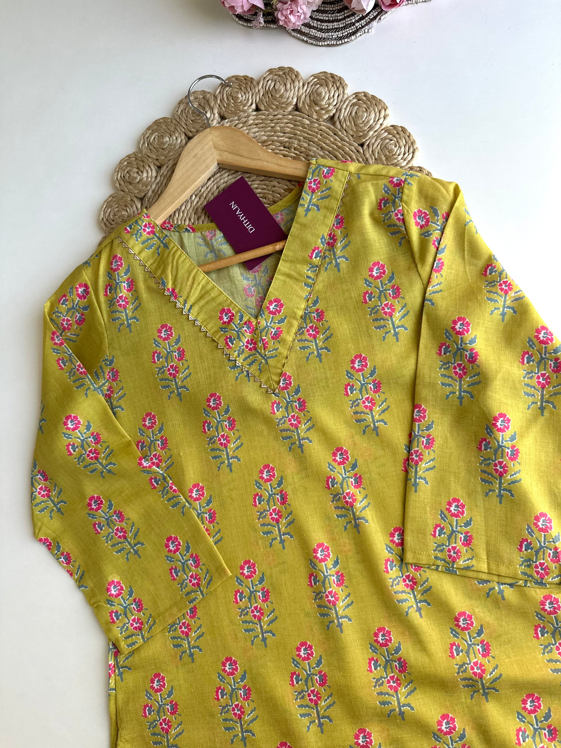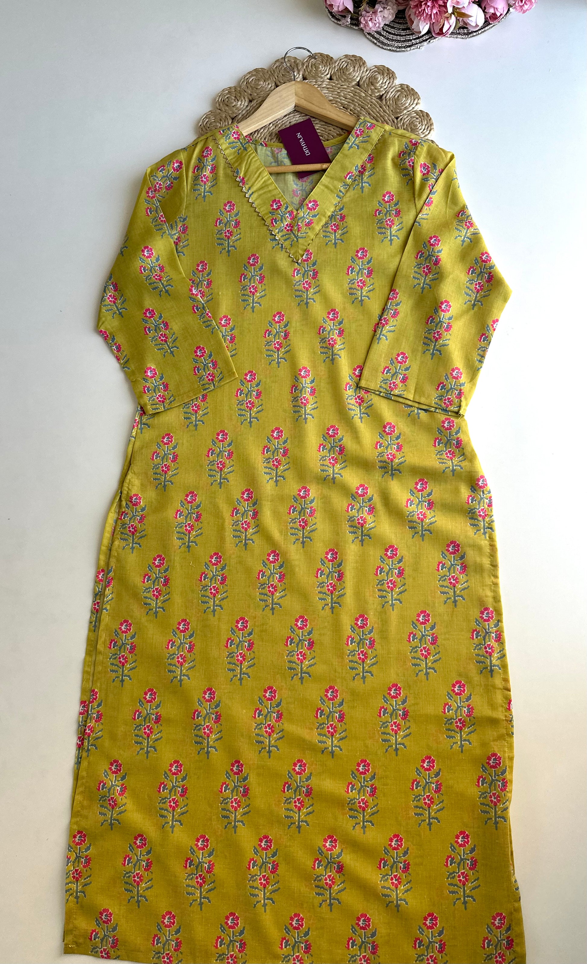 This Cotton floral straight Kurti is made from high-quality cotton, ensuring comfortable wear and durability. The beautiful floral design adds a touch of elegance and style to any outfit. With its straight cut, this Kurti is versatile and can be dressed up or down for any occasion.