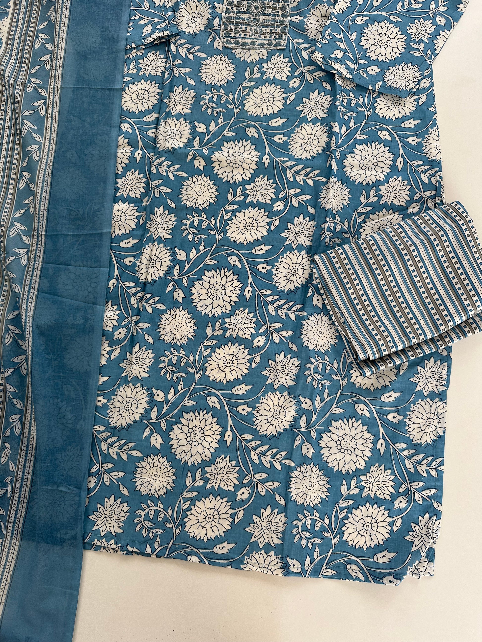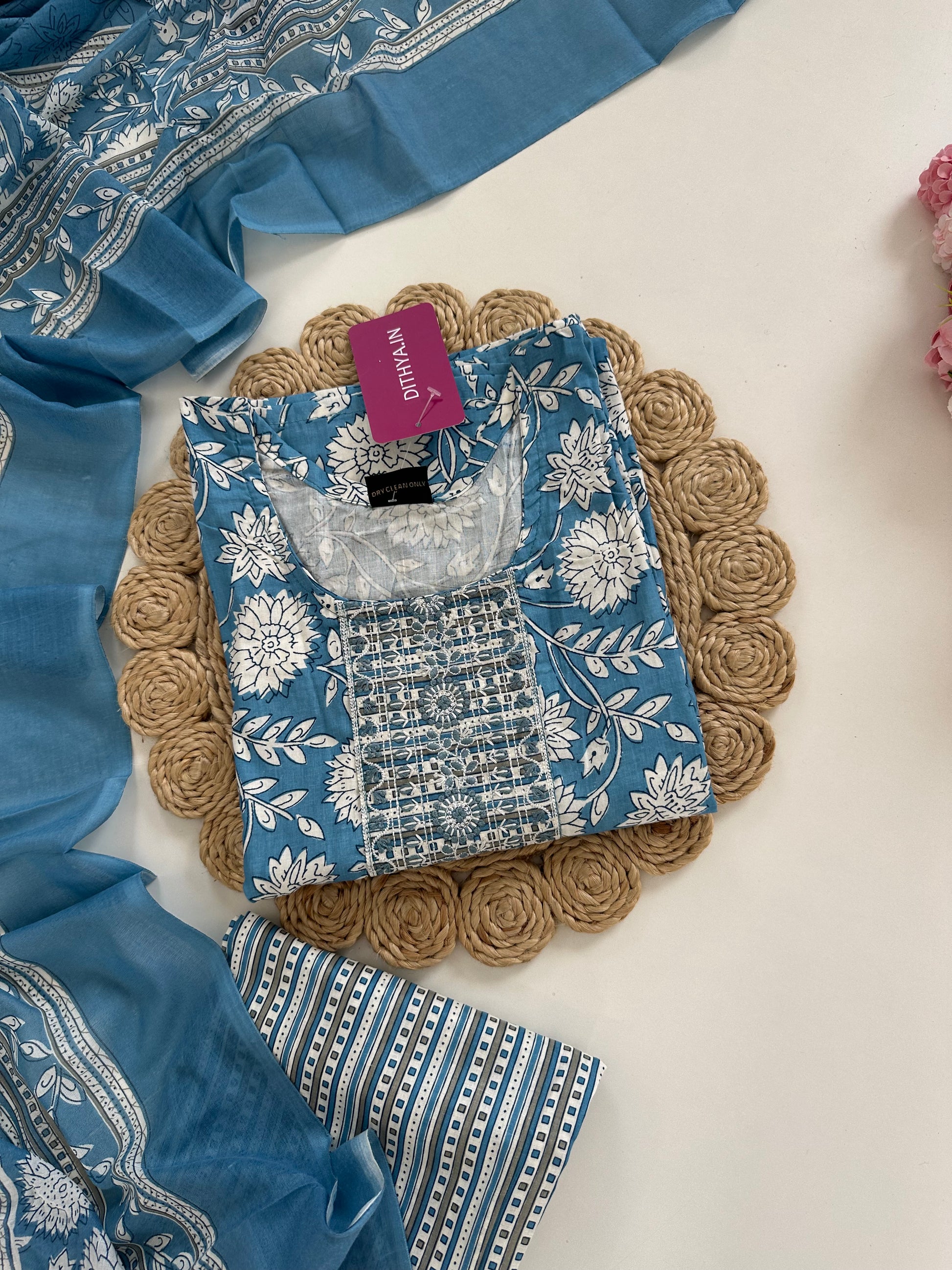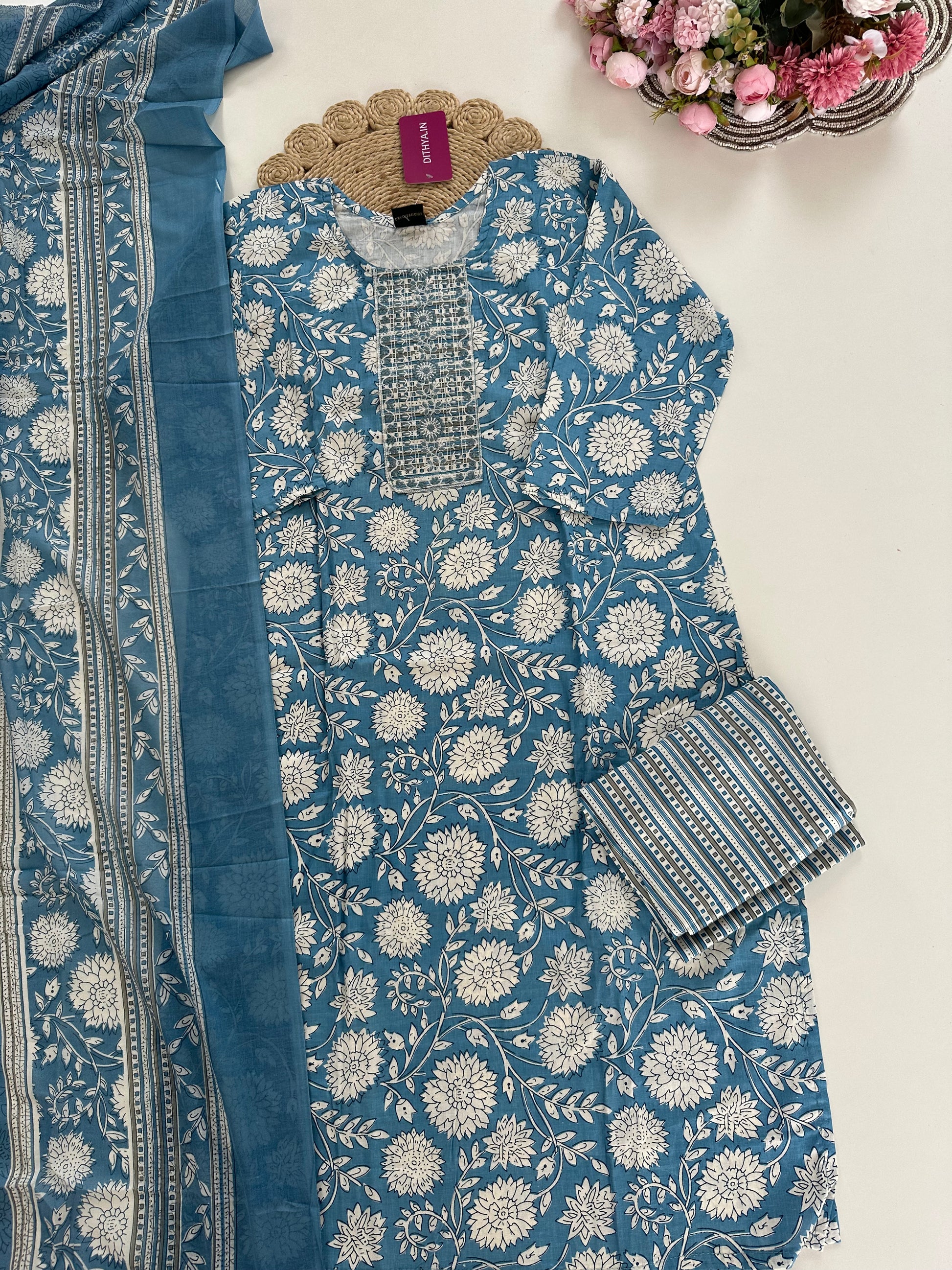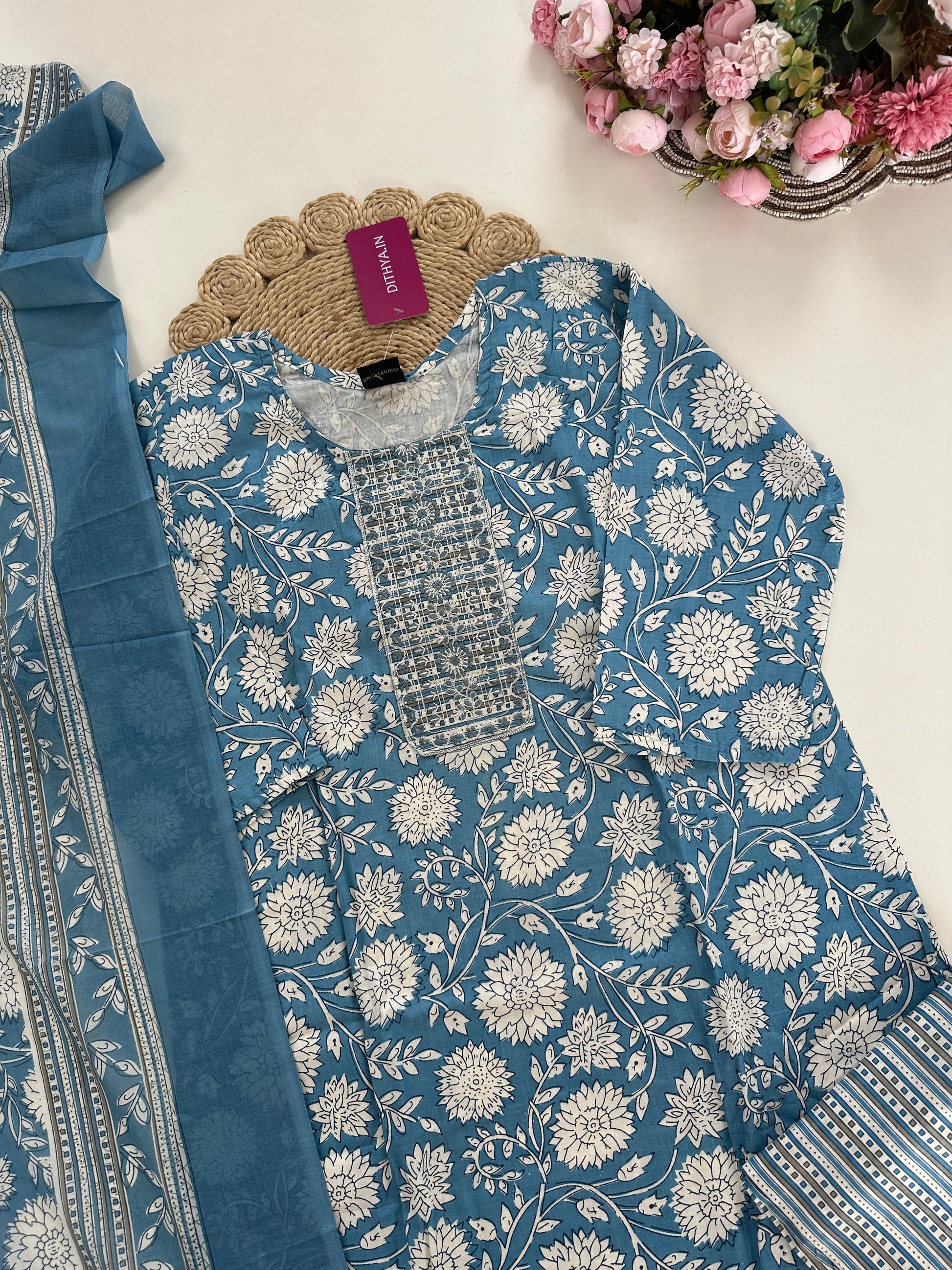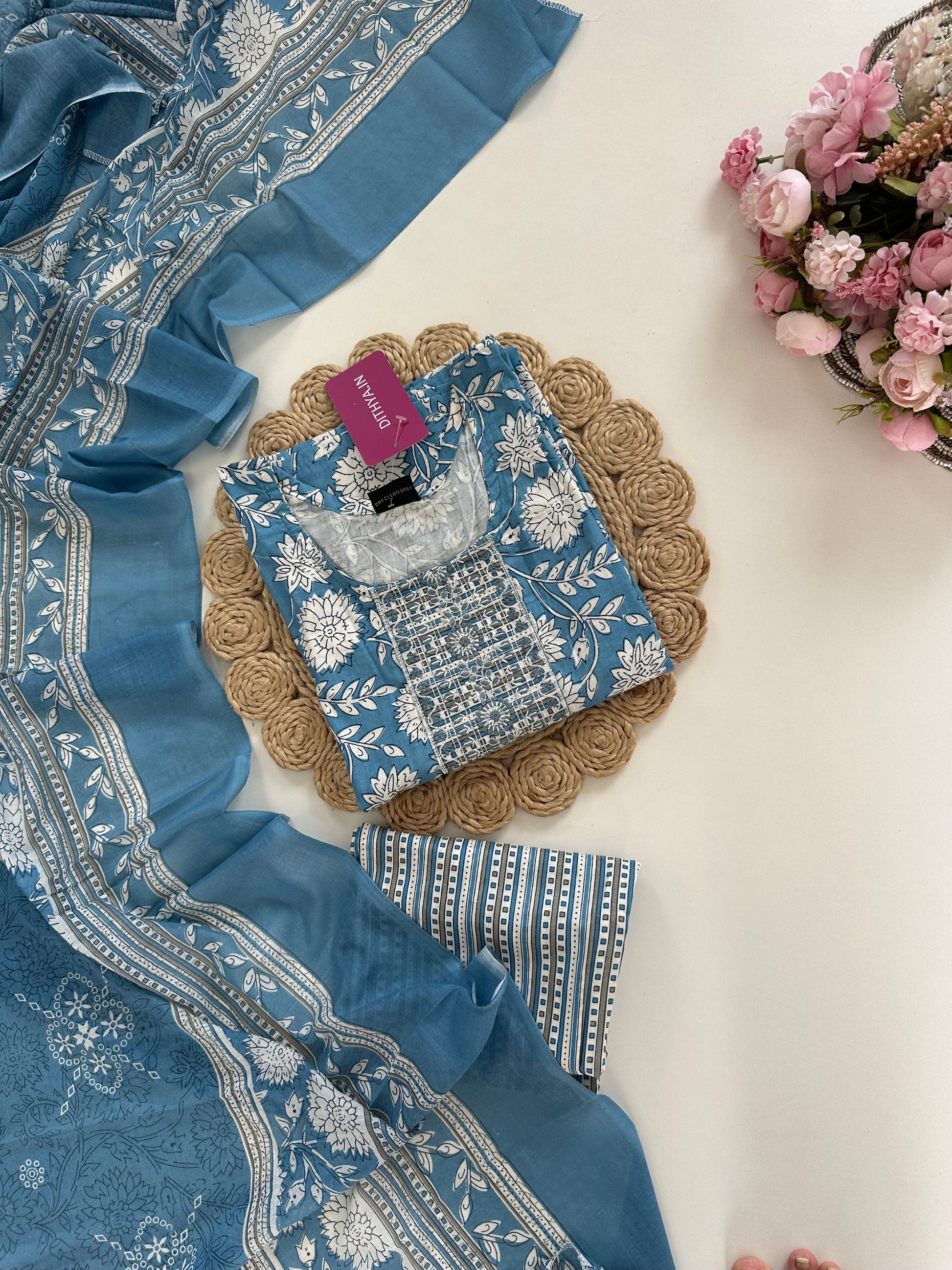 K352 - Cotton floral straight Kurti with pants and dupatta