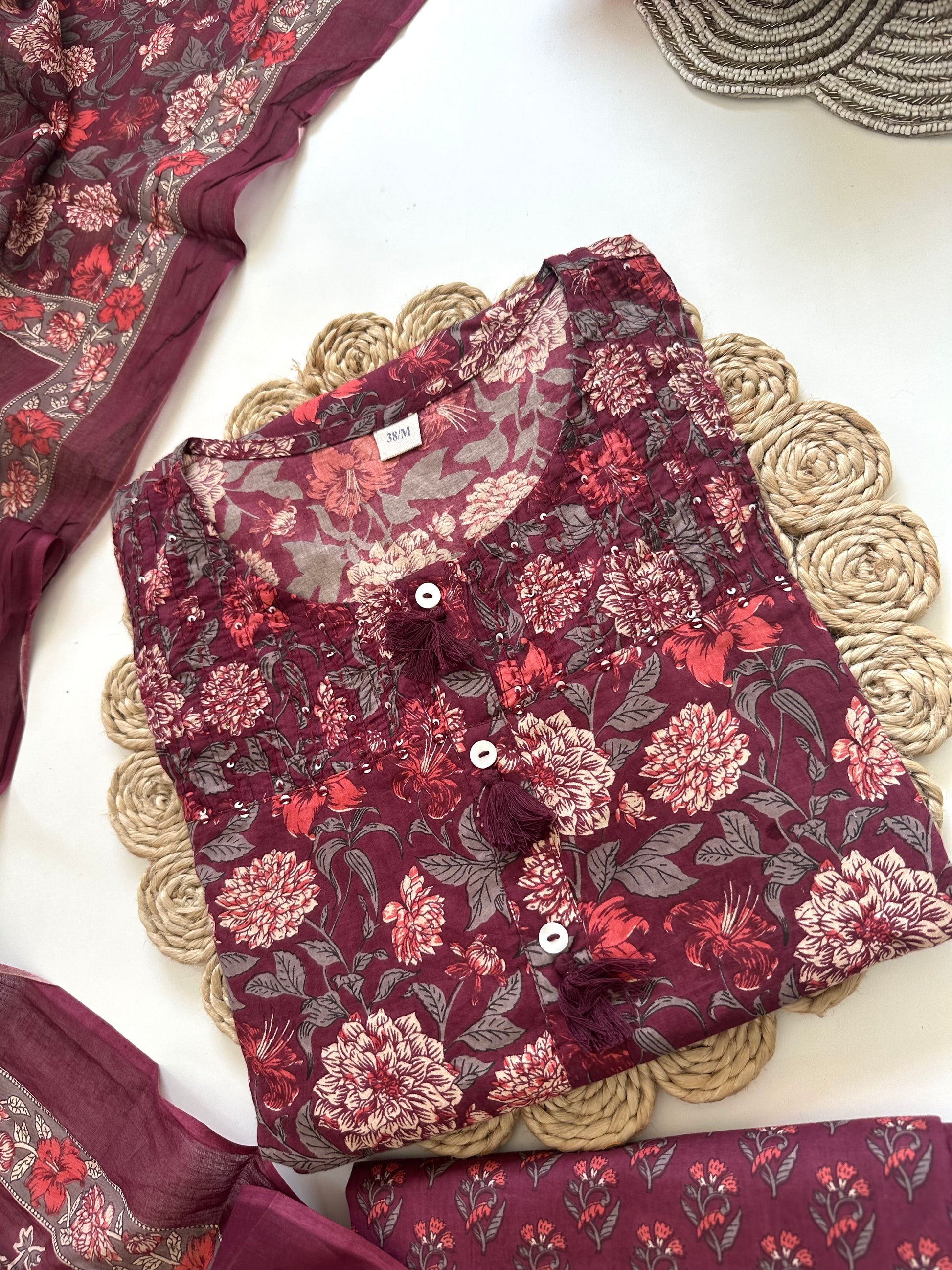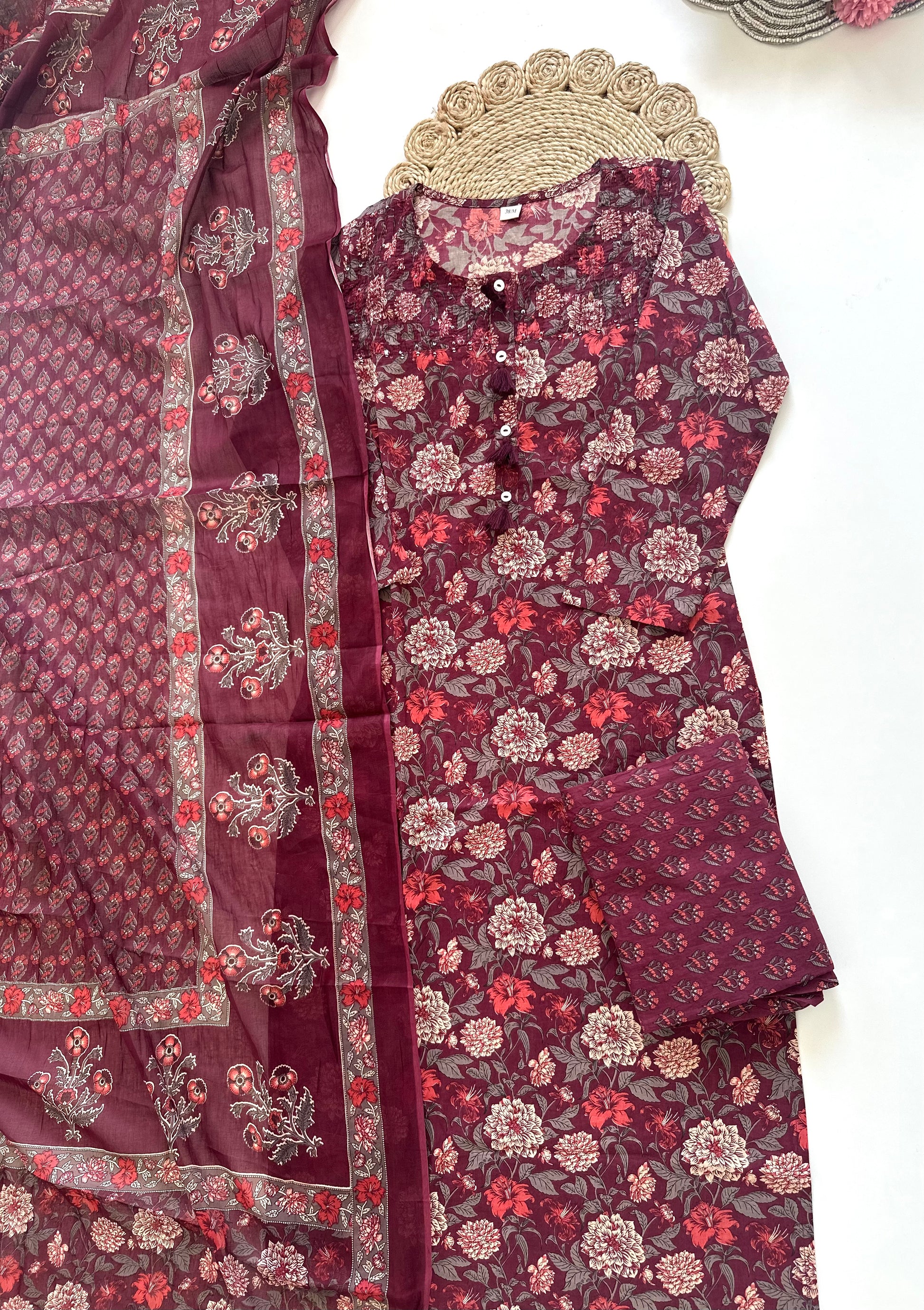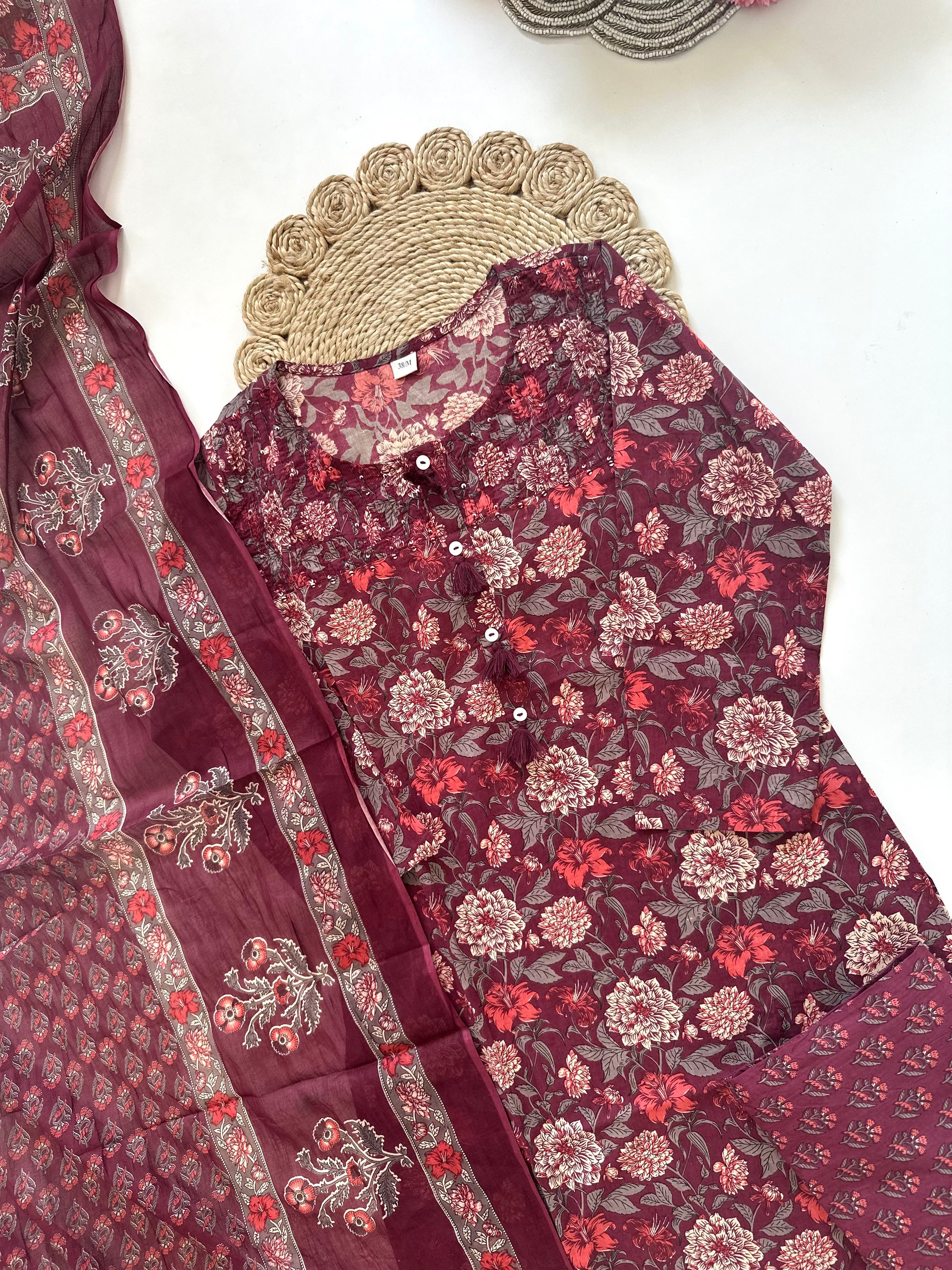K367 - Cotton floral straight kurti with pants and dupatta .