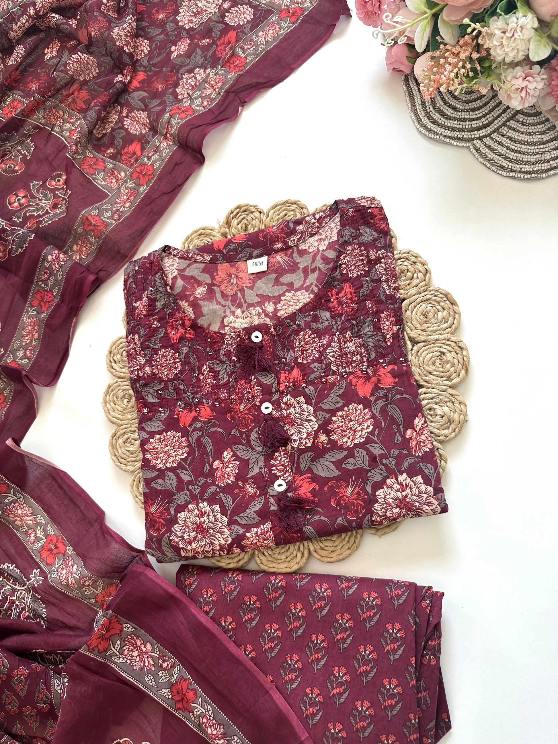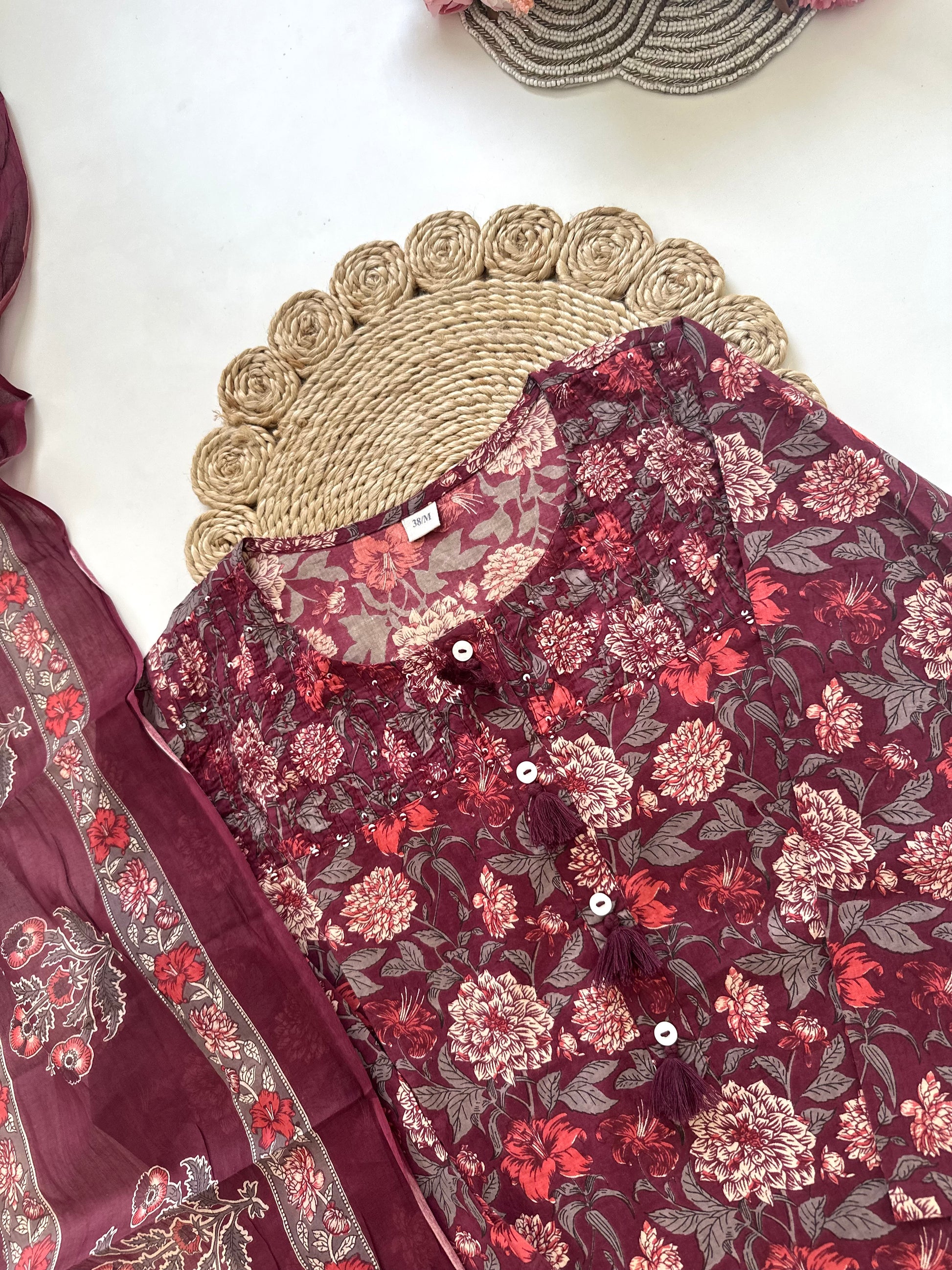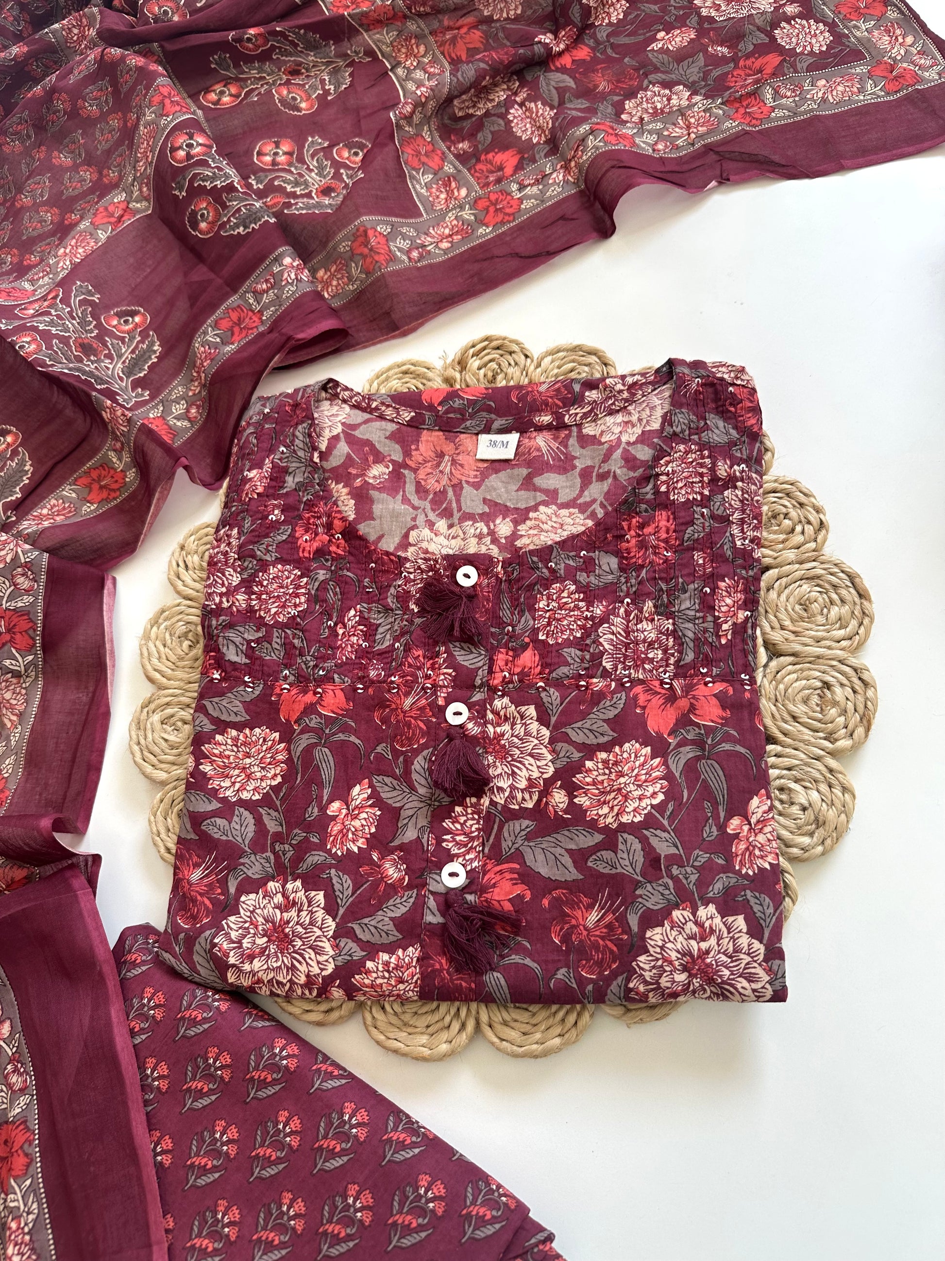 K367 - Cotton floral straight kurti with pants and dupatta .