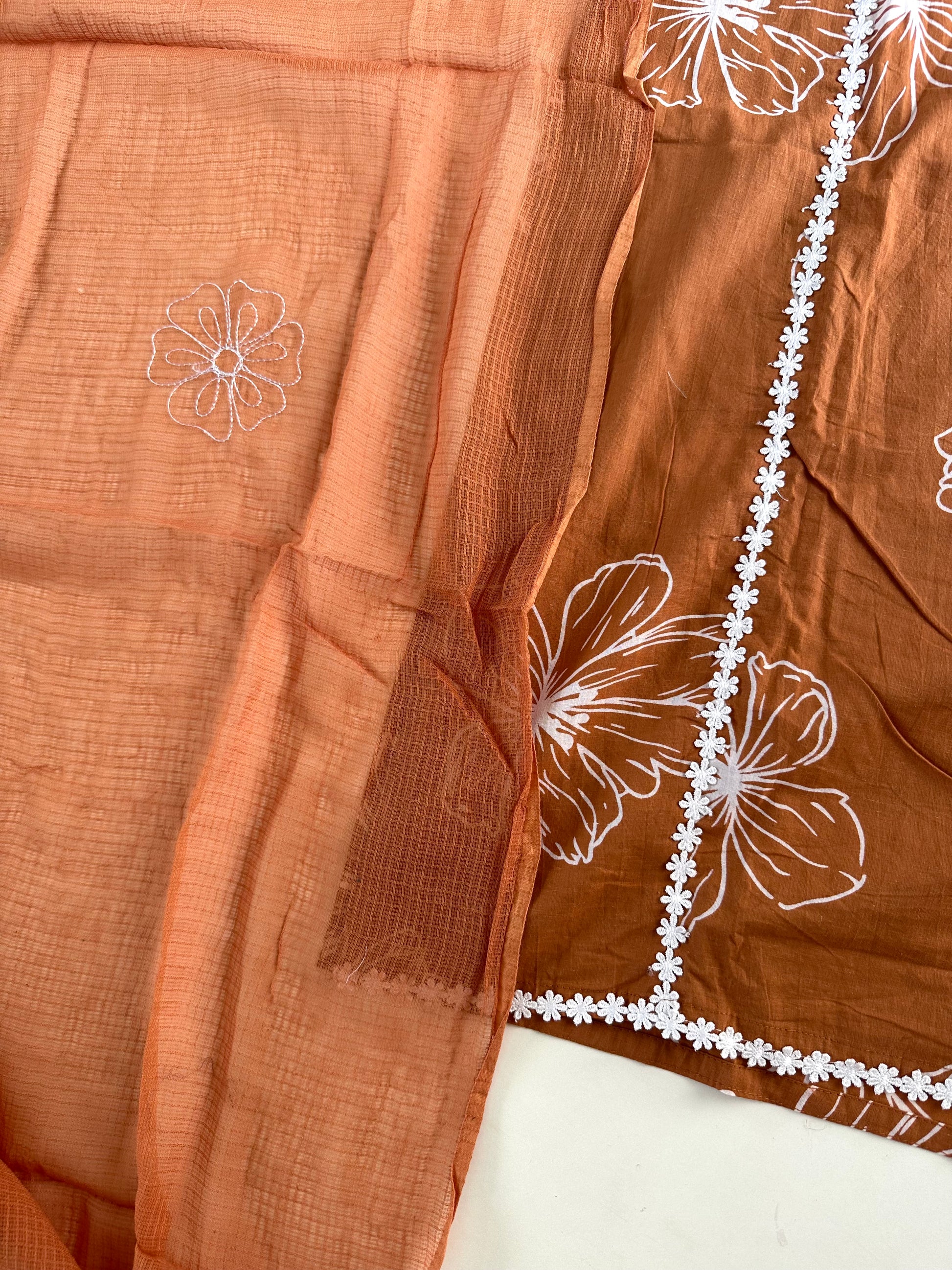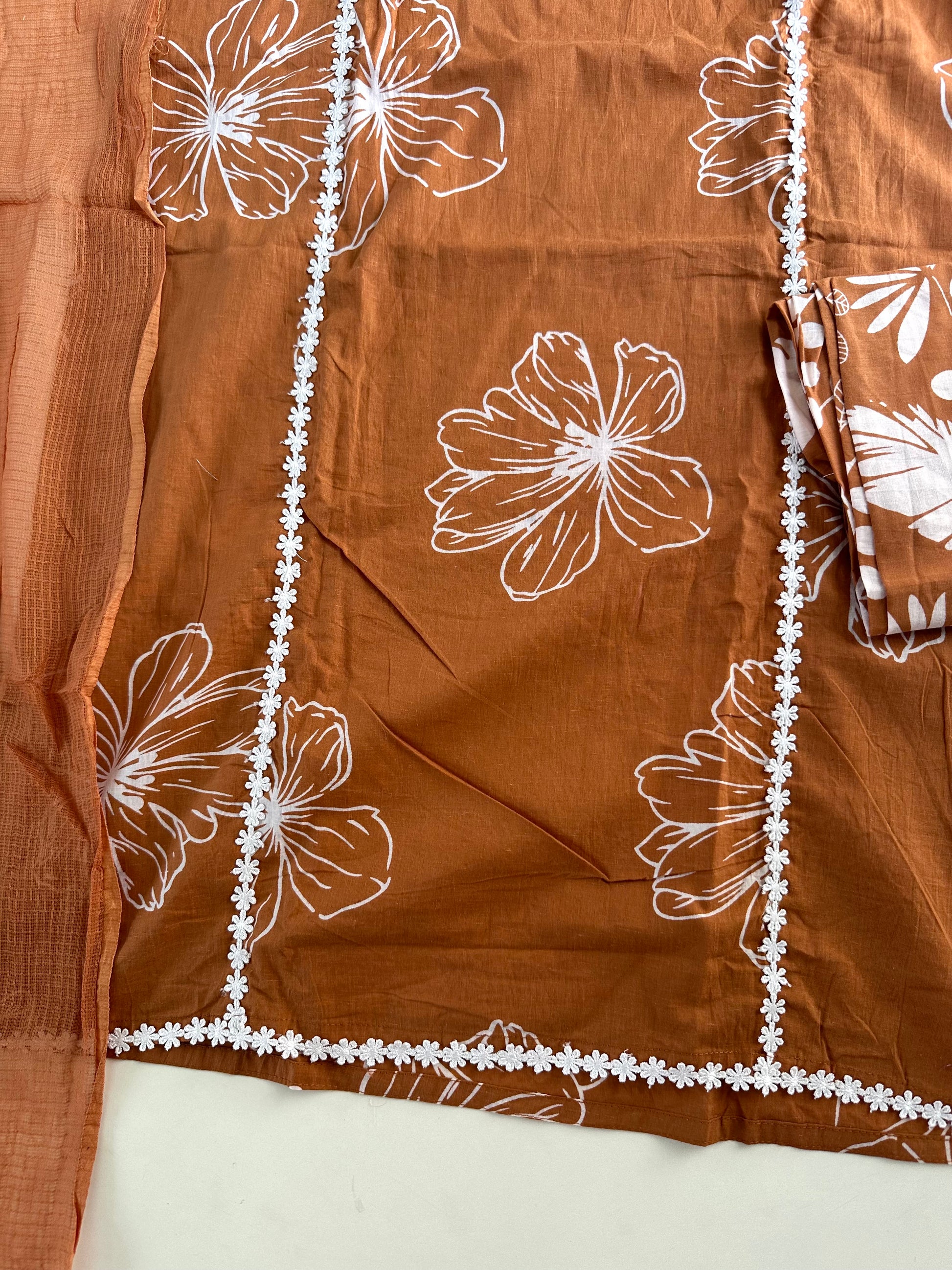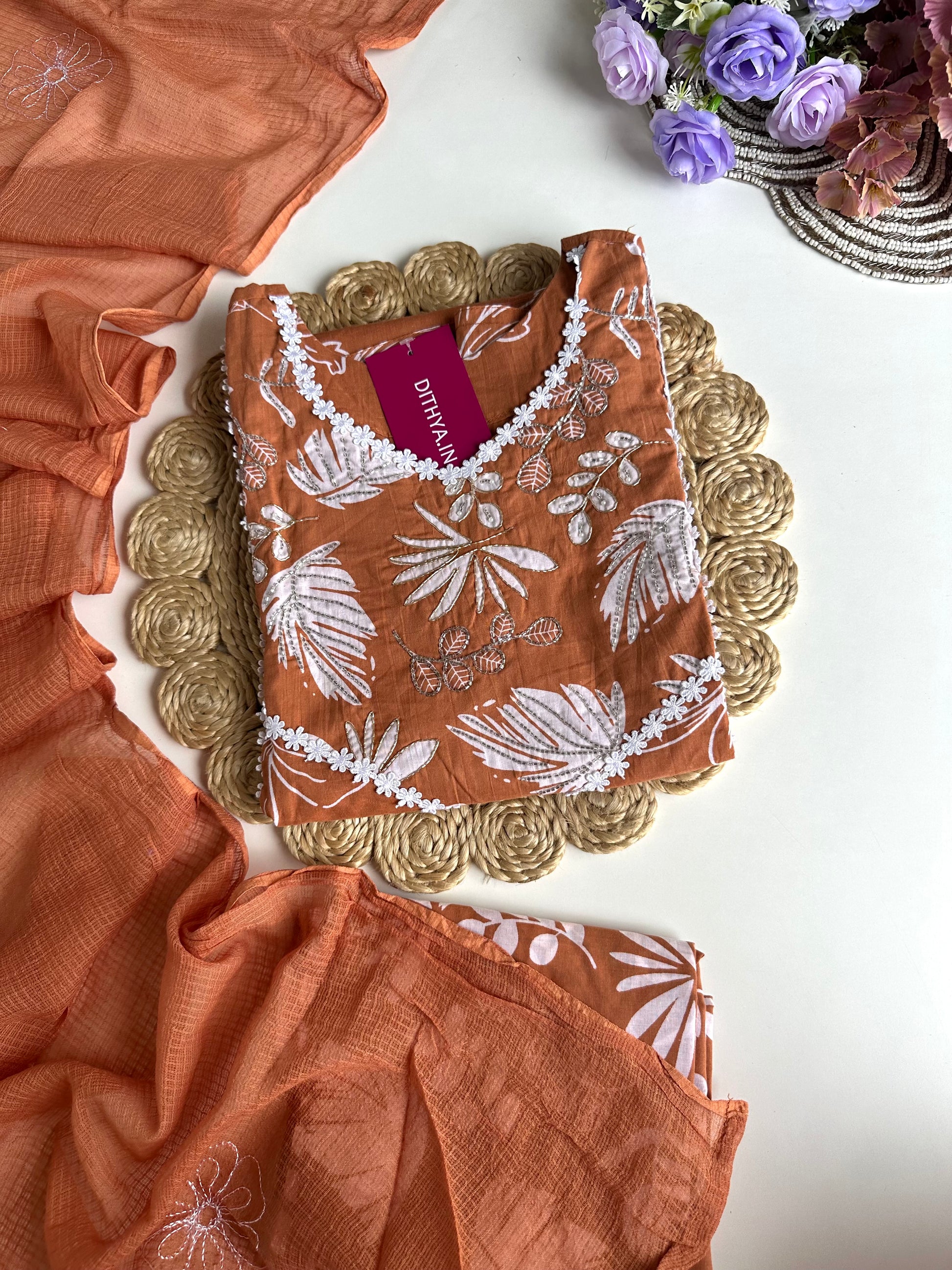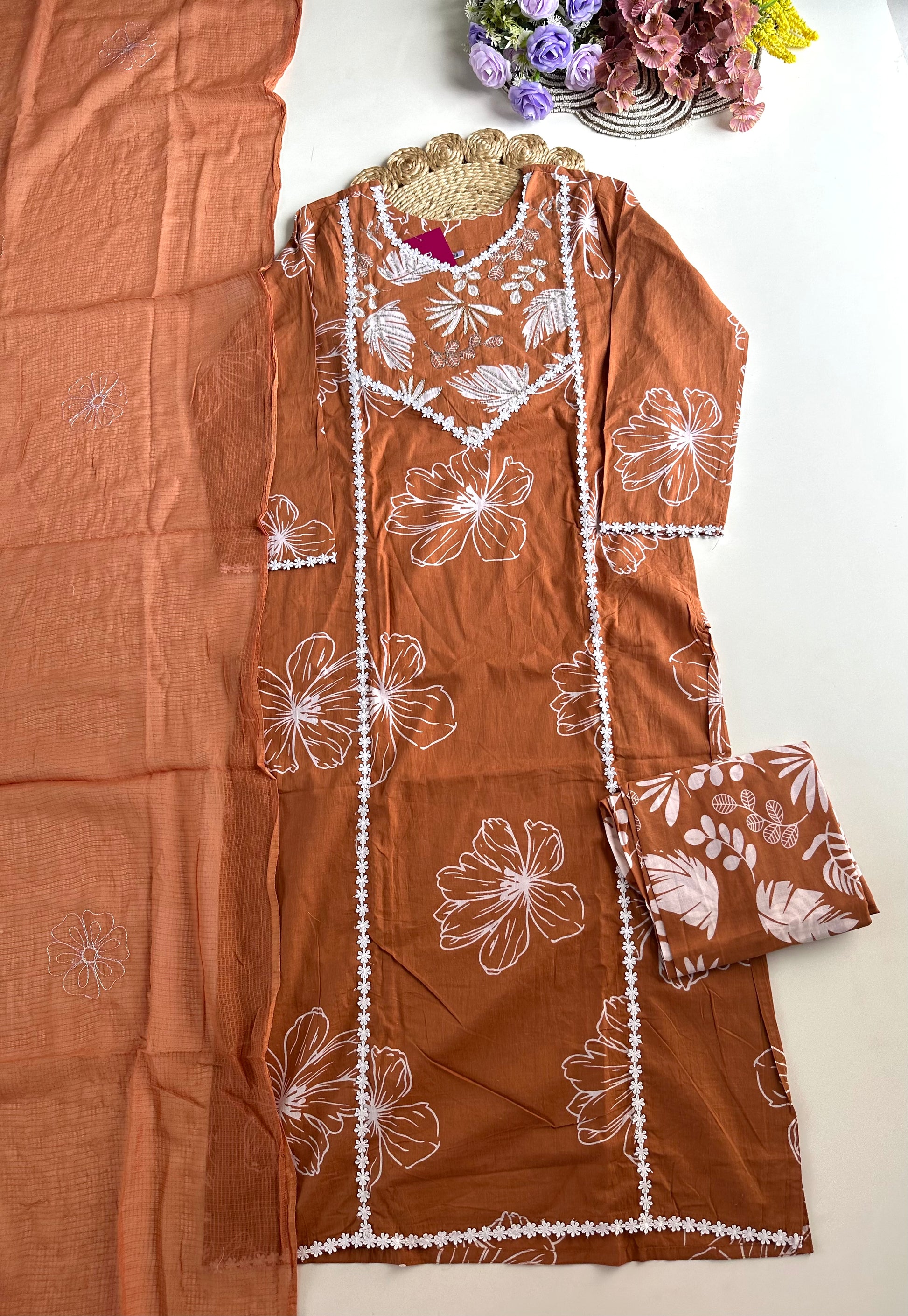K217 - Cotton floral straight kurti with pants and dupatta