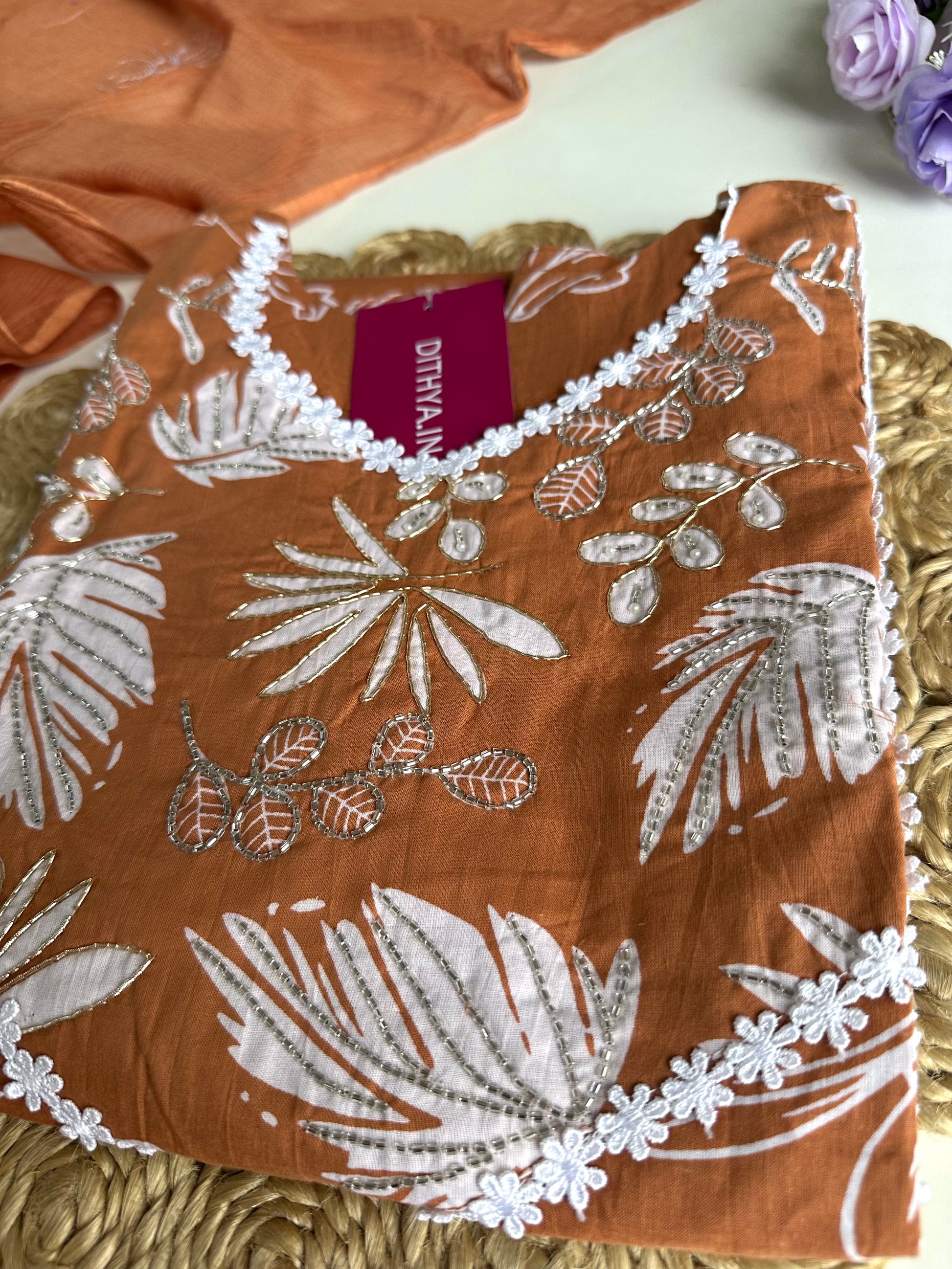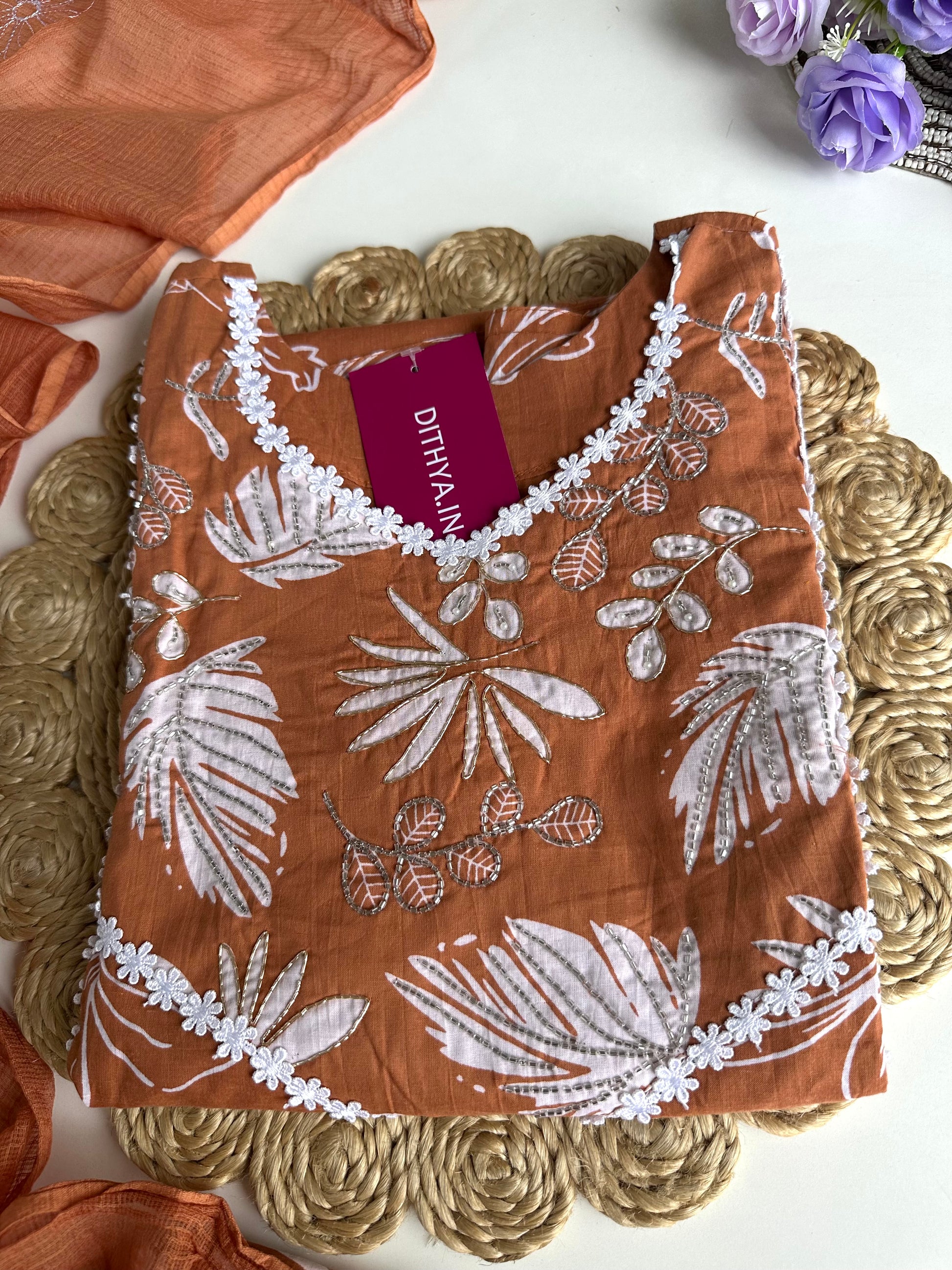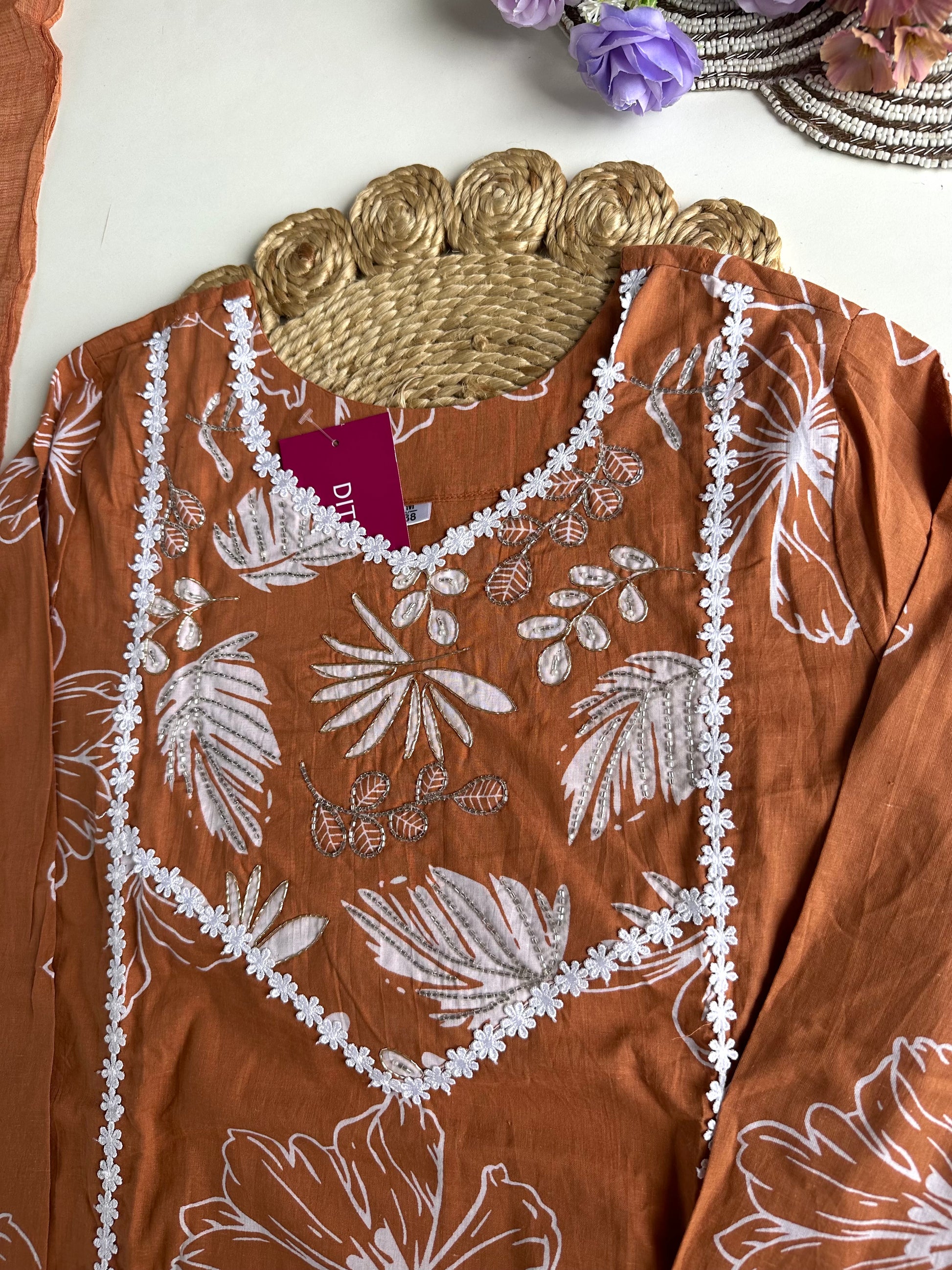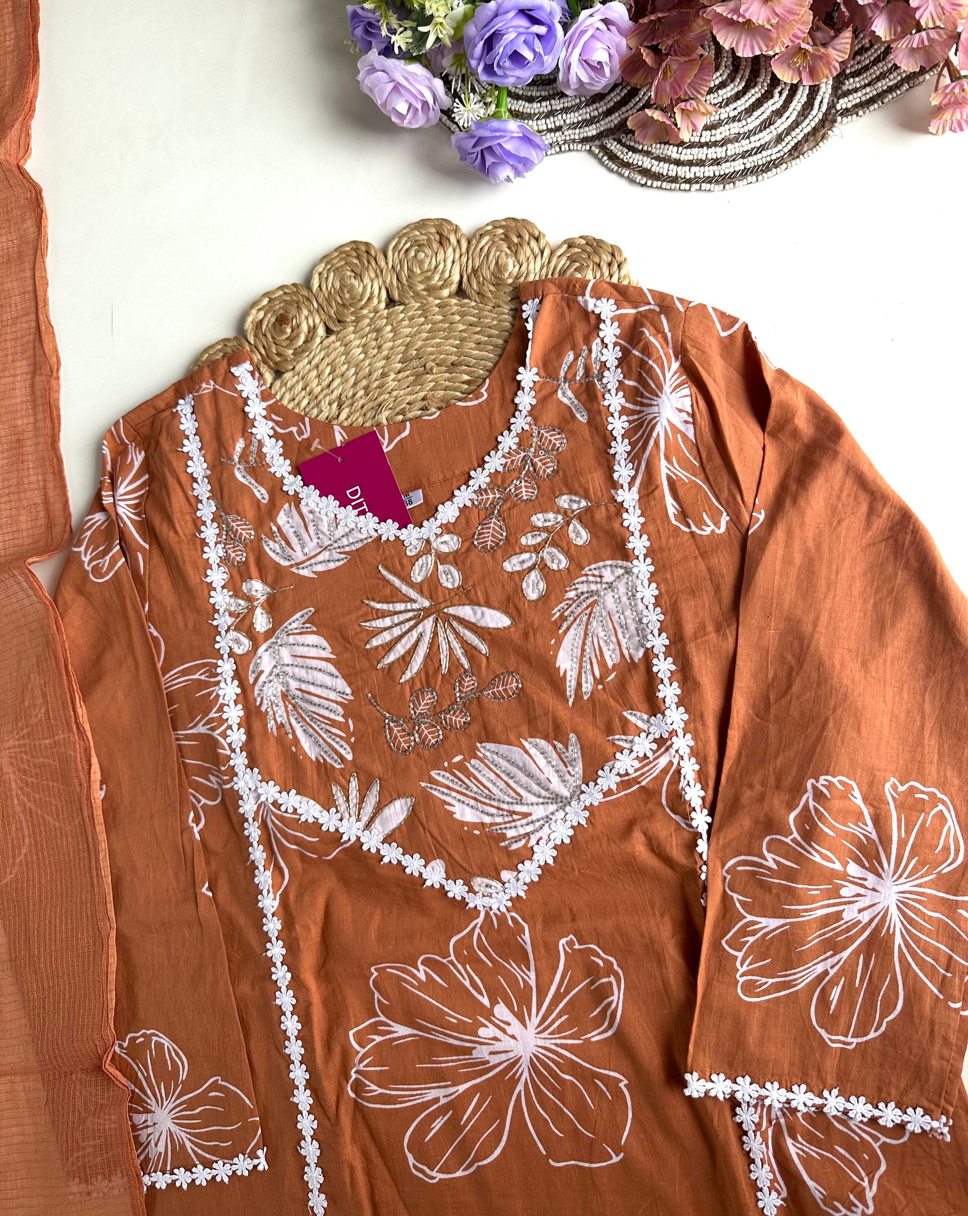 Expertly crafted from high-quality cotton material, this floral straight kurti comes with matching pants and a dupatta, offering a comfortable and stylish outfit option. The perfect blend of traditional and modern elements, this kurti is versatile and suitable for various occasions. Elevate your wardrobe with this must-have ensemble.