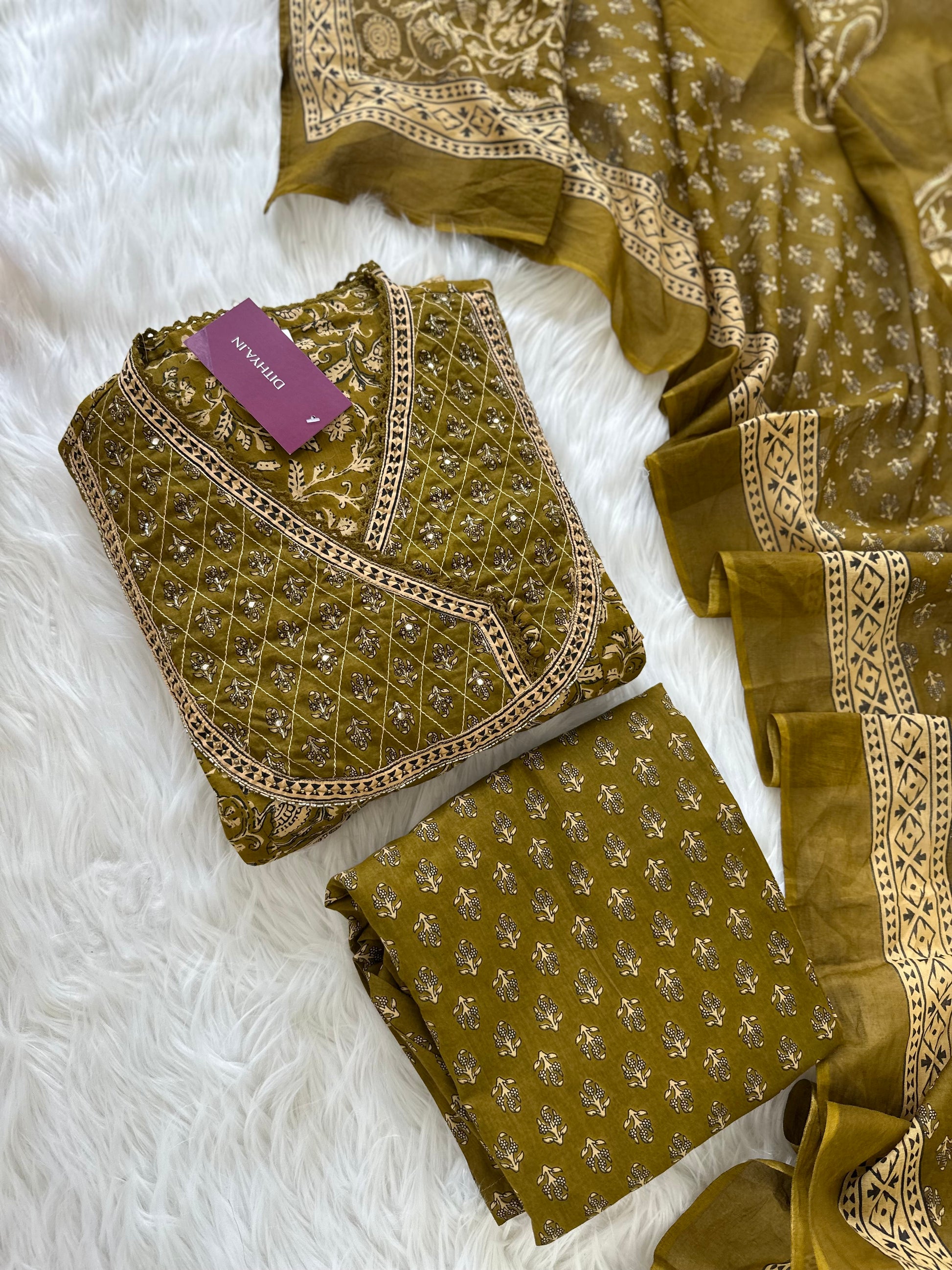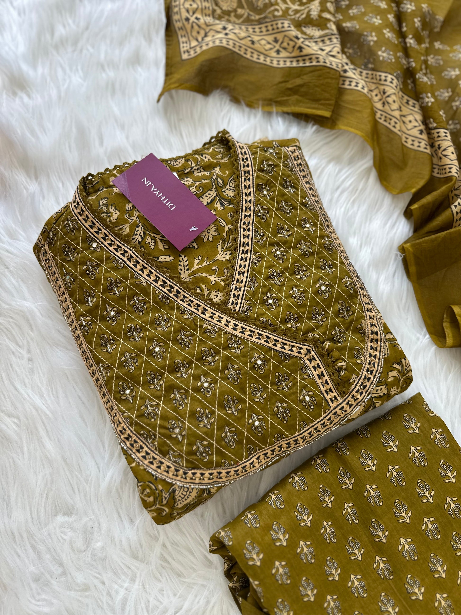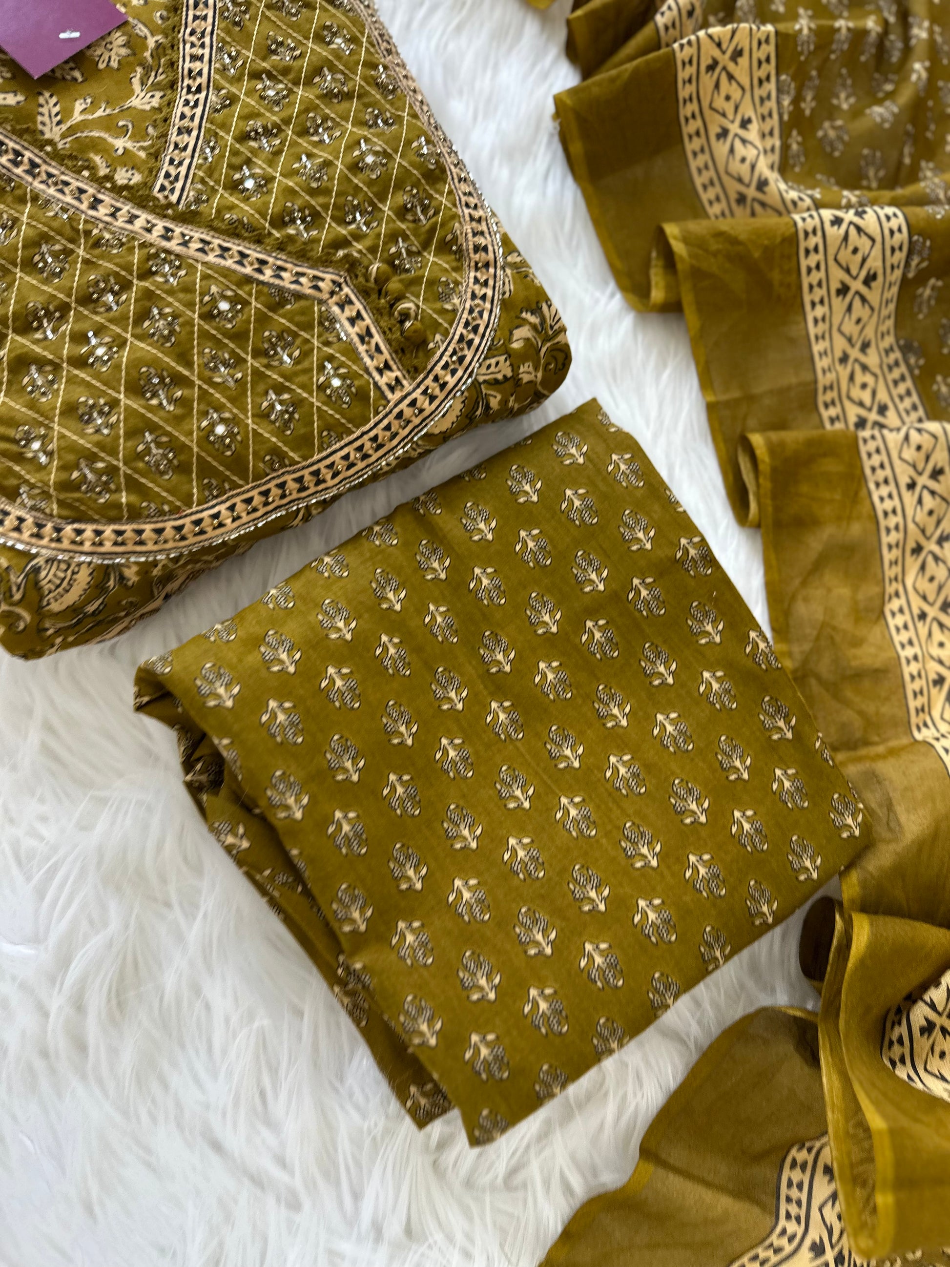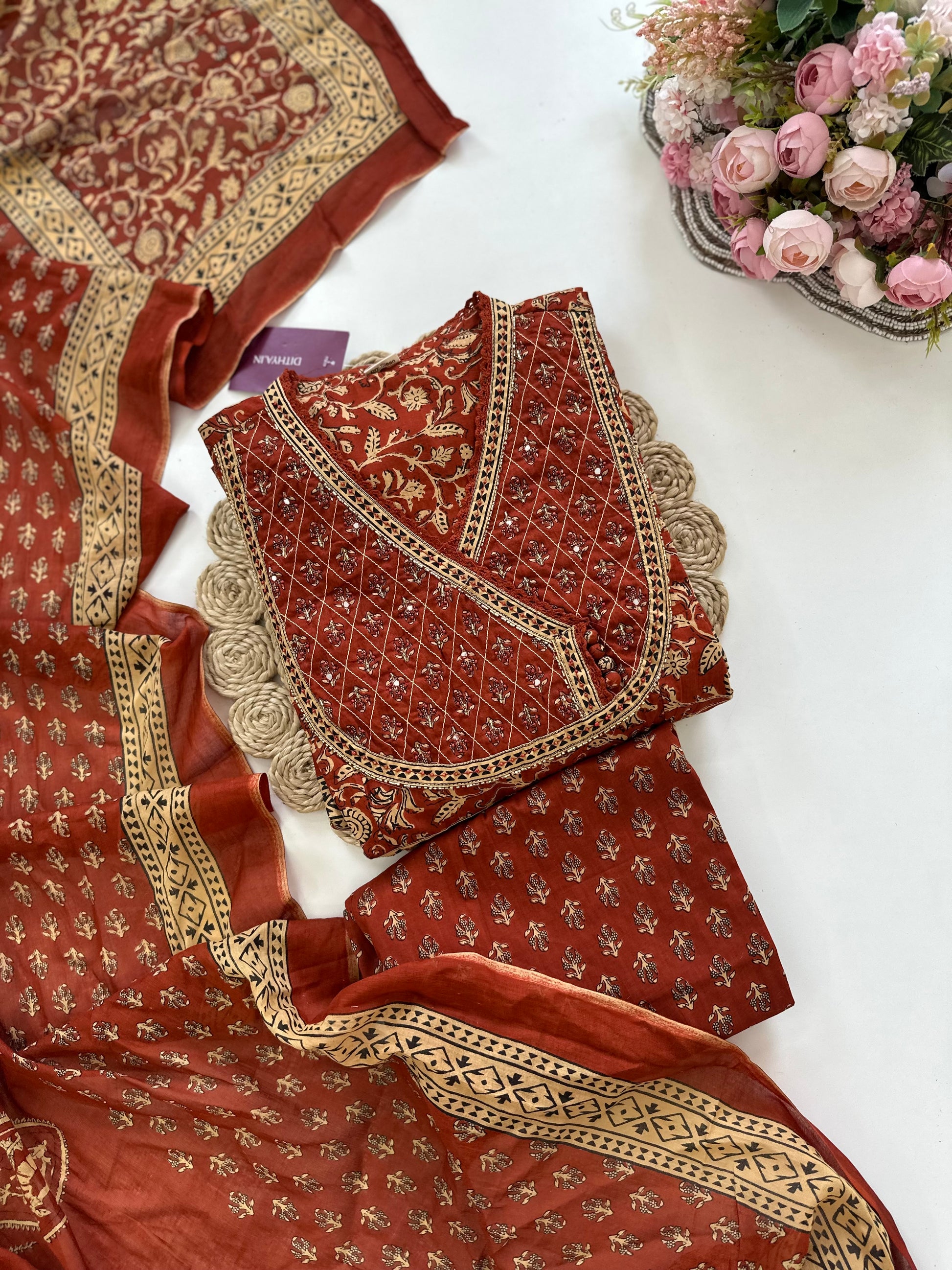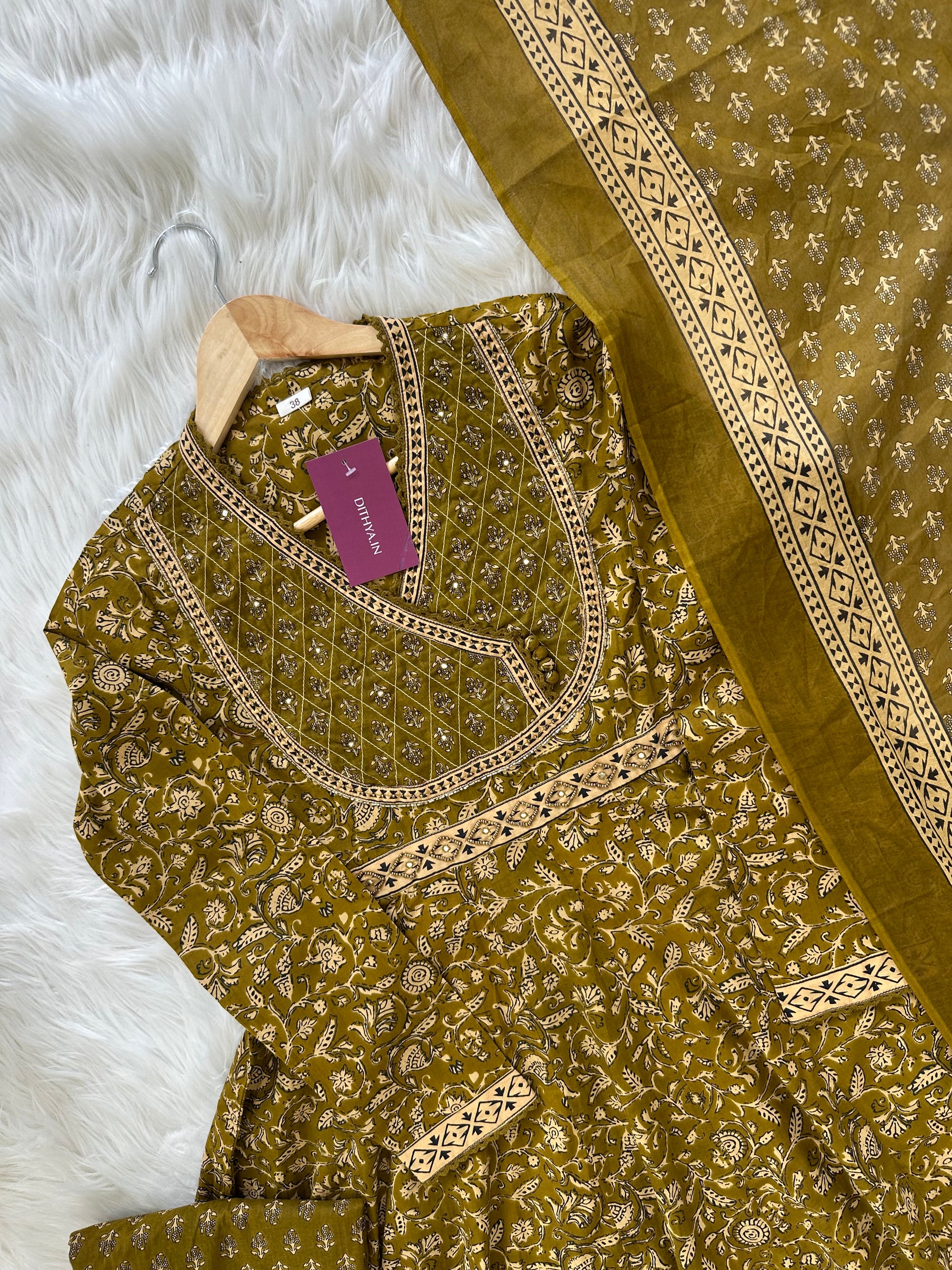 K055 - Cotton Handwork Anarkali with pants and dupatta in 2 colours