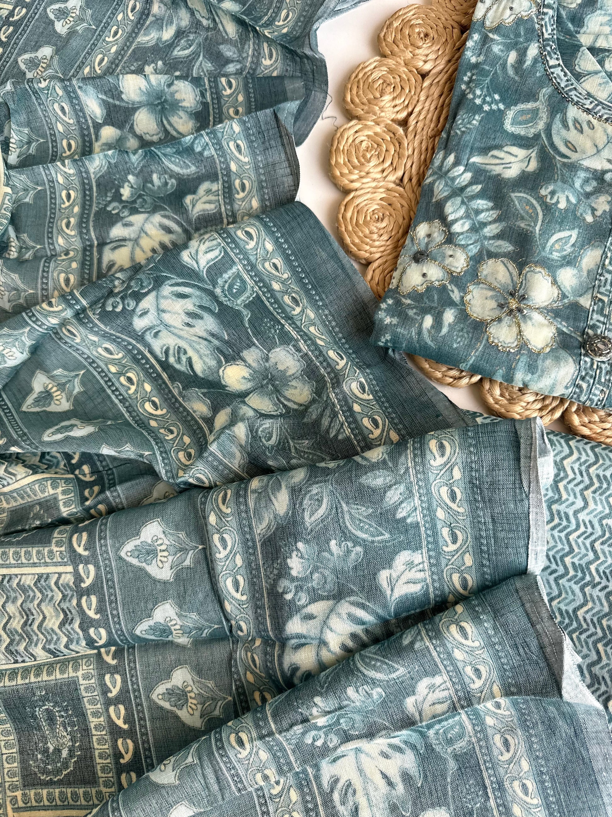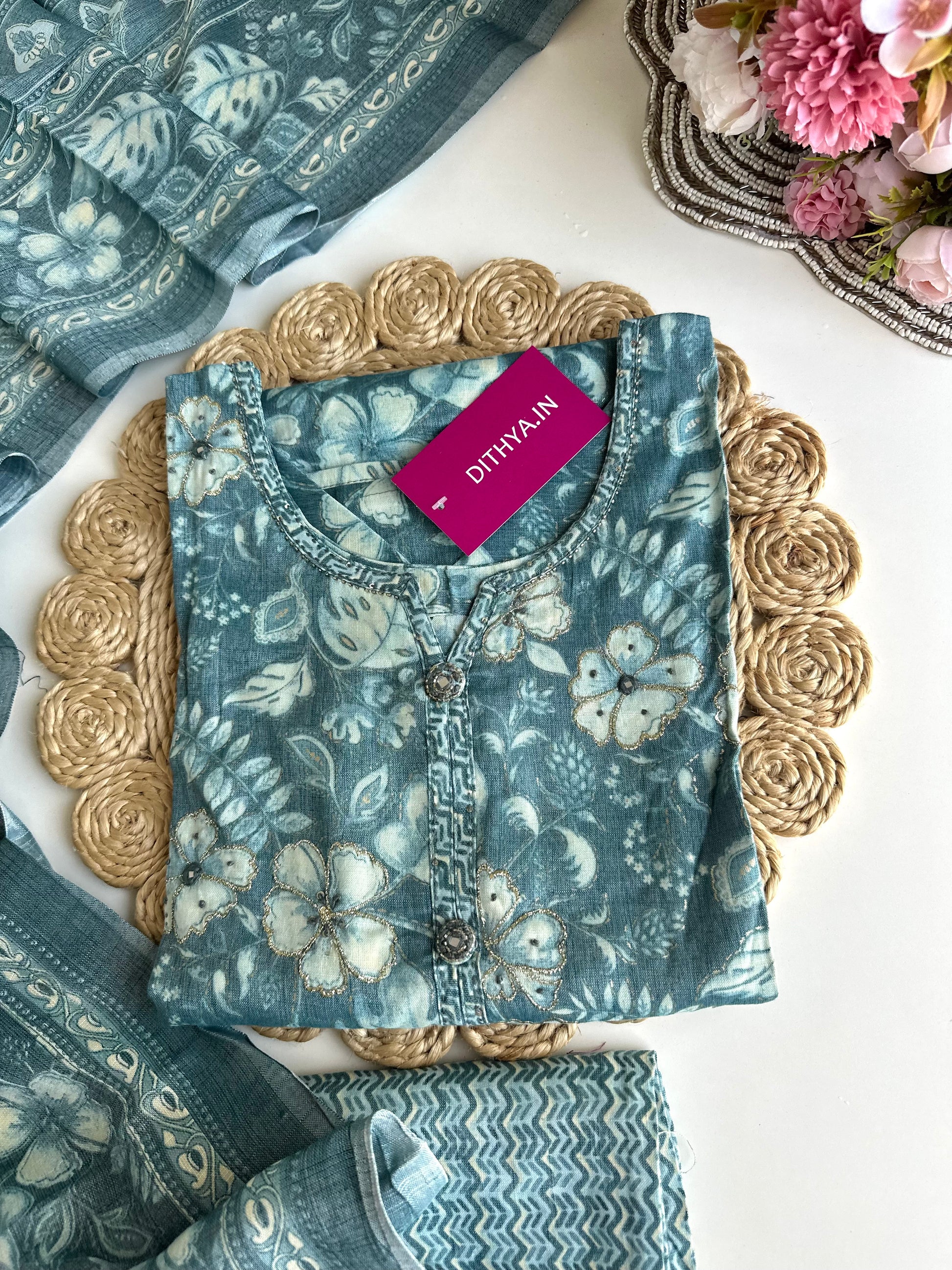 K054 - Cotton muslin floral straight Kurti with pants and dupatta