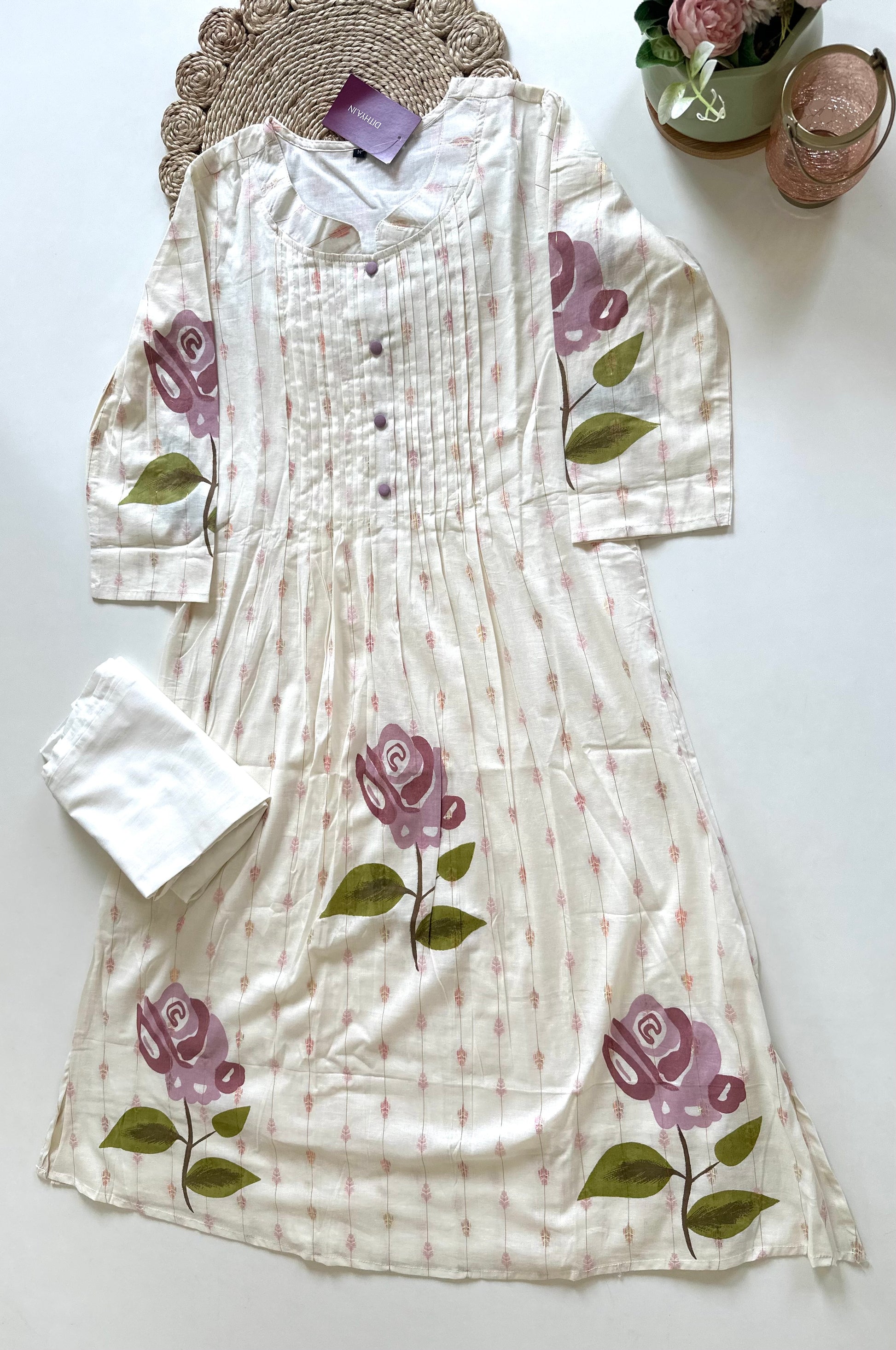 K312 - Cotton printed Aline Kurti with pants