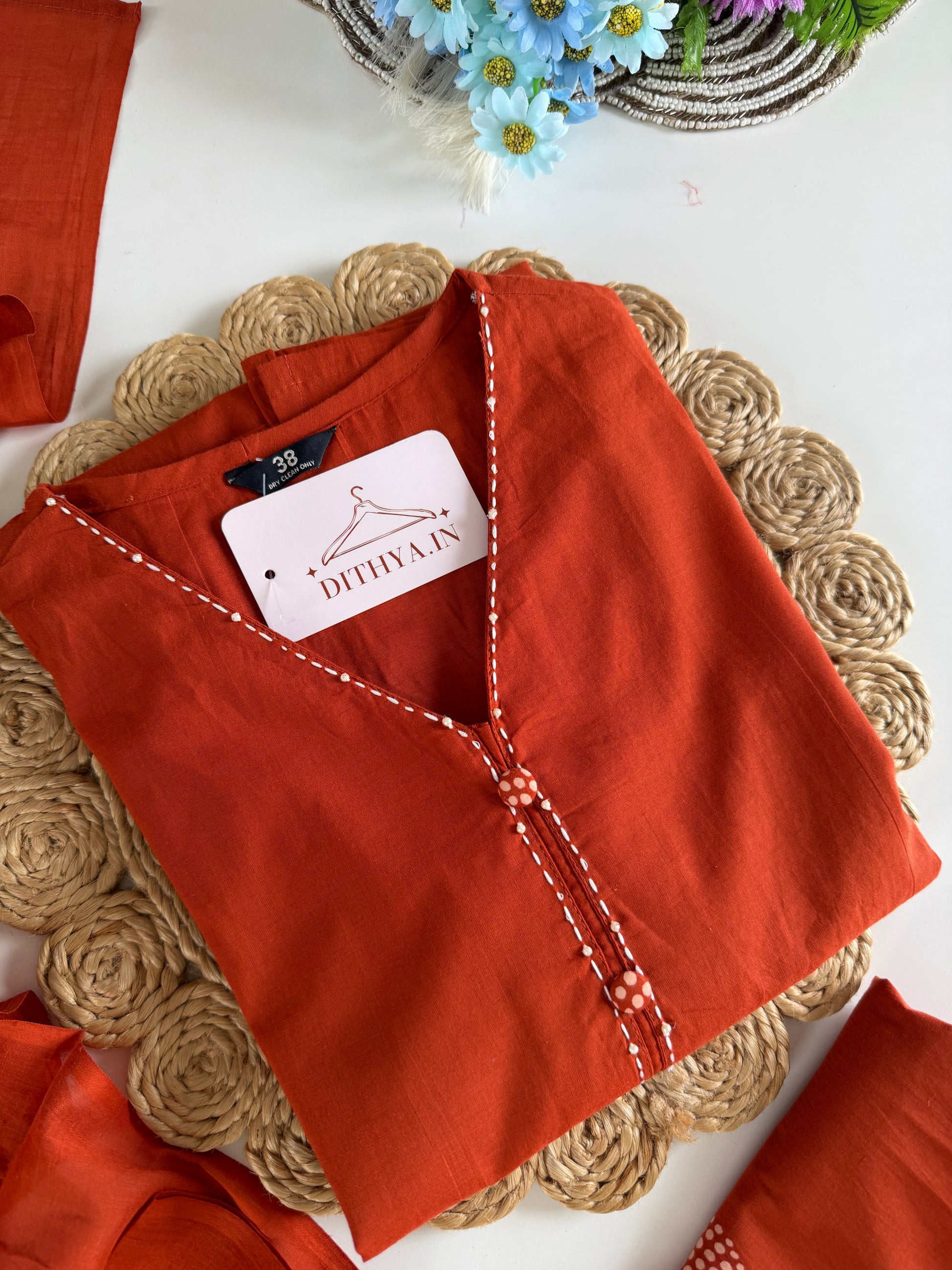 K594 - Cotton printed Aline Kurti with pants and dupatta