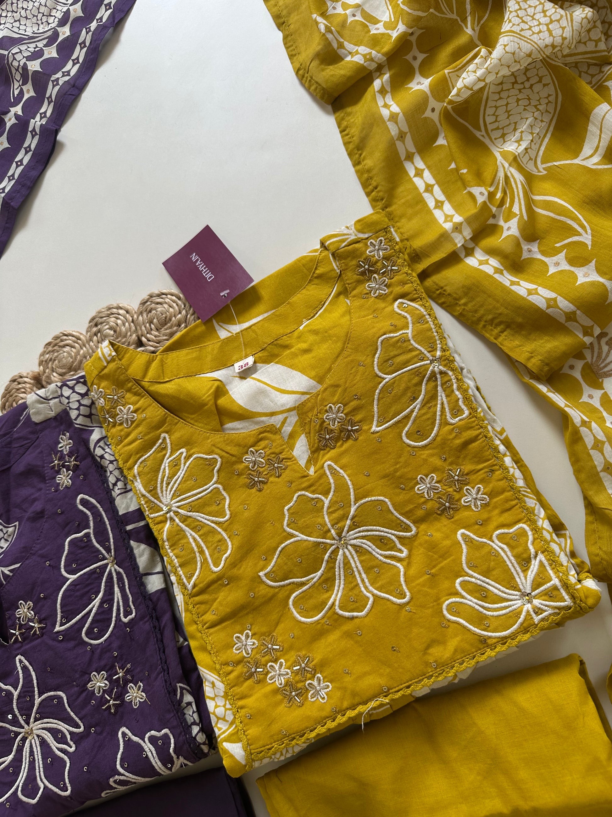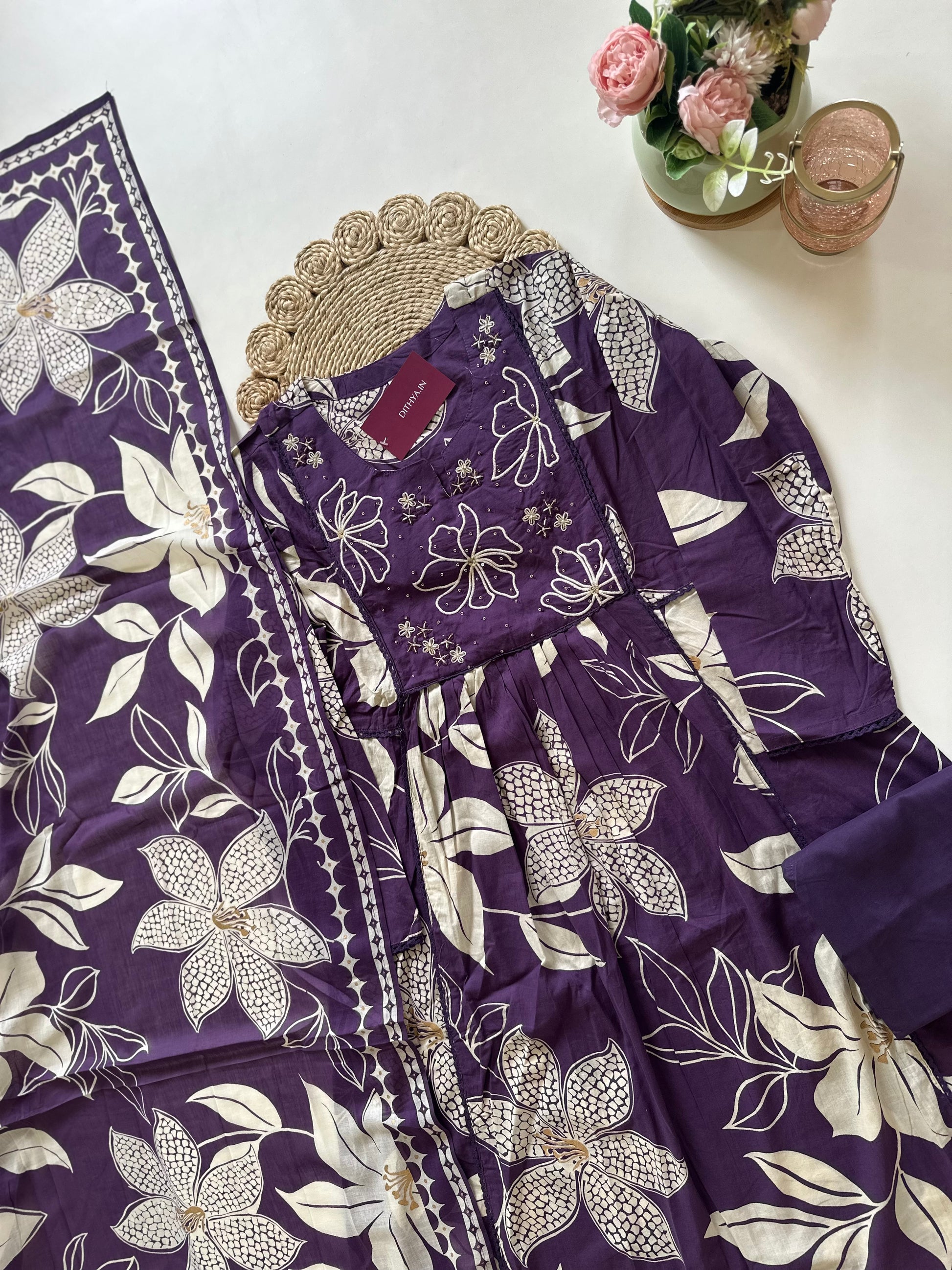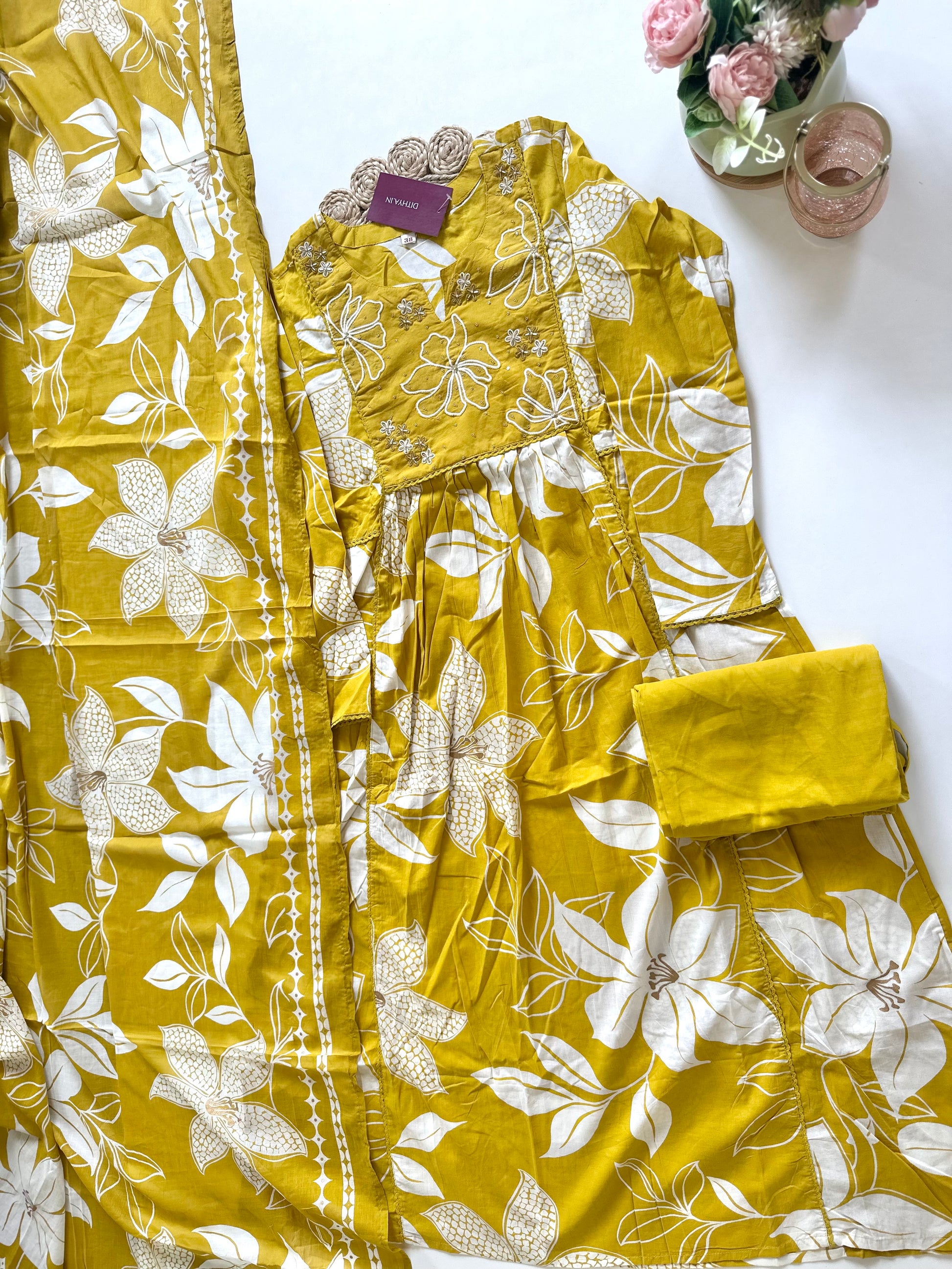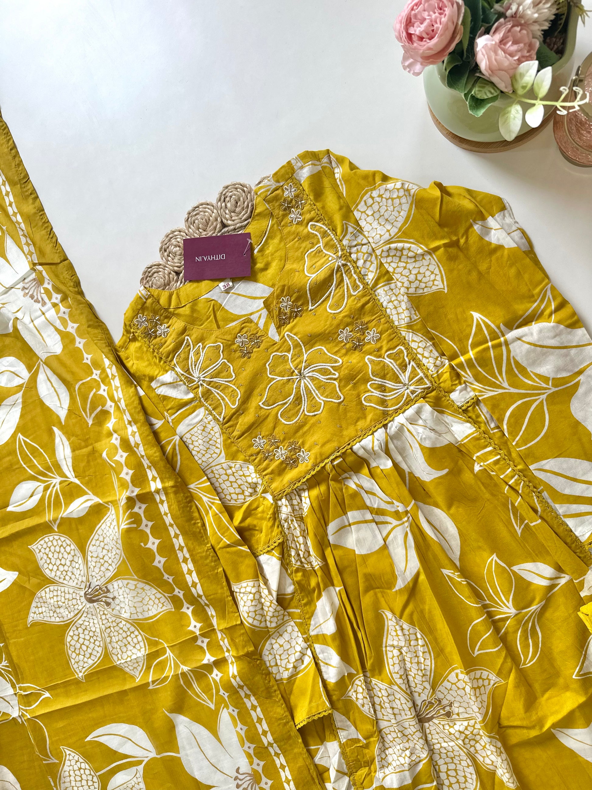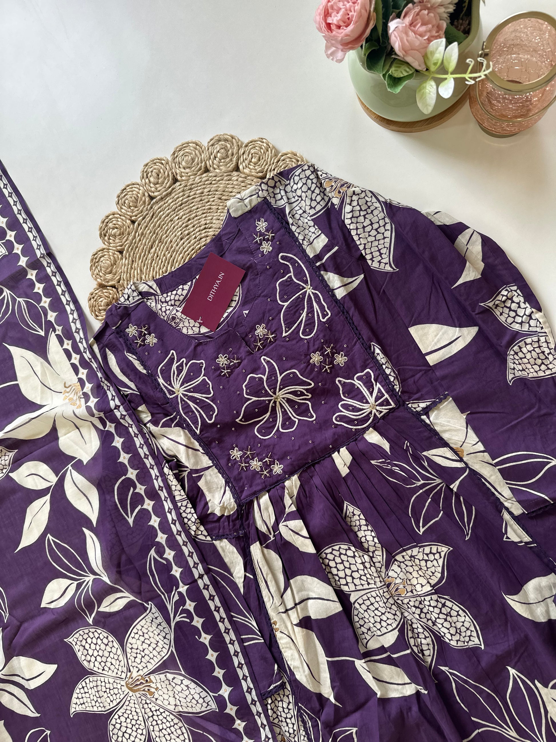 K303 - Cotton printed Anarkali with pants and dupatta in 2 colours .