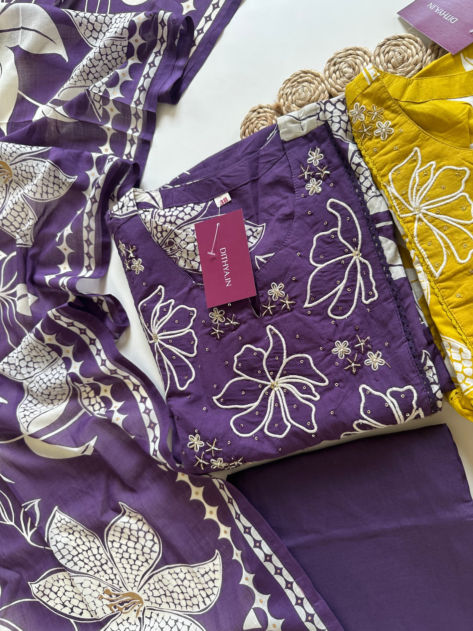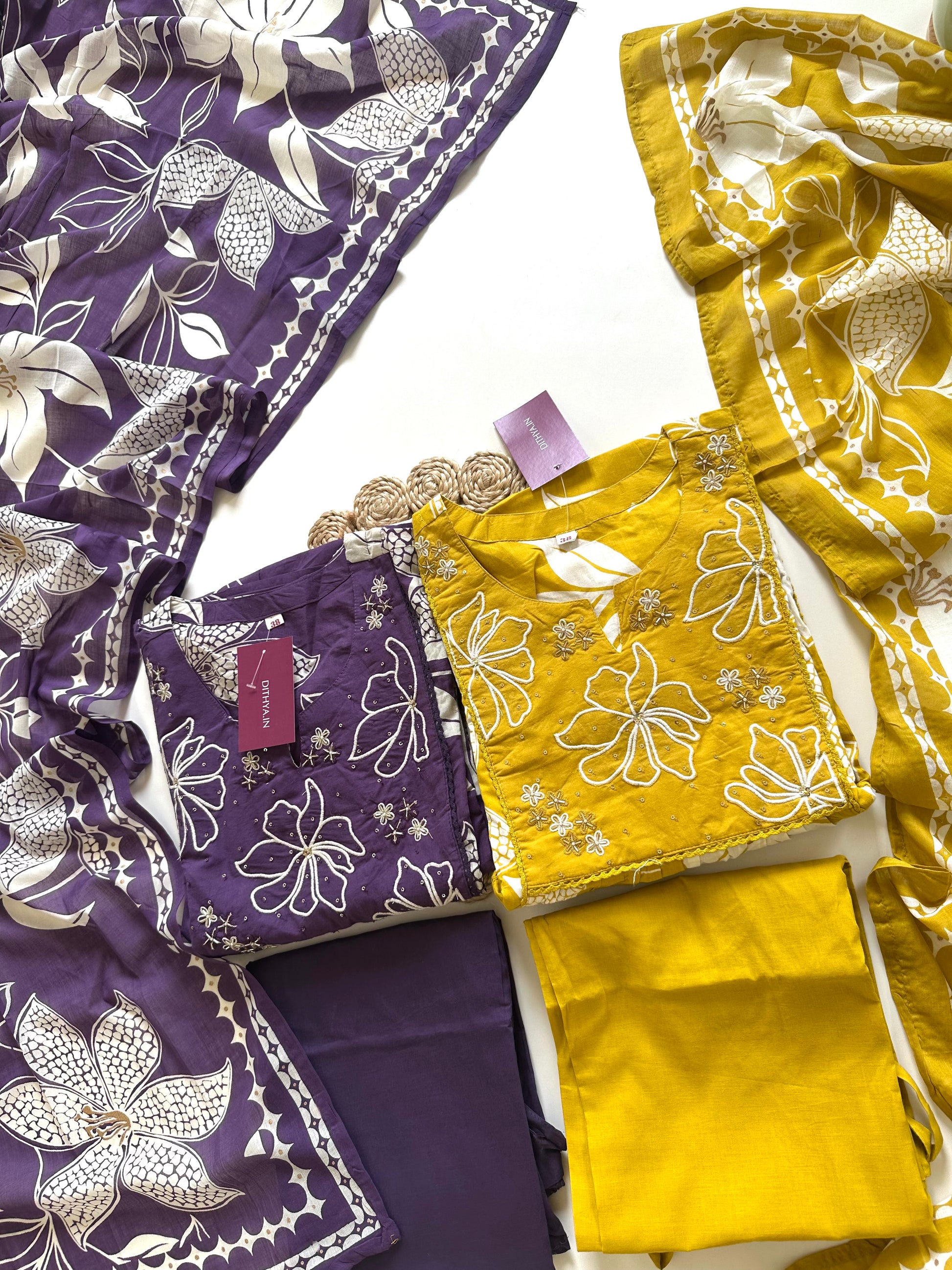 This Anarkali set includes a cotton printed Anarkali with matching pants and dupatta. With its vibrant colors and comfortable fabric, it offers both style and comfort. Available in 2 colors, it's a versatile addition to your wardrobe.